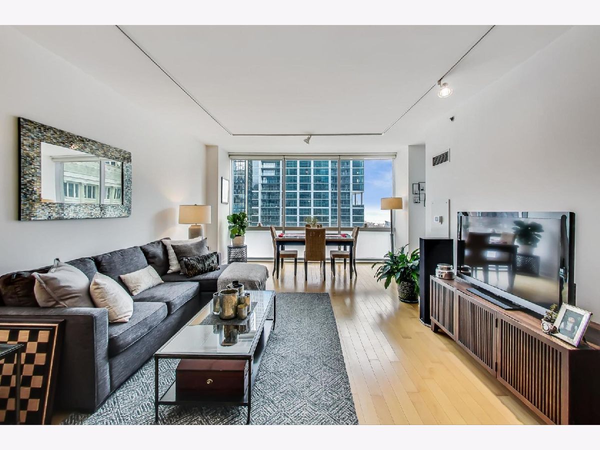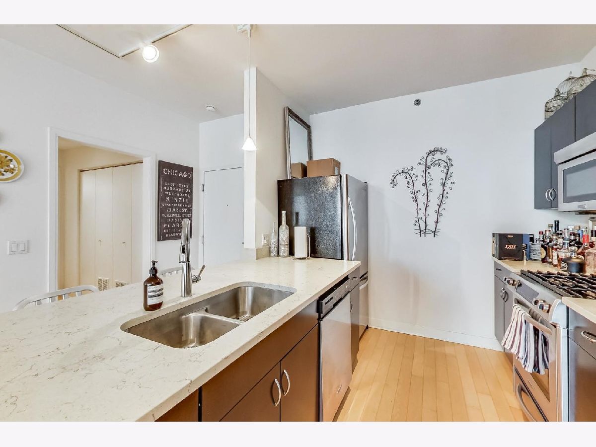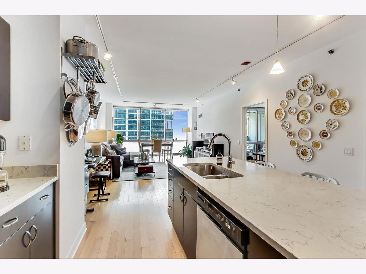 Welcome to your new home at The Joffrey! Largest One Bedroom floor plan in the building. Open layout, East facing, Floor to Ceiling Windows, this unit has it all! Kitchen features SS appliances, quartz counters, modern cabinetry. Hardwood floors in living areas, carpet in king-sized bedroom. Great closet space, in-unit W/D. Building has 24 Hour Doorman, On-site Property Manager, Storage, Gym, Bike Storage. Parking can be rented in the building, or next door in the parking garage.