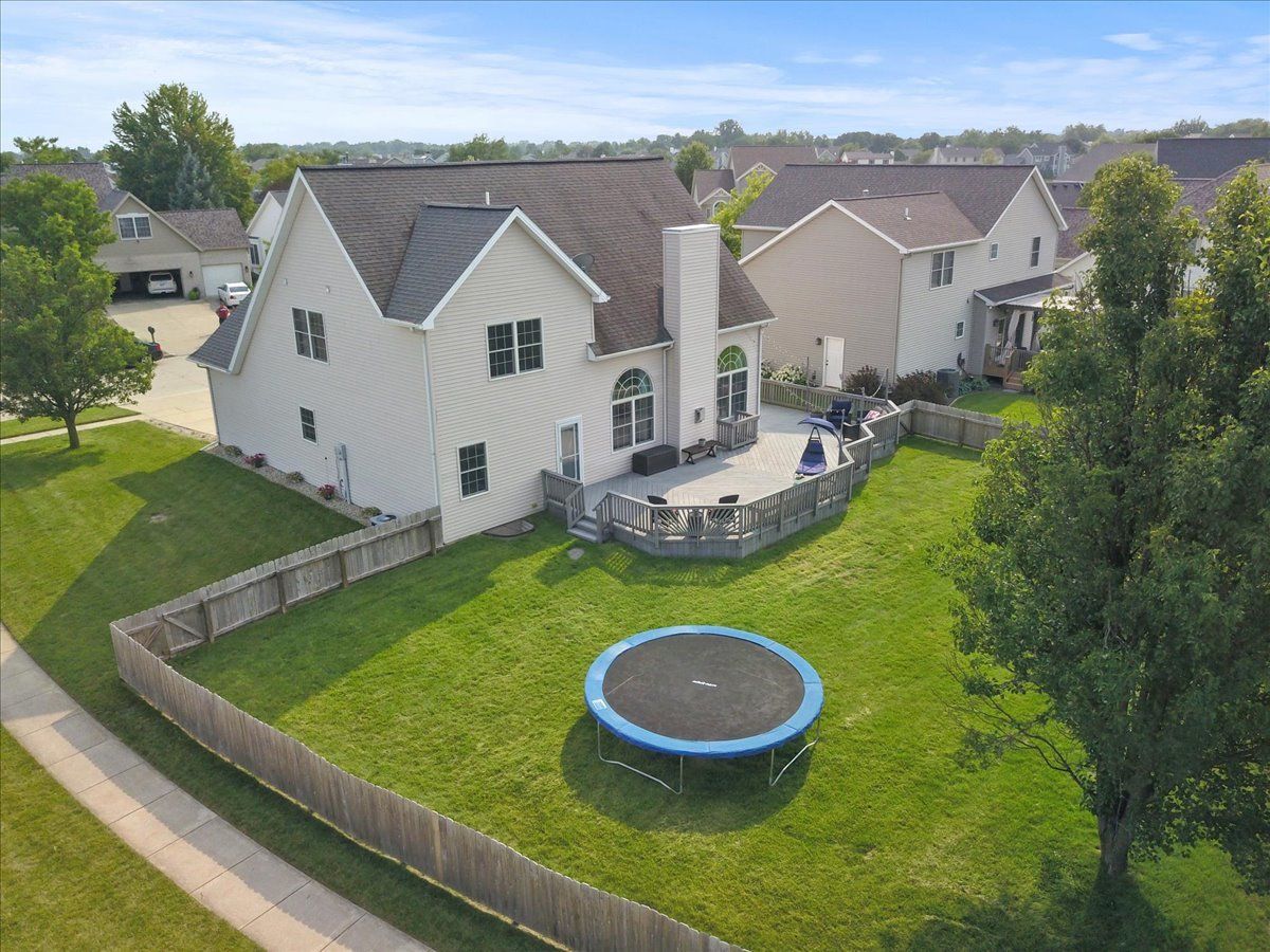 Updated 1.5 story home on a large corner lot with lake views! This beautiful 3 bedroom, 2.5 bathroom home features vaulted ceilings, plenty of natural light, gorgeous updates throughout and an amazing outdoor space with a fenced-in yard. Main floor master bedroom suite with jetted tub, walk-in shower, and a large walk-in closet. Kitchen has updated cabinets, solid surface counter tops, gorgeous tiled backsplash, stainless steel industrial farm sink, stainless steel appliances and commercial faucet. The family room has vaulted ceilings and a gas fireplace with large windows on either side that looks out to the large fenced-in yard. The second floor has the other 2 bedrooms and a loft area that creates space for either a home office, a reading nook or toy room. Gorgeous newer wood laminate flooring throughout. The outdoor space offers a wraparound maintenance-free deck with built-in bench seating. Basement has a rough-in for a future bathroom. You do not want to miss out on this stunning property!