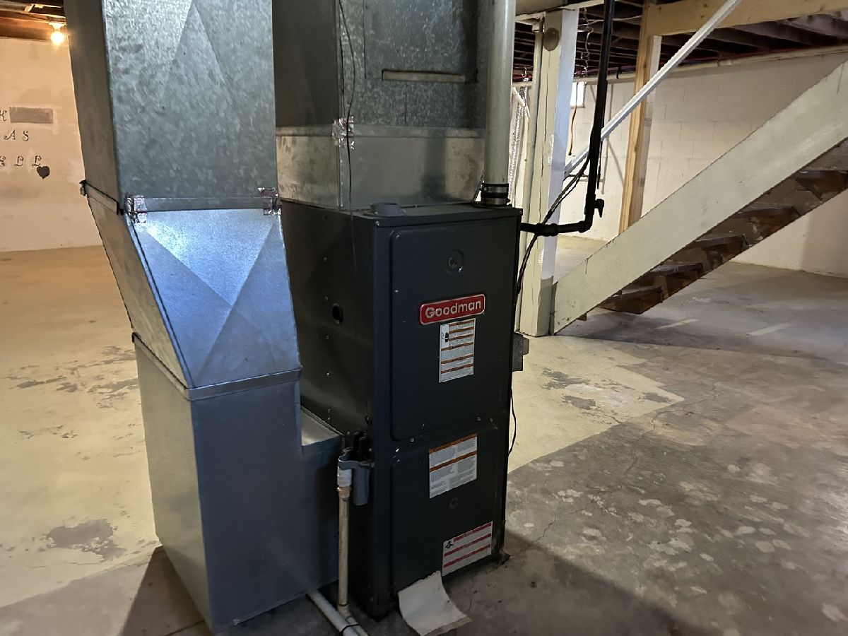 Corner lot. New sidewalk, curb, streets, and driveway approach. GFA/CA, roof, exterior doors, vinyl widows, gutters 5 years. Toilet, Pex lines, electric and gas hookup for dryer in basement. Insulated garage with gas line available to heat. Stove, microwave and refrigerator are not warranted. Front porch and side deck.