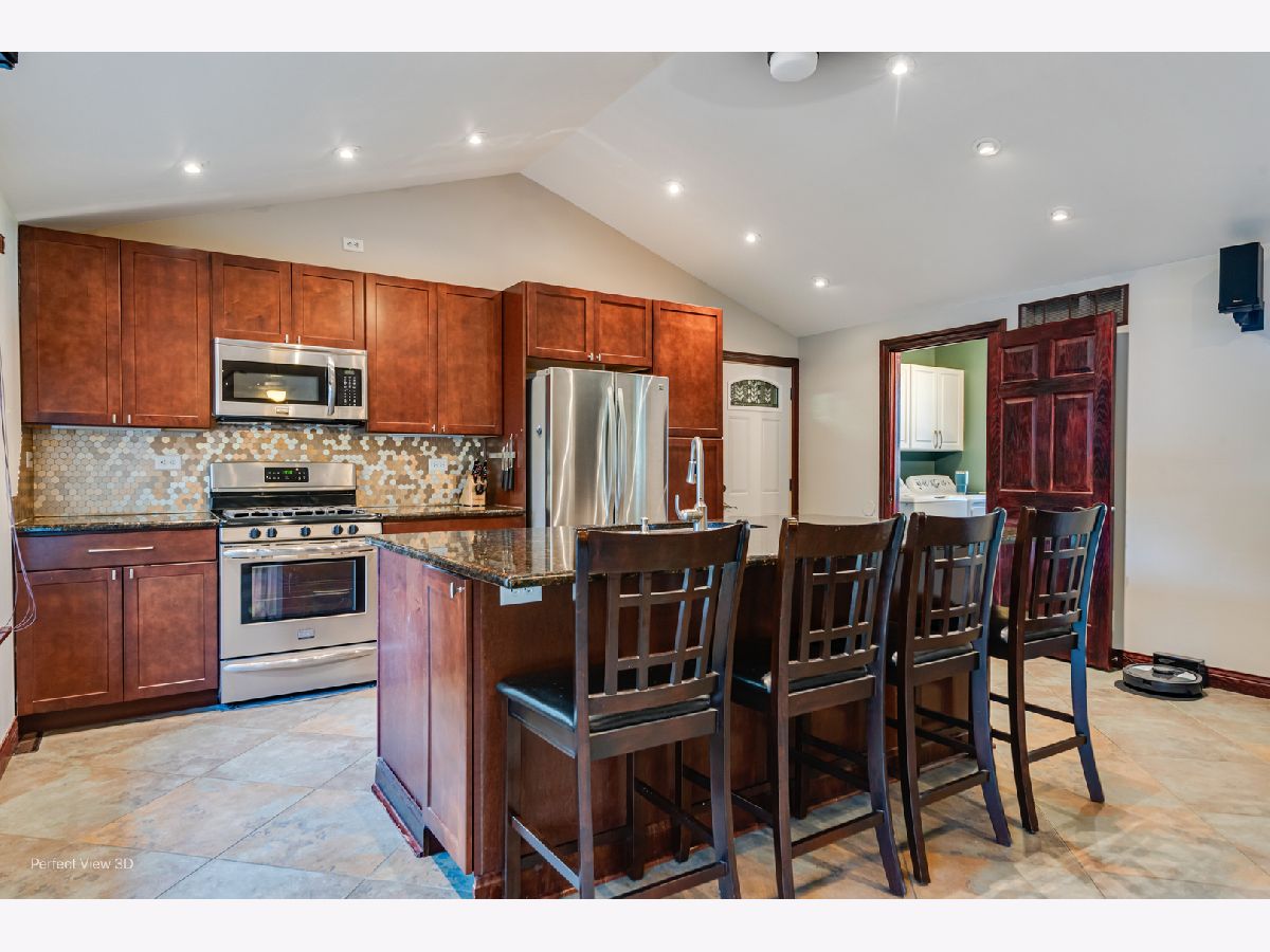 Don't miss this opportunity to own this spacious 3 bedroom, 2 1/2 bath ranch on a corner lot. This home has had extensive rehab within the last 5 years and you are sure to be impressed. Upon entering the foyer to the right is the kitchen, dining and living rooms. All with vaulted ceilings and can lighting. The newer cherry kitchen has a center island and seating featuring granite countertops and all stainless steel appliances. Adding convenience is a laundry/half bath adjacent. The dining/breakfast area has a sliding door opening to the fenced back yard and paver patio. What a great spot for entertaining! The living room has hardwood floors and floor to ceiling stone fireplace with a unique decorators touch of a tree adding visual interest. The primary bedroom again features hardwood flooring and a fantastically updated bath with walk-in tile shower, double bowl granite sink and large walk-in closet. The two adjacent bedrooms have ample closet space and are serviced by a hall bath with tiled tub/shower and granite top vanity. Needing more space? A full basement is just waiting for your design expertise. There is presently a workshop area. Completing the home is a two car attached heated garage with ample cabinetry for your storage needs. Don't delay in setting your appointment to see this exceptional offering at a fantastic price.