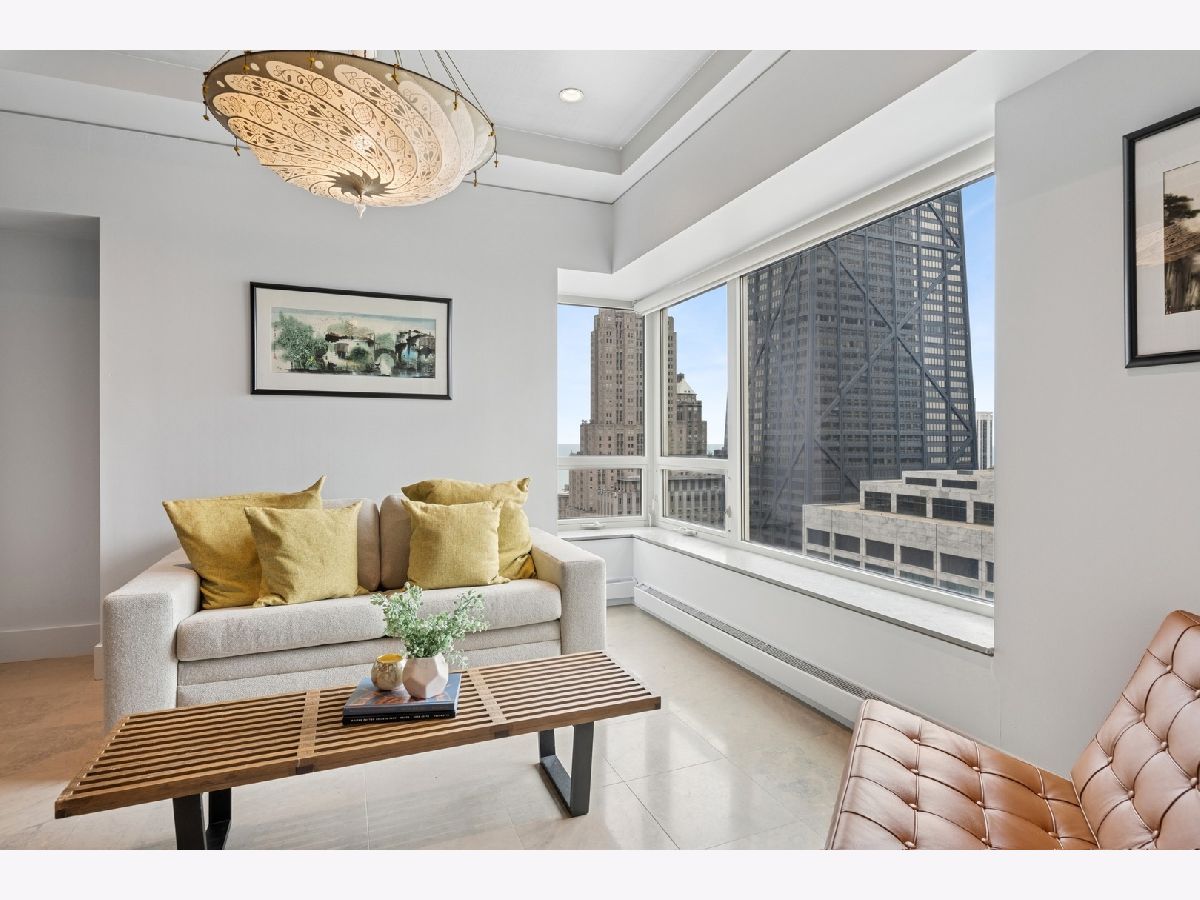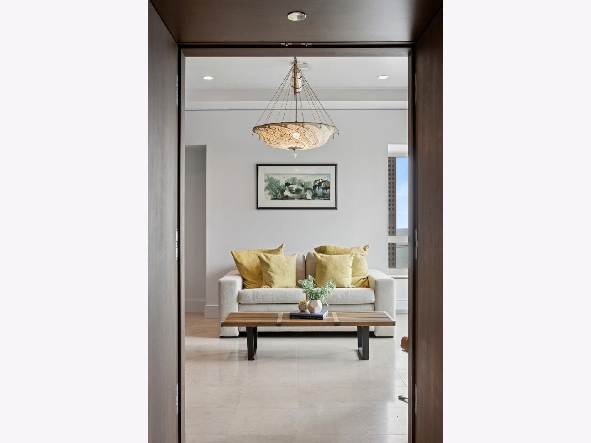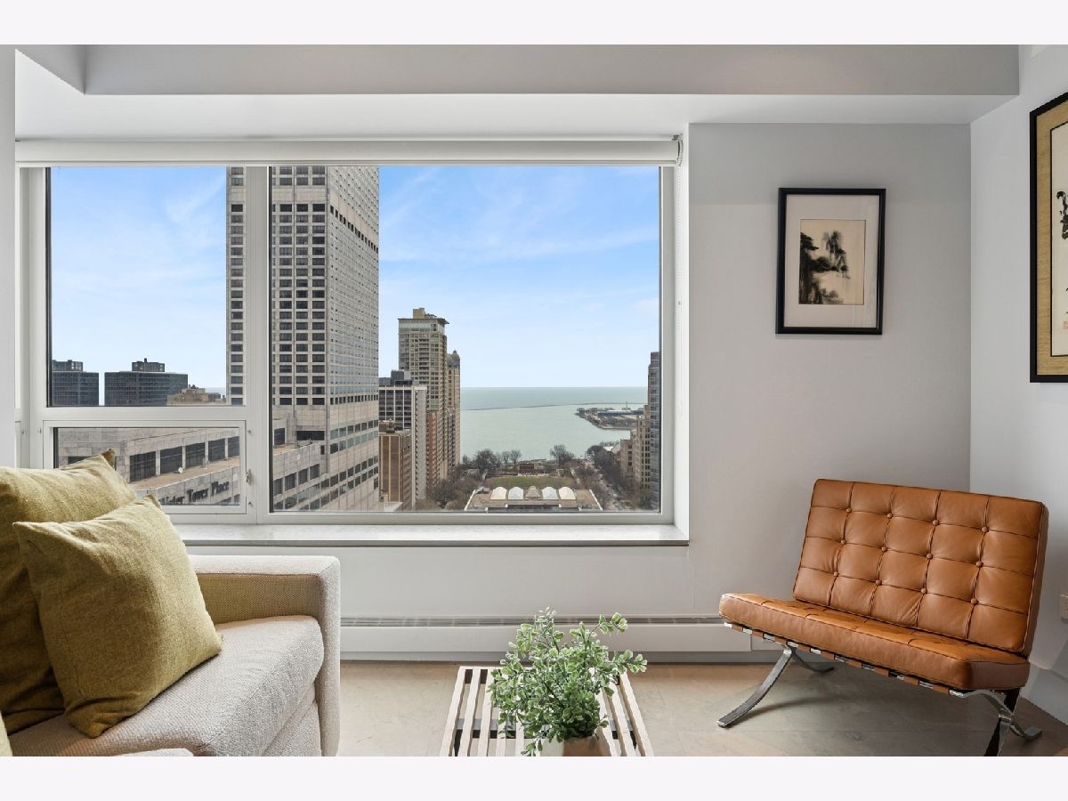 Step into extraordinary luxury with this beautifully updated, east-facing residence, located within the renowned Park Hyatt Hotel and Spa. Offering breathtaking views of Lake Michigan and downtown Chicago, this sophisticated 2-bedroom, 2.5-bath condo spans 2,030 sq. ft. and features a flexible bedroom or family room space. Tailored for those who appreciate elegance, privacy, and unparalleled amenities, this home offers the perfect blend of comfort and style. As you enter, you are greeted by an elegant foyer featuring mahogany-paneled walls. The expansive living room boasts a limestone fireplace and offers spectacular, views of the lake and city-an ideal space for entertaining or relaxing. The kitchen, fully renovated in 2024, boasts a large center island, state-of-the-art Gaggenau stainless steel appliances, and custom Leicht cabinetry, creating a sleek and functional culinary space. The primary suite is a true sanctuary, with a spacious layout, ample closet space, and an en-suite bathroom. The second bedroom also provides a comfortable retreat perfect for family or guests. Three incredible east-facing terraces allow you to enjoy the beauty of the lake and cityscape. Included in the price is one assigned garage parking space in the attached private garage, ensuring convenience and security. As a resident, you'll have the option to access the Park Hyatt's unparalleled 5-star amenities, including room service, a heated swimming pool, a state-of-the-art health club, and the renowned Nomi restaurant. Located within walking distance of premier shopping, dining, and cultural venues, this is truly the ultimate in luxury condo living.