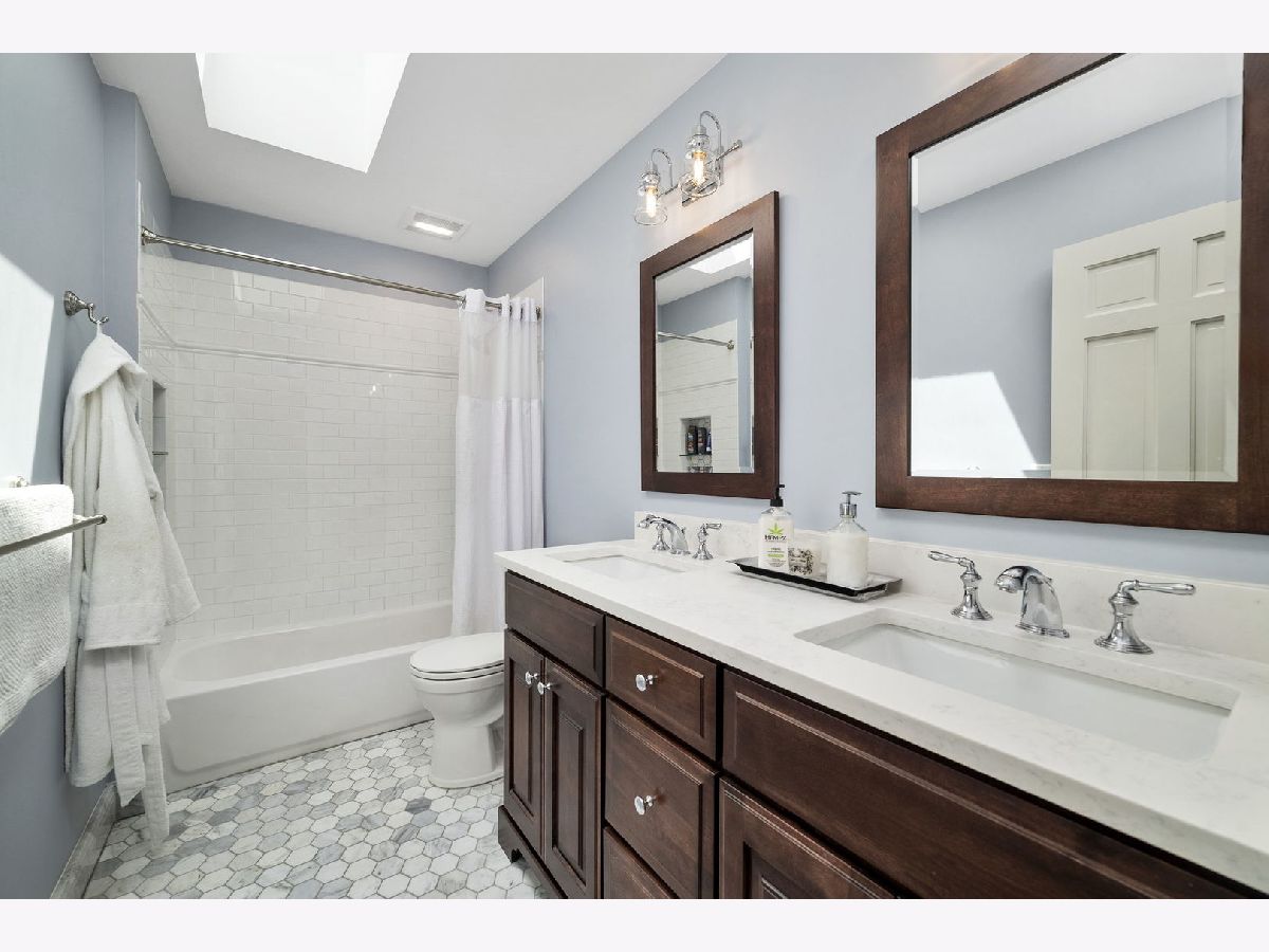 Located in the Buttonwood Subdivision, boasting mature tree-lined streets, this 4 Bedroom, 2.5 Bath, two story home offers a spacious, flowing floor plan, beautiful detailing and updates throughout. Add to that a lovely back yard with deck & patio plus the benefit of being near the renowned Naperville Riverwalk, charming shops & exceptional restaurants. Naperville is known for its exceptional schools, many community amenities & activities plus year round events & concerts. The freshly painted interior is enhanced by all new white trim. There are also white, 6 panel doors throughout. There are formal Living and Dining Rooms plus a Family Room with gas fireplace, flanking built in bookcase/cabinets & sliding doors to the back deck and yard. Your adjacent Kitchen reveals Antique white cabinets with layered crown molding, ceramic full height backsplashes, stainless steel appliances and double sink, spans of granite counters and island with cabinets & end cap shelves. Recessed lighting highlights this soon to be your favorite space! Dine casually in your Nook which also accesses the back deck. 1st Floor also has a Powder Room & Laundry with washer/dryer, cabinets, shelves & garage access. The main level has all hardwood flooring including the attractive staircase leading to the Upper Level with top landing. All 4 Bedrooms are on the 2nd floor and have wall to wall carpeting. Your Master Suite includes a walk in closet and brand new Ensuite Bath with stunning marble floors & glass entry to double shower. One Guest Bedroom also has a walk in closet. The shared hall Bath, bathed in natural light from its skylight, reveals a long double vanity, marble floor & tub/shower combo. The Basement is completely finished except for a storage/mechanical area. There is a spacious Rec Room which is large enough to allow it to be sectioned off allowing for an additional Bedroom with egress window. There is also an Exercise Room (TV in this room stays) which could be an extra guest bedroom. Updates include: 2022: New SS French Door Refrigerator w/Bottom Freezer; 2020: Renovated UL Baths/New Flush Front SS Dishwasher; 2018: New Furnace/New Humidifier/New Skylight in UL Hall Bath; 2013: New Patio Off Back Deck; 2011: New Tear Off Roof/New Front Door; 2003: Kitchen Remodeled/New A/C. Dining Room Furniture is available for purchase. A perfect home for indoor/outdoor entertaining plus its exceptional location make this a home you'll be very excited to call your own! **Some furniture available for sale.