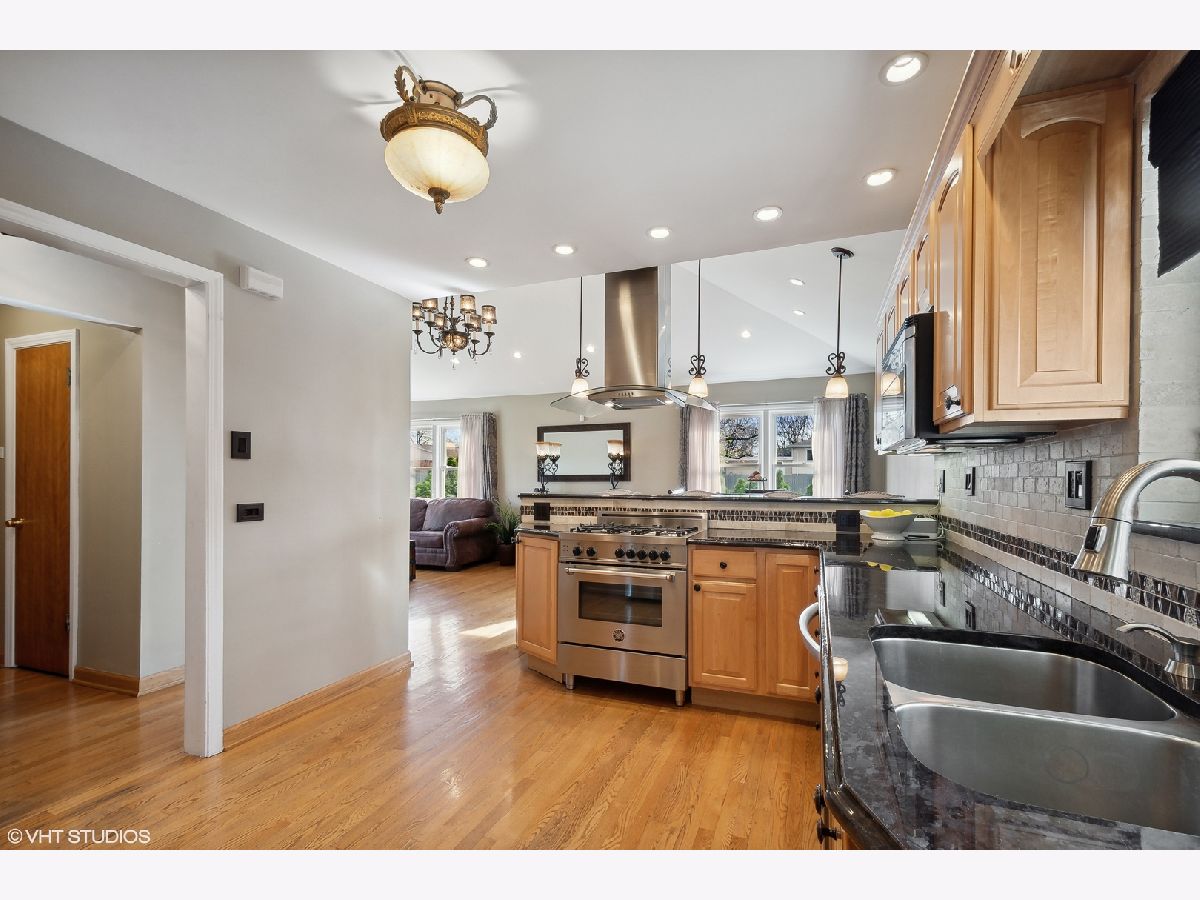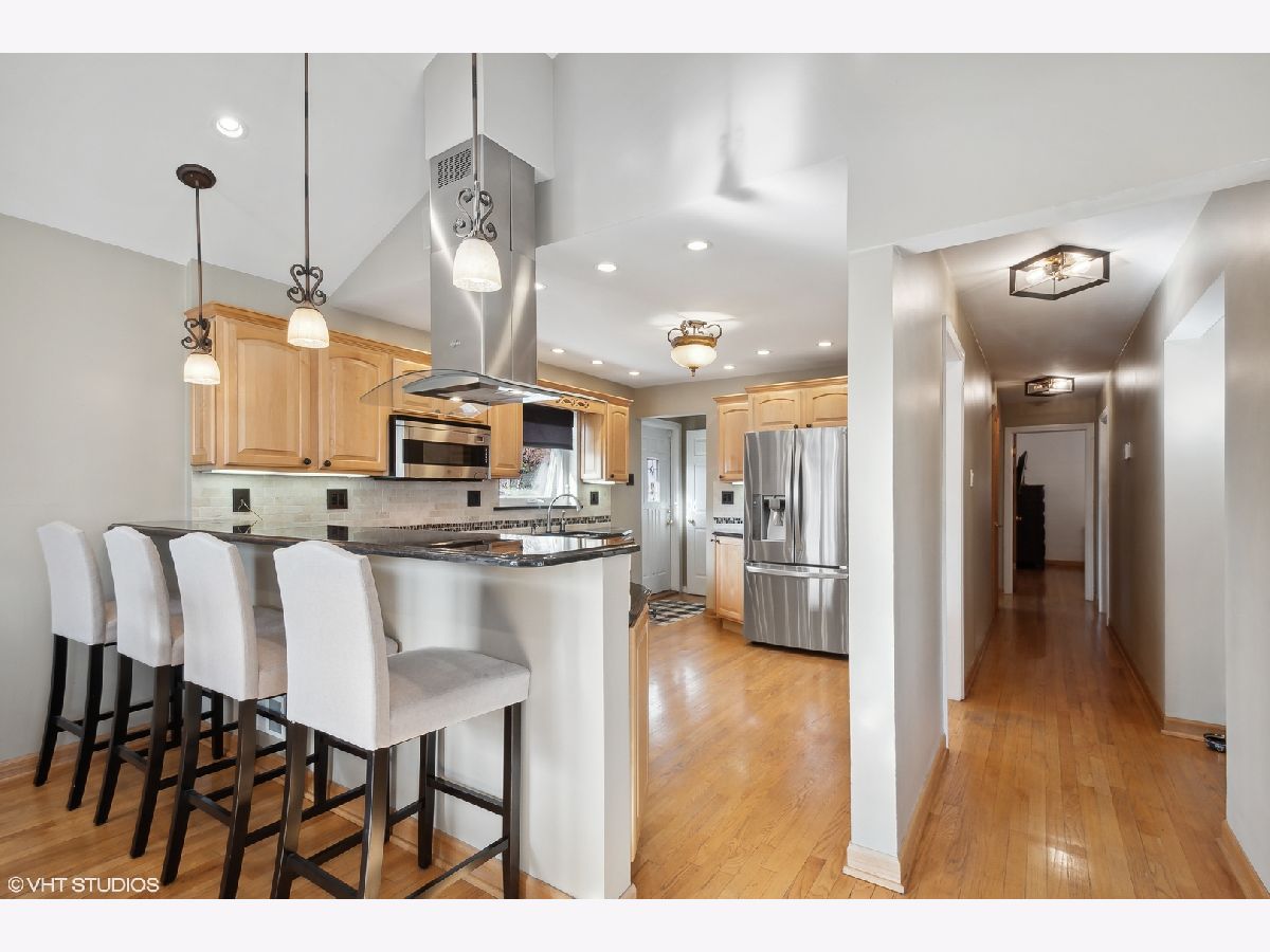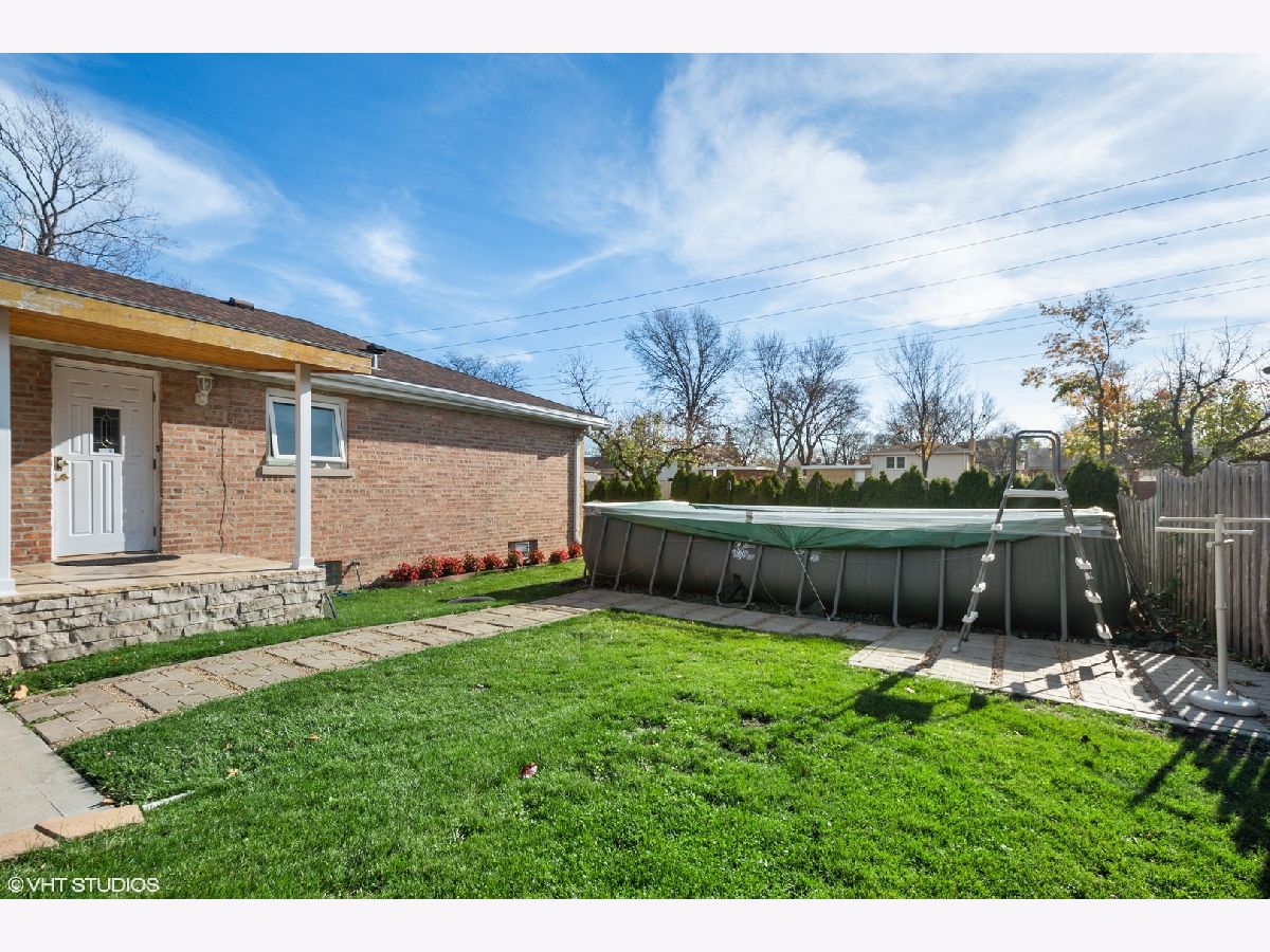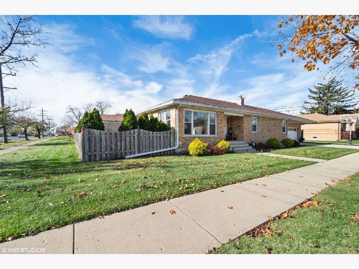 This spacious Niles brick ranch - with Park Ridge schools - has the largest lot on the market, with almost 8,500 square feet of well-manicured yard! Perfect for gardening, playing and entertaining, 8000 N Merrill boasts an above-ground pool and shaded patio! Located on a corner, this 3 bedroom + office home is light-filled and impeccably-maintained. With extensive updates - including granite kitchen countertops, stainless steel appliances and washer and dryer, basement office, kitchenette and carpet; pool, patio, front stoop, professional landscaping, drain tile system, extensive exterior concrete work, fence - you can move-right in! Be greeted at the east-facing front door and recently textured concrete and brick path and stoop. Hardwood floors are throughout the main floor of the home, with an open living room, dining room and kitchen concept. The large kitchen's stainless steel hood acts as a focal point of the cathedral ceiling over the peninsula that can be used as a buffet for larger dinners and everyday meals. If you like to cook, you will enjoy all the counter space and cabinetry, and even enjoy surround sound through wall speakers as you work! Rustic neutral backsplash throughout. All three bedrooms boast large closets and lots of windows. Main bathroom with shower/bathtub combo. Owners have thoroughly redone the basement to double the living space of this property, with a carpeted recreation room and tons of storage options. Special features downstairs are the large full bathroom with separate shower and jacuzzi tub with white subway tile surround, the office with large closet; but the piece de resistance is the wet bar punctuated with three walls of rustic tile, a beverage fridge, granite countertops and plenty of cabinets to easily store and serve food and drink while hanging out there. The separate laundry area with newer machines and lots of cabinets - and an extra storage refrigerator! - makes it easy to do your chores! Even the attached 2.5 car-garage is meticulously maintained with many storage shelving units and an epoxy floor coating system. The new owners can choose from either Maine South or Maine East as options for high school and students can catch the bus right in front of the house! A short distance to the Park Ridge Country Club, around the corner from Oakton Manor Park, half a mile to Eugene Field Elementary and only 3 blocks to Emerson Middle School. Catch the Niles Free Bus to the Oak Mill Mall or the Pulse Milwaukee Line to other dining, shopping, and transportation.