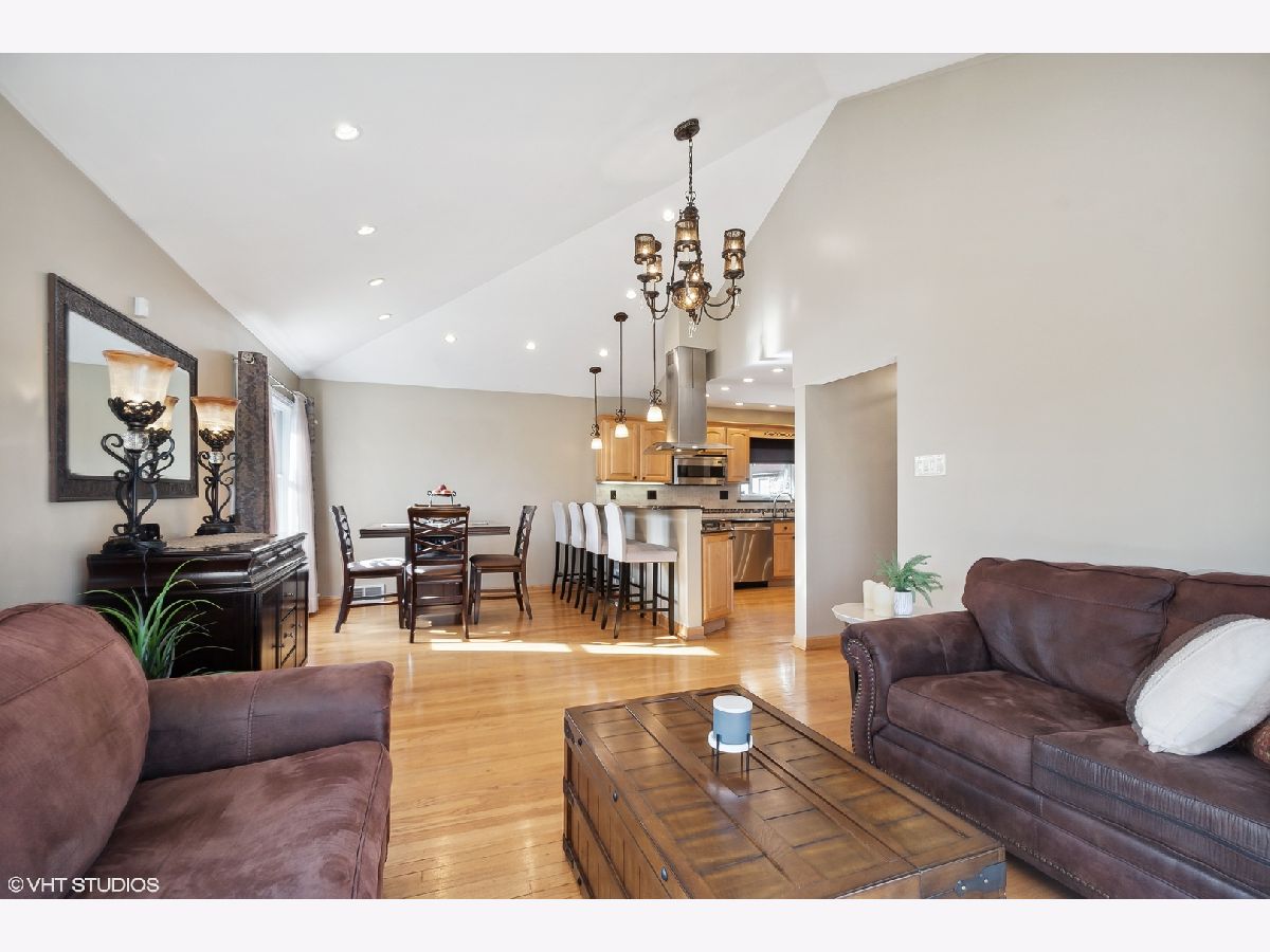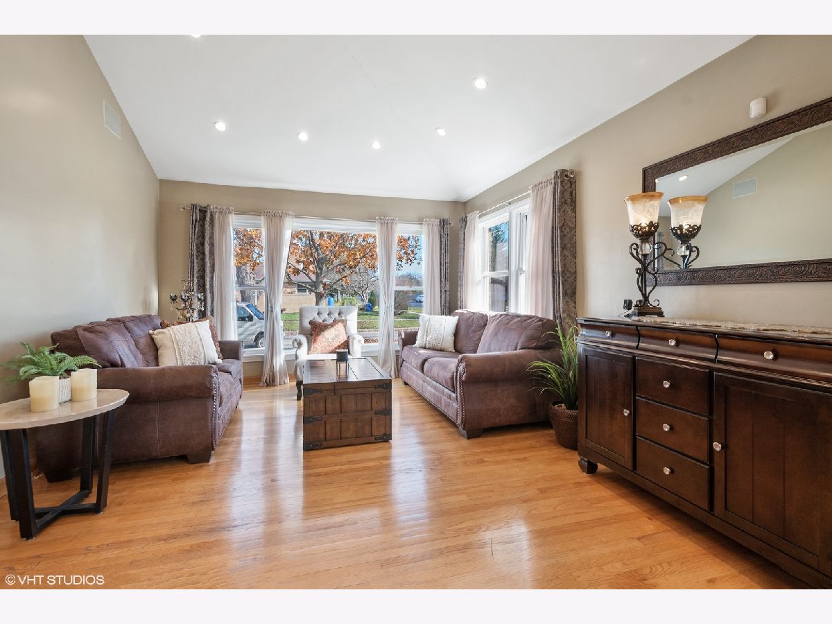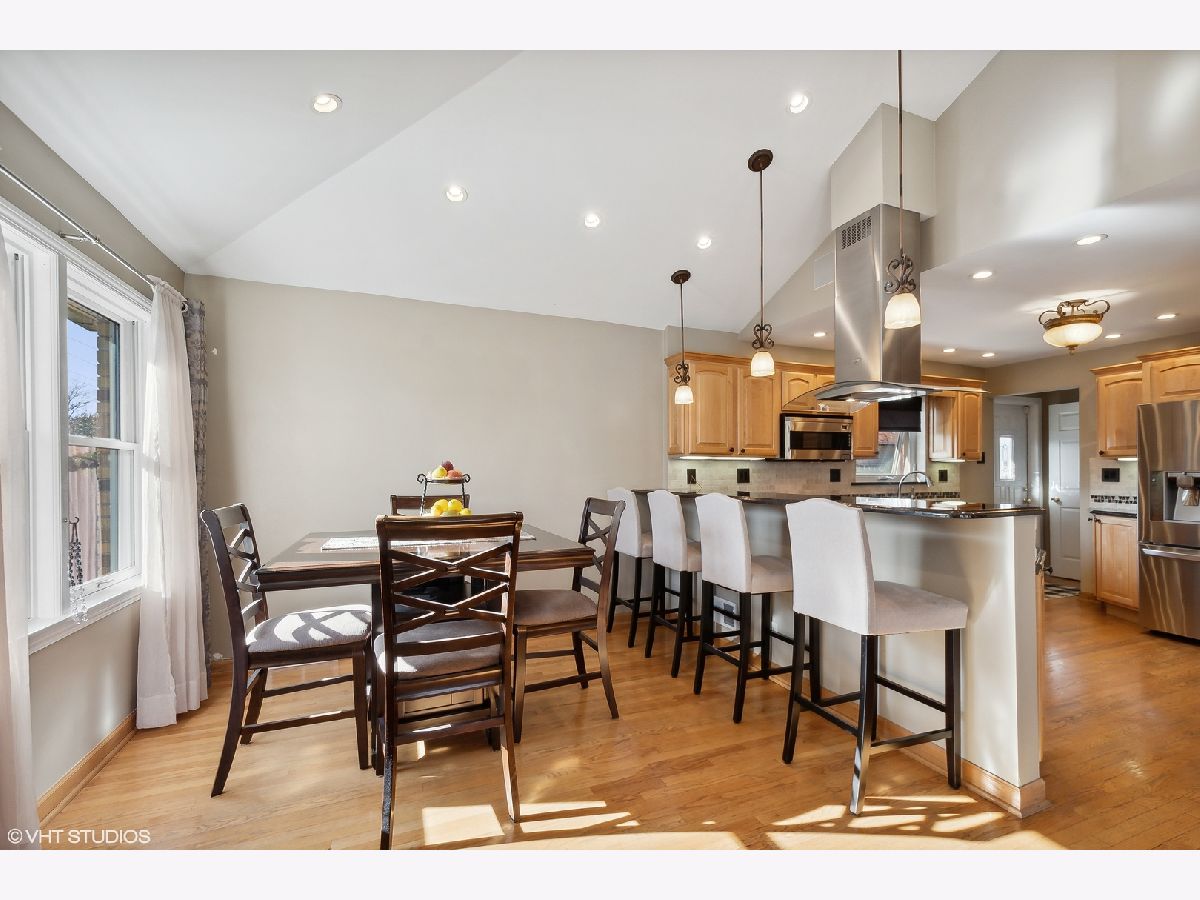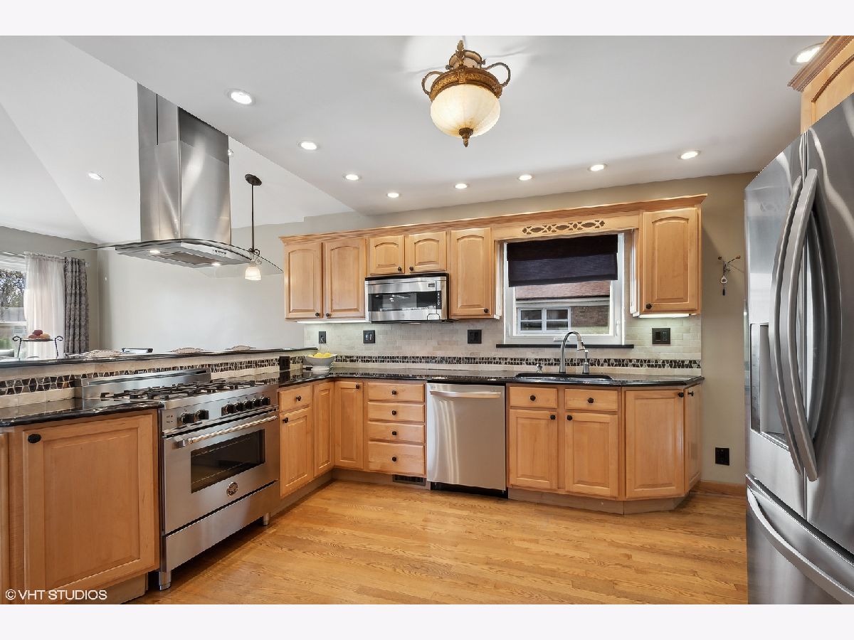This spacious Niles brick ranch - with Park Ridge schools - has the largest lot on the market, with almost 8,500 square feet of well-manicured yard! Perfect for gardening, playing and entertaining, 8000 N Merrill boasts an above-ground pool and shaded patio! Located on a corner, this 3 bedroom + office home is light-filled and impeccably-maintained. With extensive updates - including granite kitchen countertops, stainless steel appliances and washer and dryer, basement office, kitchenette and carpet; pool, patio, front stoop, professional landscaping, drain tile system, extensive exterior concrete work, fence - you can move-right in! Be greeted at the east-facing front door and recently textured concrete and brick path and stoop. Hardwood floors are throughout the main floor of the home, with an open living room, dining room and kitchen concept. The large kitchen's stainless steel hood acts as a focal point of the cathedral ceiling over the peninsula that can be used as a buffet for larger dinners and everyday meals. If you like to cook, you will enjoy all the counter space and cabinetry, and even enjoy surround sound through wall speakers as you work! Rustic neutral backsplash throughout. All three bedrooms boast large closets and lots of windows. Main bathroom with shower/bathtub combo. Owners have thoroughly redone the basement to double the living space of this property, with a carpeted recreation room and tons of storage options. Special features downstairs are the large full bathroom with separate shower and jacuzzi tub with white subway tile surround, the office with large closet; but the piece de resistance is the wet bar punctuated with three walls of rustic tile, a beverage fridge, granite countertops and plenty of cabinets to easily store and serve food and drink while hanging out there. The separate laundry area with newer machines and lots of cabinets - and an extra storage refrigerator! - makes it easy to do your chores! Even the attached 2.5 car-garage is meticulously maintained with many storage shelving units and an epoxy floor coating system. The new owners can choose from either Maine South or Maine East as options for high school and students can catch the bus right in front of the house! A short distance to the Park Ridge Country Club, around the corner from Oakton Manor Park, half a mile to Eugene Field Elementary and only 3 blocks to Emerson Middle School. Catch the Niles Free Bus to the Oak Mill Mall or the Pulse Milwaukee Line to other dining, shopping, and transportation.