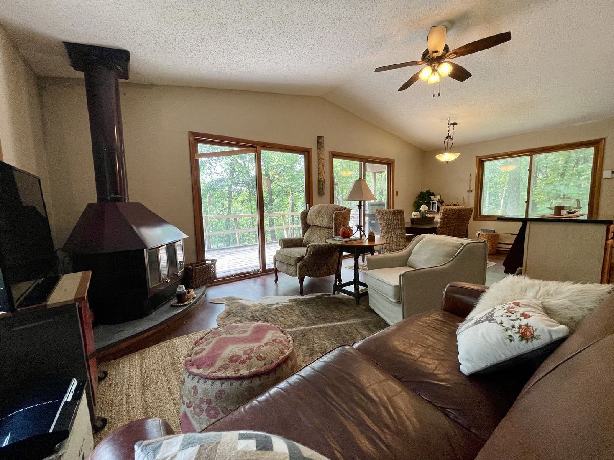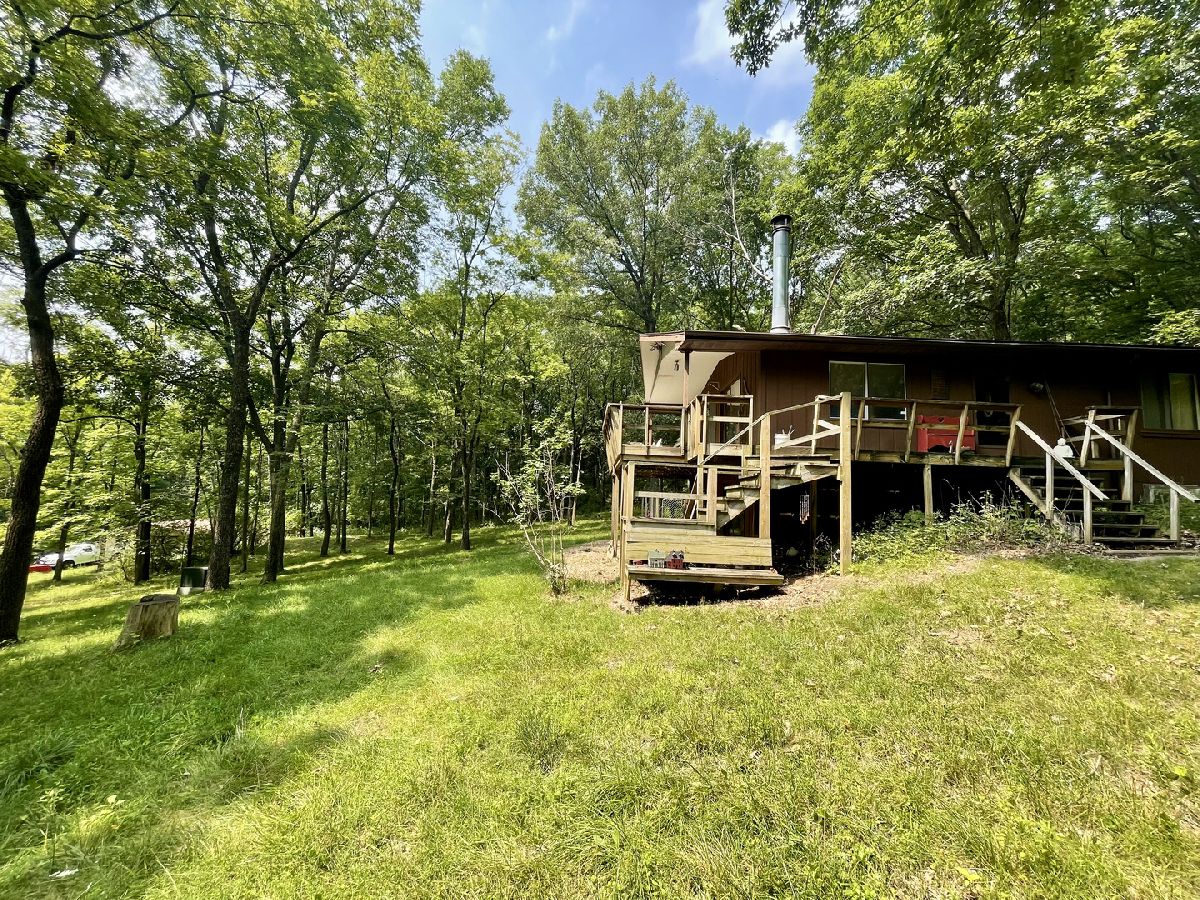 Secluded cabin that sits back off the road surrounded by timber. Entering in the property you are met with a gated private drive. You are barely able to see the cabin from the road with all the timber. As you go up the drive you will first come to the 24x36 Cleary outbuilding with concrete and electric. The drive continues up to the cabin. The cabin has a nice deck on the upstairs that has two sliders into the cabin. There is a walk door around the side of the house. The entryway provides a nice little area to take off boots. Open flow from the living room into the kitchen area. Kitchen has a nice sized island. This cozy space has the wood burning fireplace and beautiful views of the property. Upstairs you have a full bathroom that is shared by the two good sized bedrooms. In the lower level you have an additional bedroom with egress window and a family/rec room. Could be finished to add another bedroom if one was needed. Lower level has a half bathroom and unfinished utility room. 30 min to Savanna, 35 to Galena, 2:45 to Chicago.