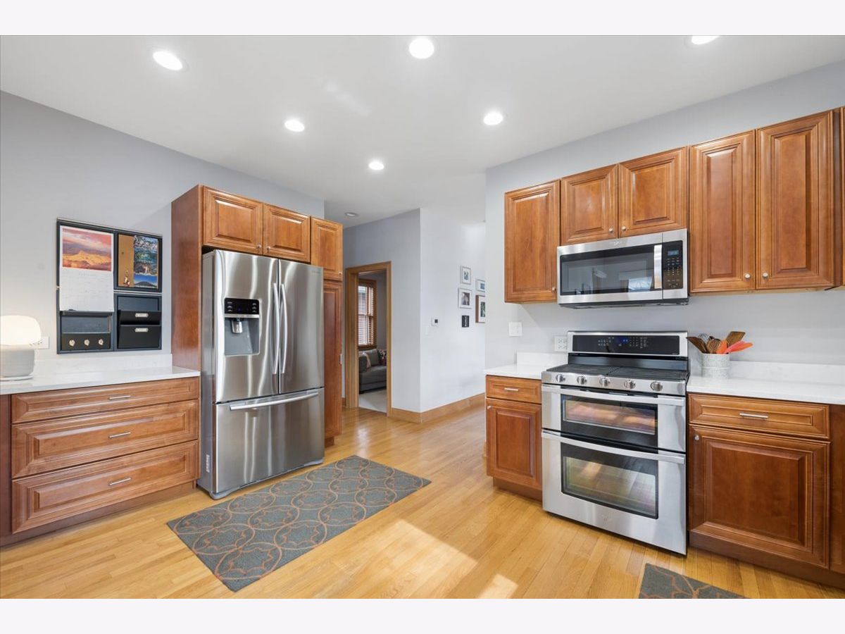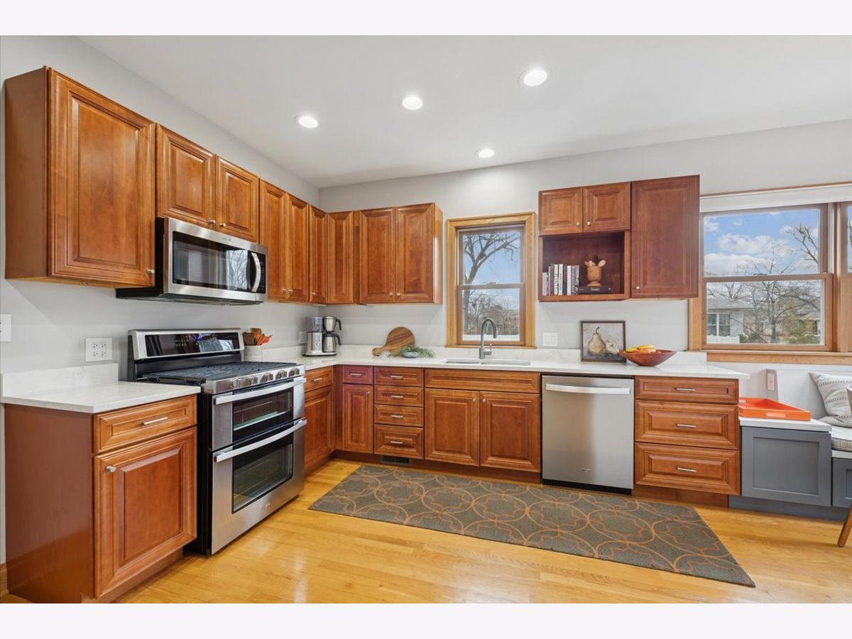 Oak Park charm with modern-day luxury & function! This home was rebuilt in 2004 and lives like a new home. Situated on a sunny corner lot, this home welcomes you with a classic front porch. Inside, you'll find gorgeous wood floors that flow throughout, adding warmth and character. The first-floor size and flow are just ideal, and the built-in breakfast nook is the coziest cherry on top. The layout is designed for both comfort and convenience, featuring a first-floor bedroom and full bathroom-perfect for guests, multi-generational living, or working from home. Upstairs, you'll find three bedrooms and two bathrooms, including a spacious primary suite that feels like a private retreat. For added functionality, the 2nd-floor laundry ensures chores are a breeze, and the closets will amaze you! The finished basement offers recreational space, home gym space, another great office or 5th bedroom, and is complete with a home theatre featuring 7.1 Polk audio surround sound and a 75" Samsung TV for cozy movie nights or game-day gatherings. Want more the garage includes a built-in rock climbing wall! Don't miss your chance to own a home that marries timeless Oak Park charm with modern-day living in mind! Located just 1/2 block from Whittier and 1 block from the library, enjoy suburban living with quick access to everything the city has to offer. Recent updates include a new fence (2023), water heater (2023), sump pump (2023), primary level HVAC (2021), and stove and dishwasher (2021).
