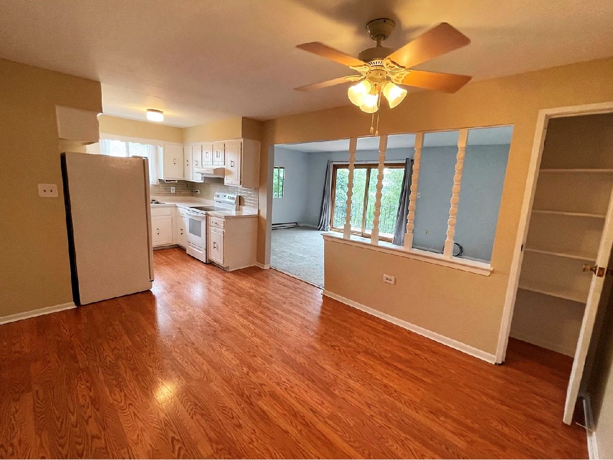 Move-in-Ready. This Large Condo is Updated, Fresh & Clean! Great Kitchen & Bath. Large Living Room & Separate Dining Room. 2 Big Bedrooms, and an Incredible Balcony with its own private Storage Room! Located down the street from Park District with Pools and Playgrounds. Easy Interstate access too. Updated items: Windows, Patio Door, Carpets, Baseboard Heaters, Air Conditioners, Kitchen Faucet, Stove, Refrigerator, Washer, Dryer, Bathroom Faucet, towel bars, tub spout, ceiling fans, 40-gallon water heater, Combo Fire/CO Alarm, and much more. These long-time owners have maintained this unit very well, and it shows!