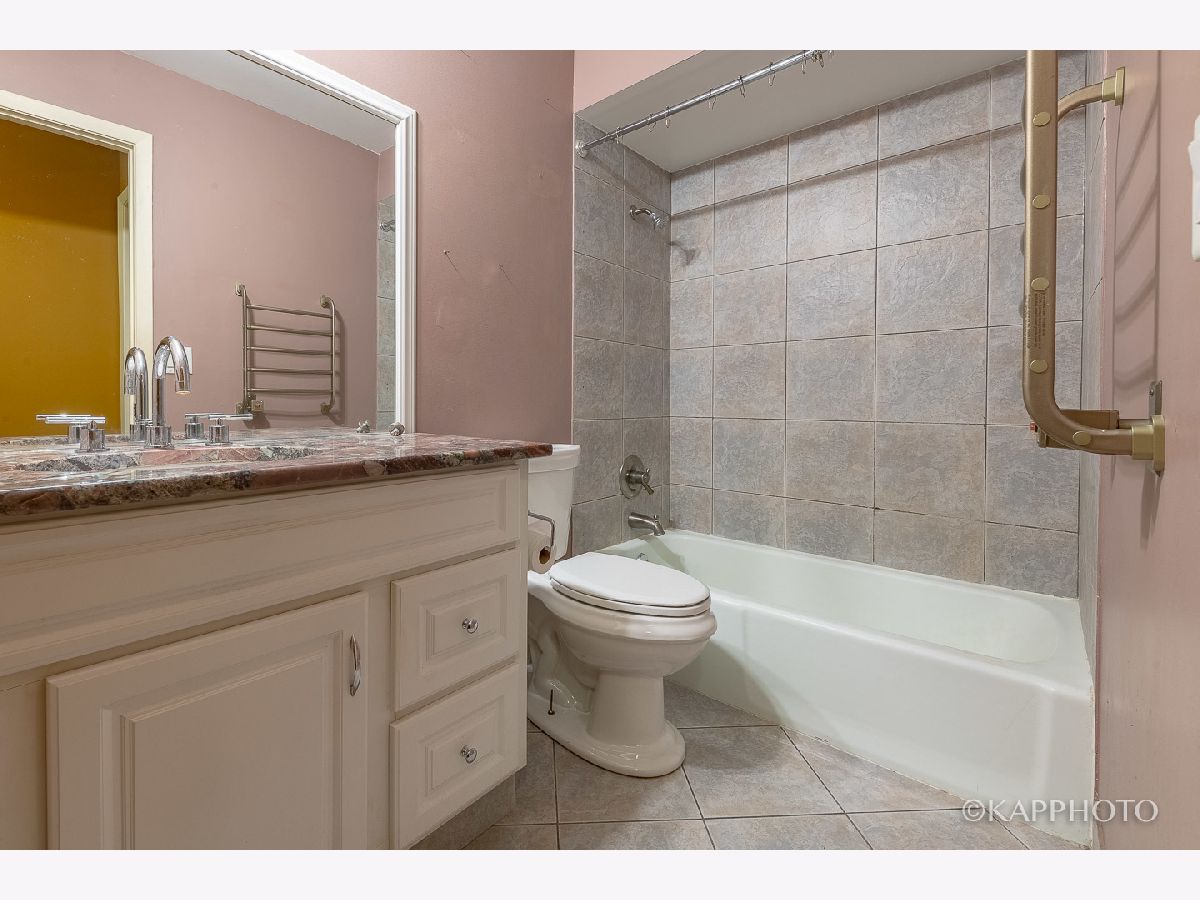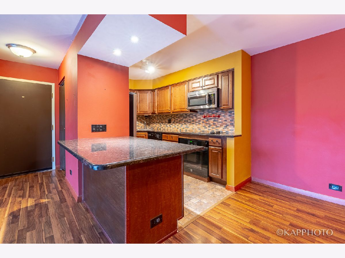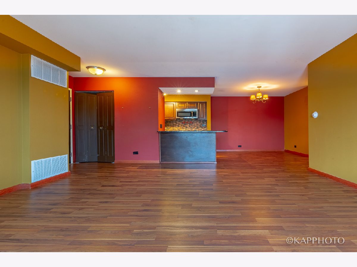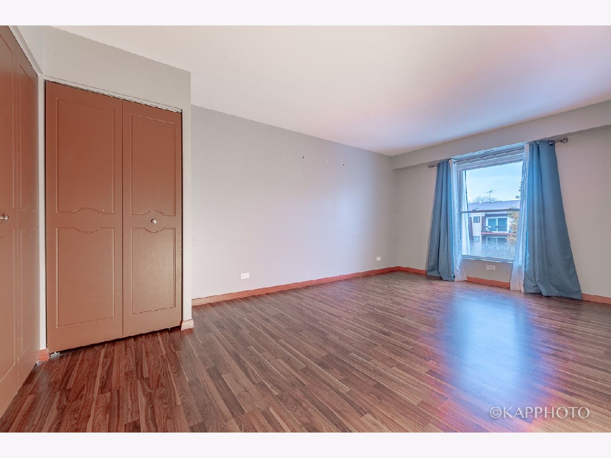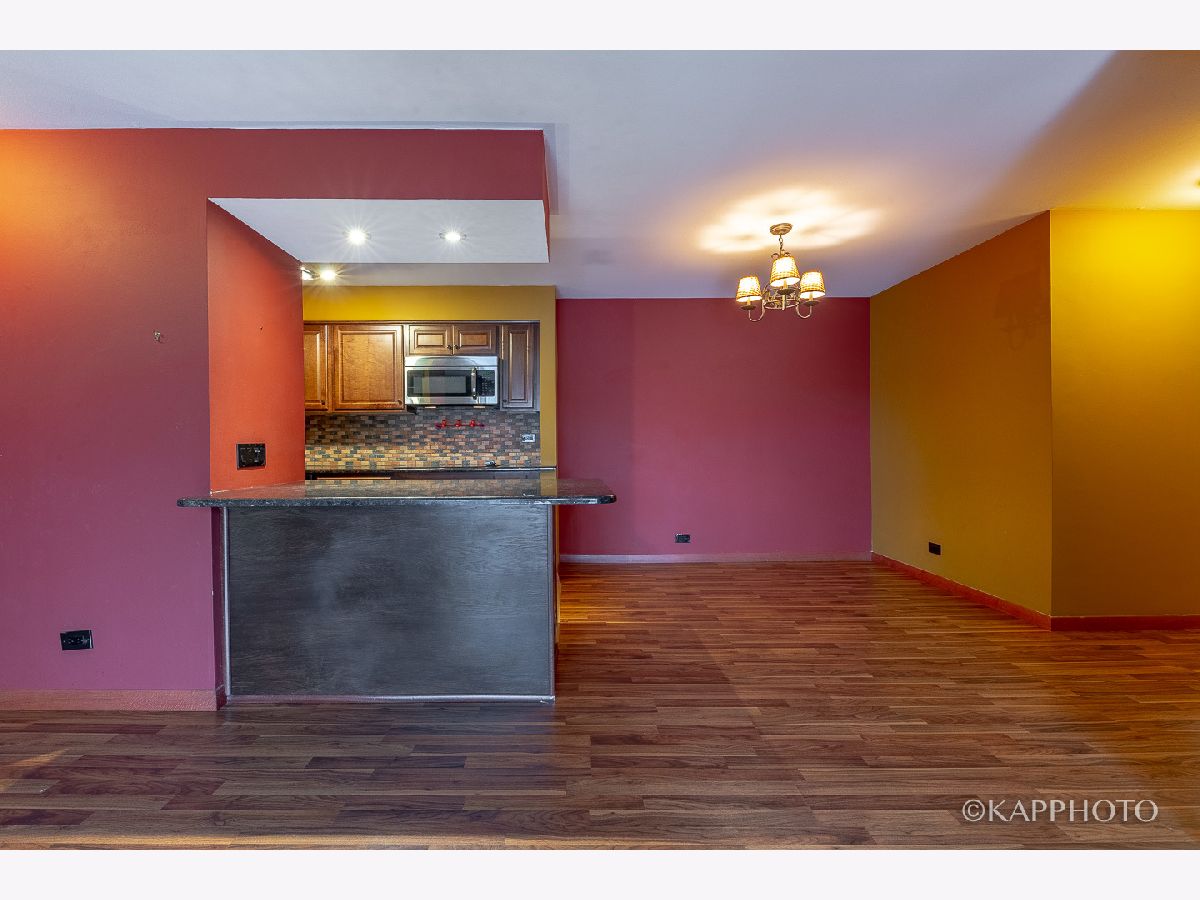 A beautifully-remodeled top floor unit with very open layout. Kitchen has granite counters, 42 in. cabinets, mosaic tile backsplash, stainless steel appliances, and breakfast bar. Entertain in the formal dining room. Living room opens up to a wide balcony with newer patio door. Newer windows in 2015. Wood laminate floors throughout. Remodeled bath has granite top vanity & tile floors. Separate storage & coin laundry. Enjoy the great outdoors in the forest preserve across the street. Visitor parking available. Close to I-94 & Randhurst Mall. It can't get any better than this!