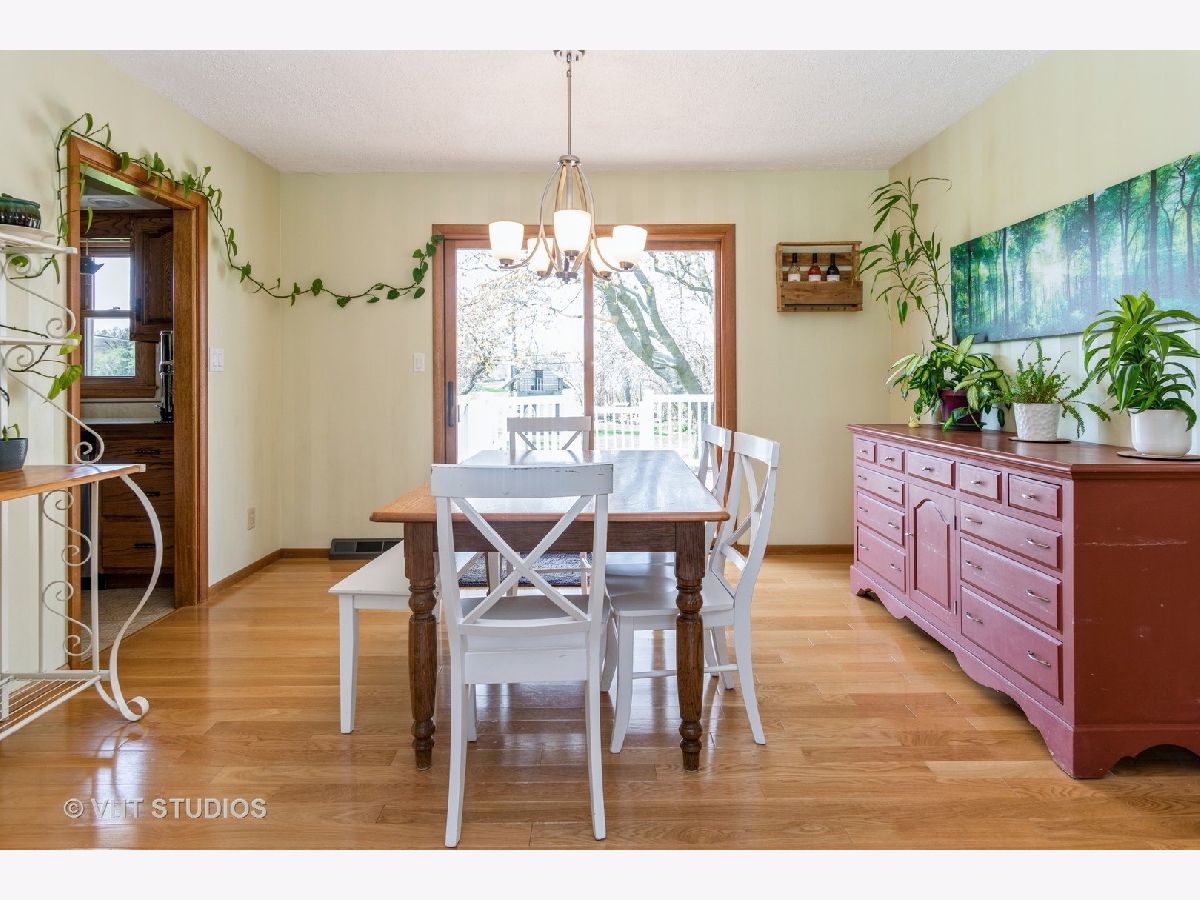Lovingly cared for split-level home with 4 bedrooms and 2 bathrooms. Newer Hardwood floors throughout most of upper level. Spacious eat-in kitchen offers tons of cabinet space & SS appliances. Dining room is great for those family gatherings & extra entertaining space. Sliders off of dining room allow access to deck that overlooks large backyard which borders community park area. On the main level you'll find 2 bedrooms & 1 full bath. Lower level features a family room, 2 bedrooms & a full bath....great for extra living space, an in-law arrangement, guests or that teenager needing their own space. Bathrooms were updated in 2020 and 2022 & deck was recently stained in 2021. Roof w/40 yr architectural shingles in 2004. Extra deep garage w/stairs to lower & upper levels. There is a whole house ADT security system that comes with door sensors, motion sensors, and smoke detectors. Close to grade school and NIU campus.