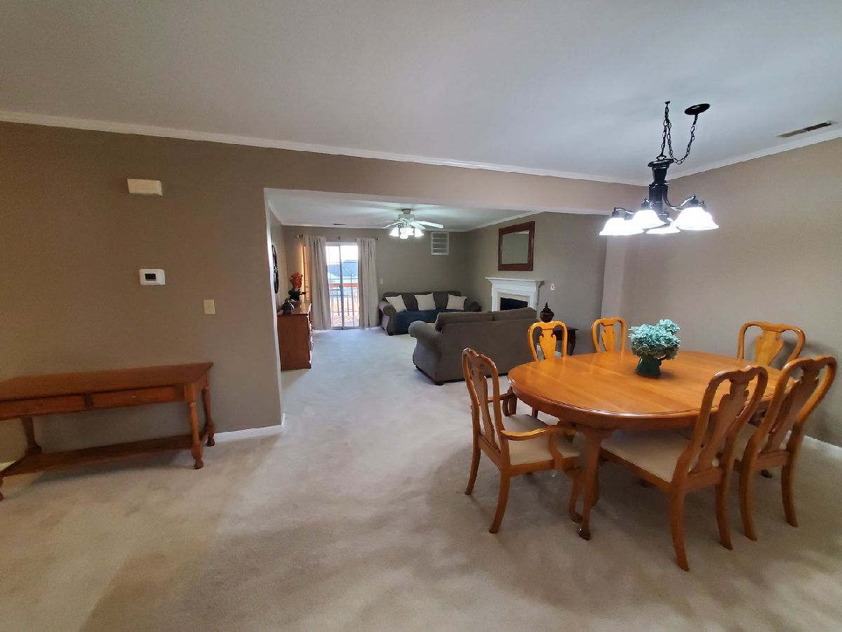 Move in ready 2 Bedroom 2 Bath upper condo. The Unit has had a recent refresh! This is an Estate sale so the property is being offered AS-IS although the condition is excellent and the recent painting and kitchen flooring really look good! The ground floor foyer is large and the closet is 8 feet wide. This is tile floored with ample storage and staging area. Up stairs is the 4 room condo. The upper foyer is very spacious and shows off the open floor plan well. Left is bedrooms & bathes. Right is kitchen, living room and open dining room. The kitchen featuring new plank flooring, the nook is a great place for a breakfast table in front of all the windows with a view of the wild life right outside. All the appliances stay including the washer and dryer. The cabinets are numerous and well kept. Clean and bright! To the dining room which can seat 8 easily is open to the extra large living room with gas fireplace. South facing sliding doors opens to the covered porch which also offers access to the mechanical room with furnace and water heater and more storage for your BBQ grille on the porch when needed. Across the foyer to the master suite featuring, a spacious walk in closet with plenty of opportunities for hanging clothes and shelves for storage or maybe shoes. Next to the WIC is the master bath with double sinks, open counter area and plenty of lights and mirror. This is a rather large room and it features a corner shower and separate WC . The bed room is generous size and will accommodate a king bed with ease. Rounding out the remainder of condo is a central bath and second bedroom. The finishing touches that add the real eye appeal is the crown molding every where and knocked down ceiling treatment. Unit comes with a single car garage and door opener right across from the condo. Northbrooke Development of Bourbonnais offers amenities like outdoor in ground pool. HOA fees covers exterior maintenance, pool access, lawn care, snow removal and garbage pick up. This is what you have been waiting for, move in ready at the right price. Spring will be here before you know it, spend your relaxing time by the pool this year Make an appointment now!