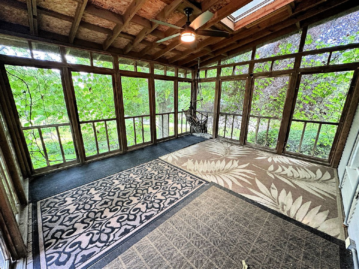 Talk about a hidden gem! Nestled on a hilltop and surrounded by mature trees, this home is one that you could easily miss driving by, but do not want to miss buying! Featuring 2 stories and over 2,000 square feet, this 3-4 bedroom, 2 bathroom home showcases an abundance of character with original woodwork, hardwood flooring, tall ceilings, classical fixtures, and built-in features. You are welcomed into the home through a foyer with an open hardwood staircase leading upstairs or take the hallway to the spacious living room which features a wood burning fireplace and ample windows to enjoy the natural light. Adjoining the living room is the large dining room with a beautiful built-in feature and large windows. The updated kitchen has abundant cabinetry, a breakfast bar as well as table space, and includes all appliances. Also on the main level is a den/bedroom, laundry room, and a full bathroom with a walk-in shower. Take the aforementioned staircase to the 2nd level, where you find 3 spacious bedrooms with ample closet space, more built-in features, and a full bathroom. The basement provides more storage space as well as the option to turn into finished space. The appeal does not stop with the inside. For entertaining or relaxing and enjoying the outdoors, the home features a 14' x 16' screened patio and a 15' x 27' wooden deck. The 2 car detached garage and circle driveway provide ample parking space. Key recent upgrades to the home include the HVAC, upper roof, and 6" gutters with leaf guards. See the character and appeal of this home for yourself!