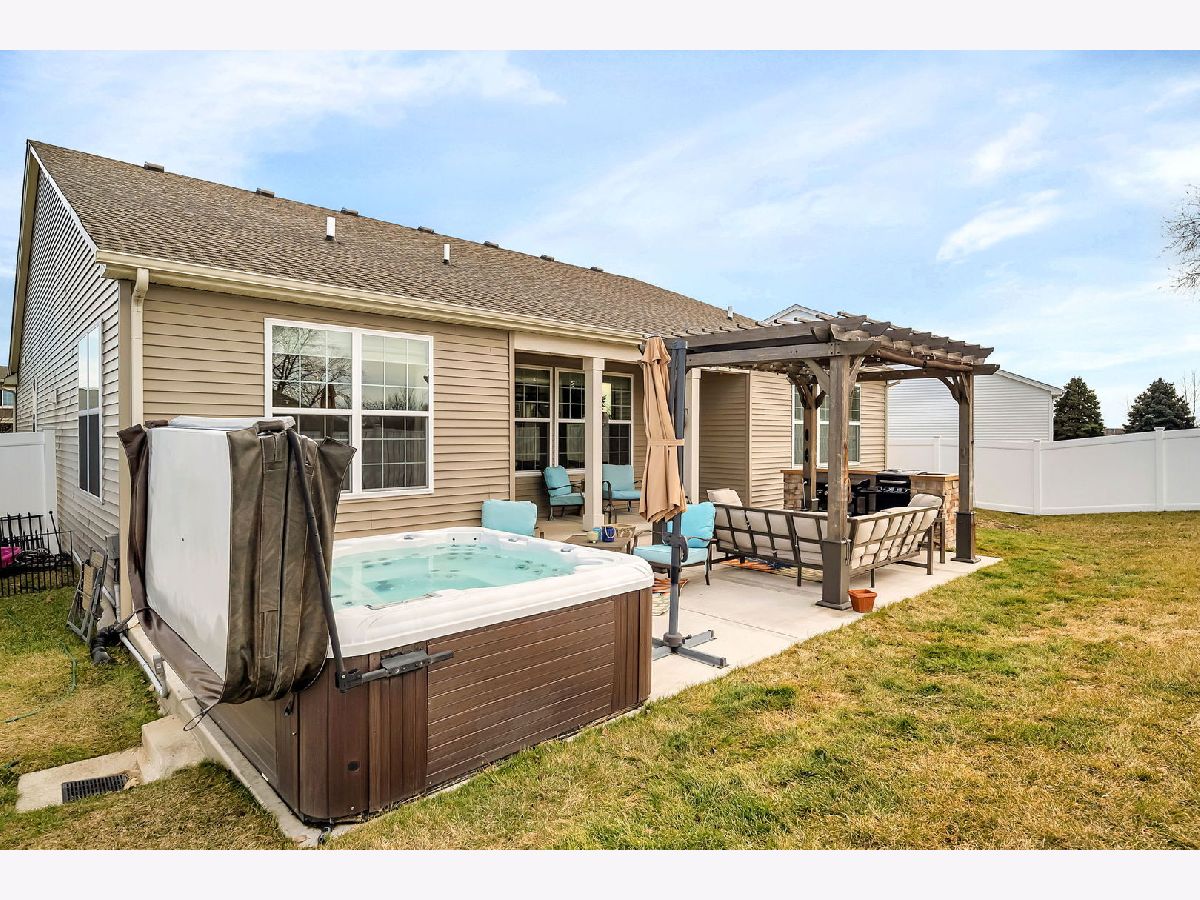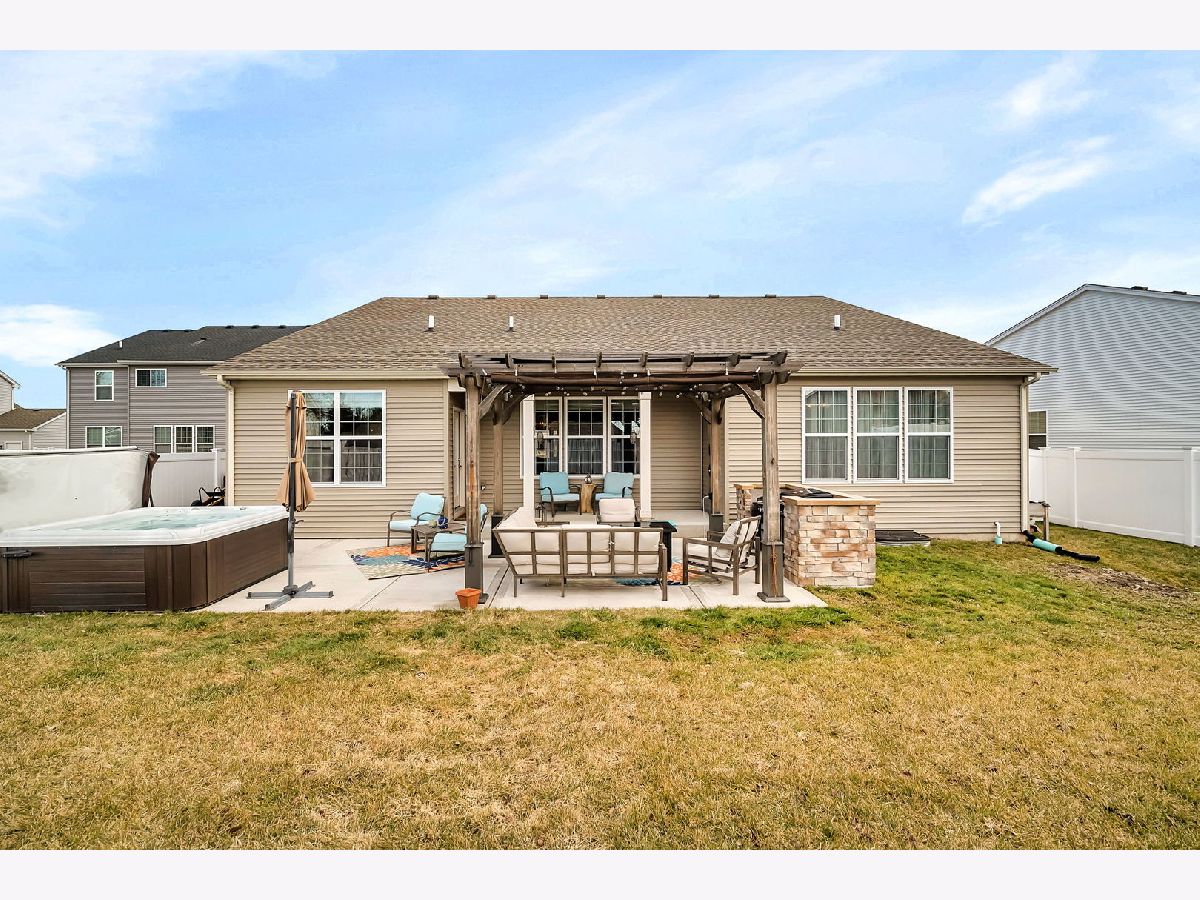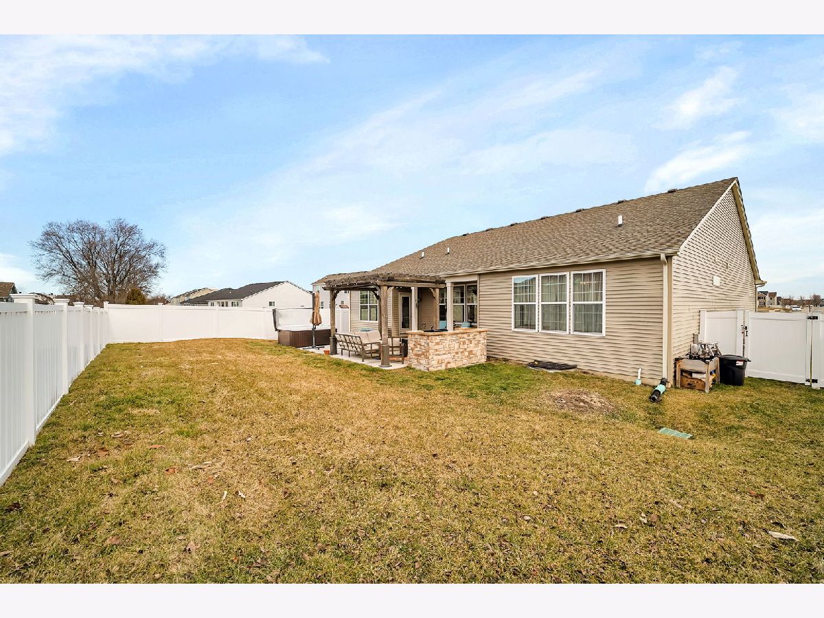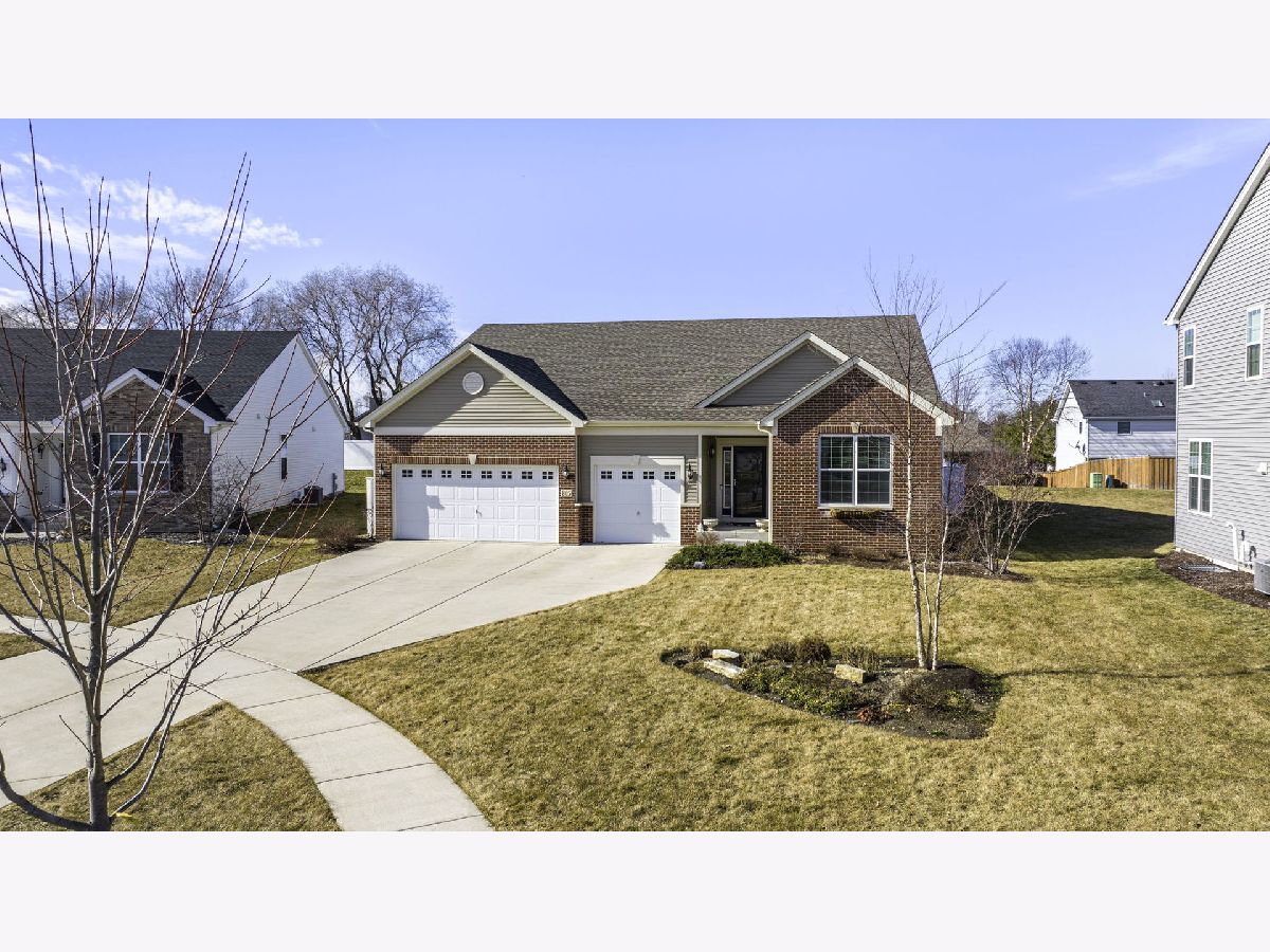 Welcome to your almost new construction ranch home with stunning and custom details throughout! With its impeccable design, thoughtful custom touches, and exceptional attention to detail, you will see why this property truly stands out! Set on a quiet cul-de-sac, the brick front, concrete drive, and three-car garage are immediately noticeable features. Upon entering, you'll be greeted by an open floor plan boasting 9' ceilings that effortlessly connect the main living areas, creating an inviting atmosphere for both daily living and entertaining. The heart of the home is the gorgeous kitchen, featuring an abundance of custom 42"cabinetry, quartz countertops accented with a tile backsplash, and top-of-the-line stainless steel appliances. A functional breakfast area is surrounded by large windows and fills the space with warmth and light. The kitchen seamlessly flows into the family room, separated by an oversized island with custom tile finishes and custom lighting. Three spacious bedrooms and two full bathrooms, each thoughtfully designed to provide both privacy and comfort, are on opposite ends of the home. The primary suite serves as a retreat, with a luxurious ensuite bathroom featuring a 5' tiled, walk-in shower with bench seat and customized walk-in closet with shelving. This home offers additional features including canned lighting, crown moulding, a receptacle panel for a portable generator, a custom drop zone off the garage entry, an almost fully insulated and drywalled garage and so much more. For those who need a little extra space, the basement offers a useable workshop or craft room along with an almost additional 2200 sqft of space that when finished can add to the already long list of amazing attributes found in this home. Step outside to discover your private oasis in the fully fenced backyard. Here, you'll find an oversized, deeper-pour concrete patio that extends from the covered porch, providing the ideal setting for outdoor relaxation and entertainment. Take a dip in the hot tub, unwind under the shade of the pergola, or get things cooking in the custom-built grill station for your next gathering. The perfect spot has been created just for your enjoyment. Conveniently located just minutes to I-80 & I-55, schools, grocery stores and MANY local restaurants. Absolutely nothing to do but move in, and enjoy!