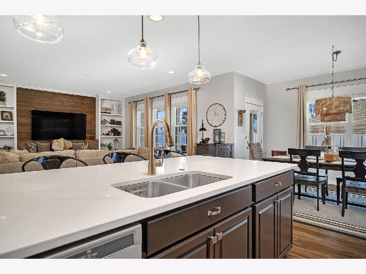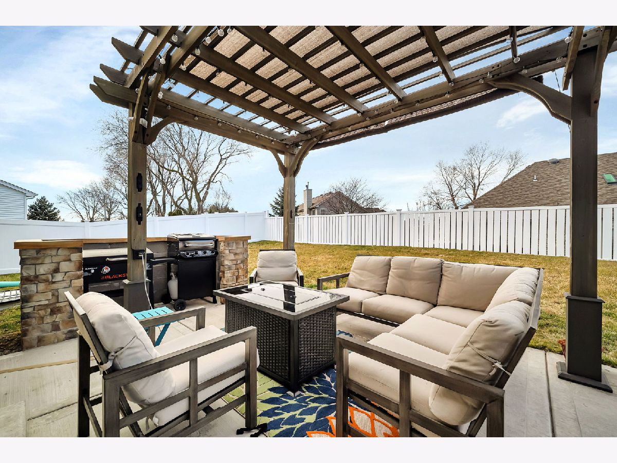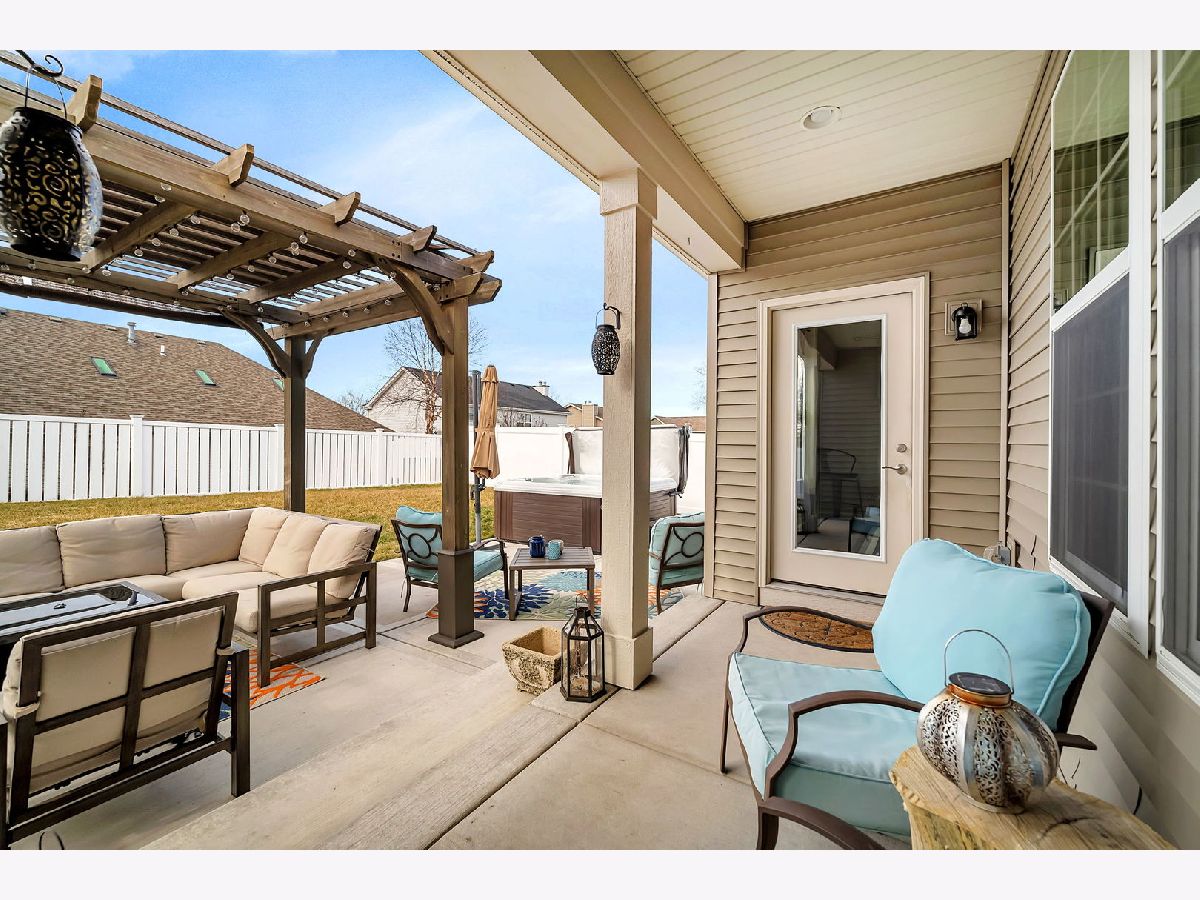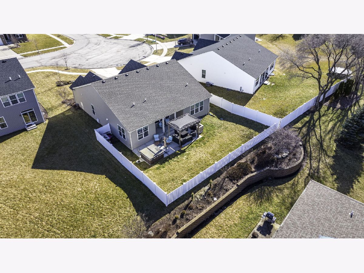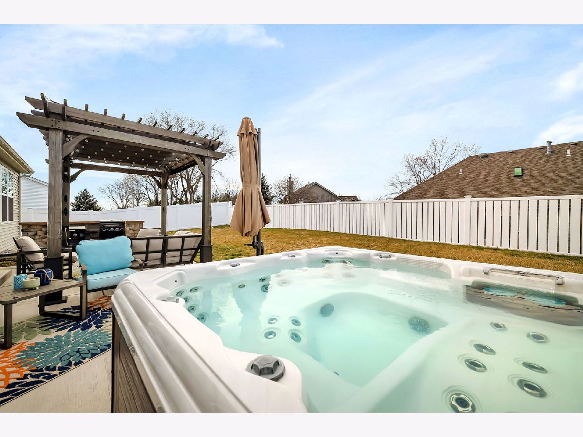 Welcome to your almost new construction ranch home with stunning and custom details throughout! With its impeccable design, thoughtful custom touches, and exceptional attention to detail, you will see why this property truly stands out! Set on a quiet cul-de-sac, the brick front, concrete drive, and three-car garage are immediately noticeable features. Upon entering, you'll be greeted by an open floor plan boasting 9' ceilings that effortlessly connect the main living areas, creating an inviting atmosphere for both daily living and entertaining. The heart of the home is the gorgeous kitchen, featuring an abundance of custom 42"cabinetry, quartz countertops accented with a tile backsplash, and top-of-the-line stainless steel appliances. A functional breakfast area is surrounded by large windows and fills the space with warmth and light. The kitchen seamlessly flows into the family room, separated by an oversized island with custom tile finishes and custom lighting. Three spacious bedrooms and two full bathrooms, each thoughtfully designed to provide both privacy and comfort, are on opposite ends of the home. The primary suite serves as a retreat, with a luxurious ensuite bathroom featuring a 5' tiled, walk-in shower with bench seat and customized walk-in closet with shelving. This home offers additional features including canned lighting, crown moulding, a receptacle panel for a portable generator, a custom drop zone off the garage entry, an almost fully insulated and drywalled garage and so much more. For those who need a little extra space, the basement offers a useable workshop or craft room along with an almost additional 2200 sqft of space that when finished can add to the already long list of amazing attributes found in this home. Step outside to discover your private oasis in the fully fenced backyard. Here, you'll find an oversized, deeper-pour concrete patio that extends from the covered porch, providing the ideal setting for outdoor relaxation and entertainment. Take a dip in the hot tub, unwind under the shade of the pergola, or get things cooking in the custom-built grill station for your next gathering. The perfect spot has been created just for your enjoyment. Conveniently located just minutes to I-80 & I-55, schools, grocery stores and MANY local restaurants. Absolutely nothing to do but move in, and enjoy!