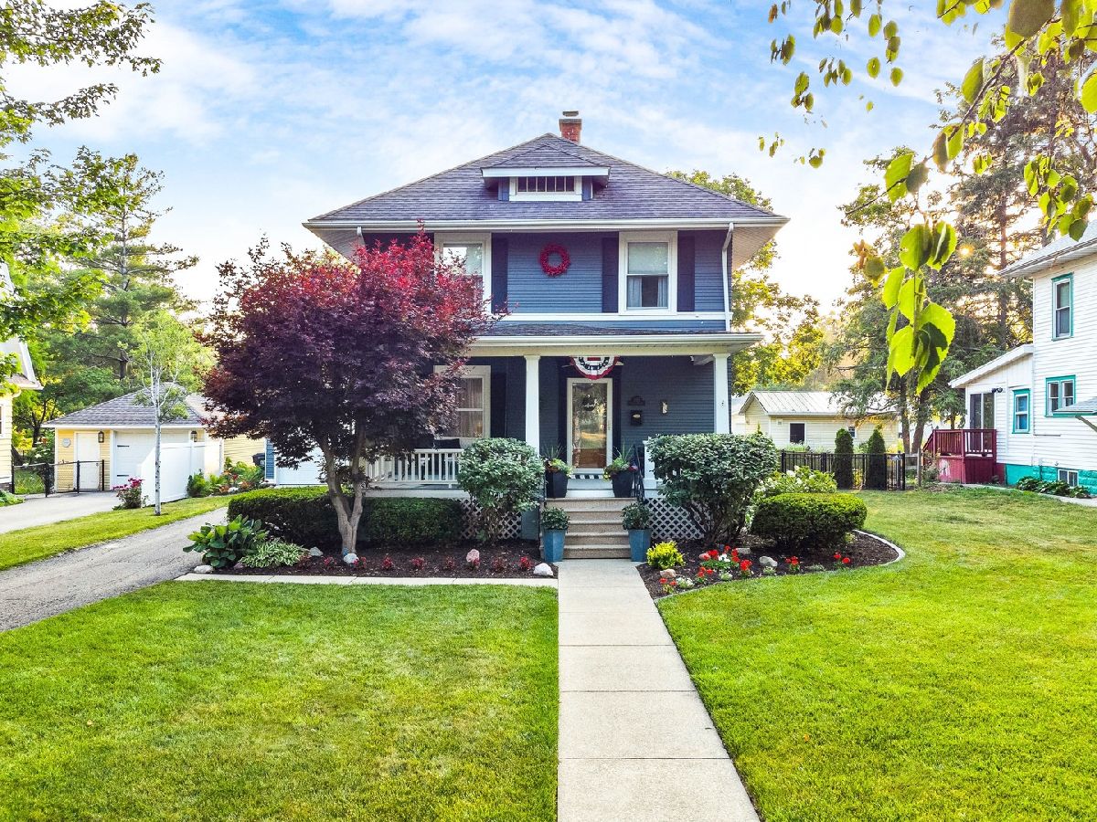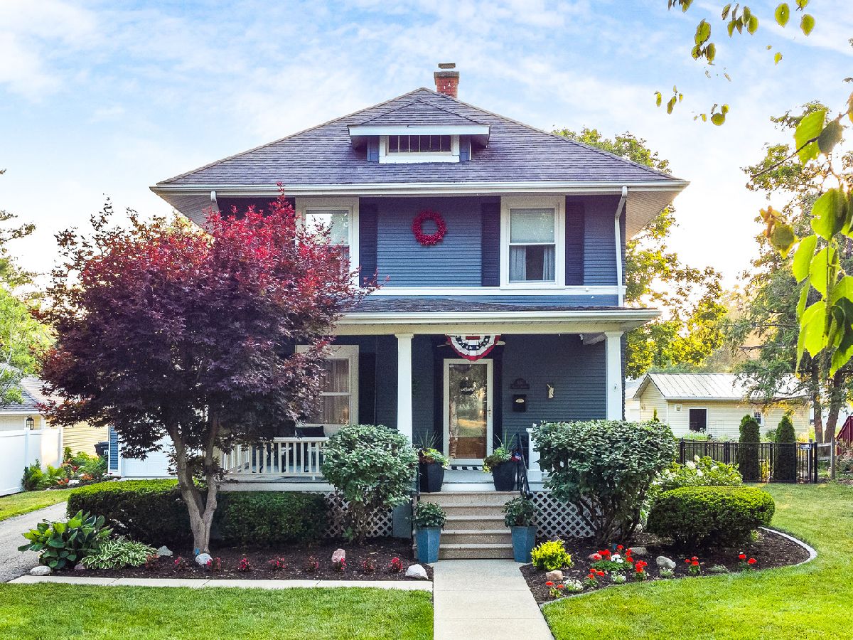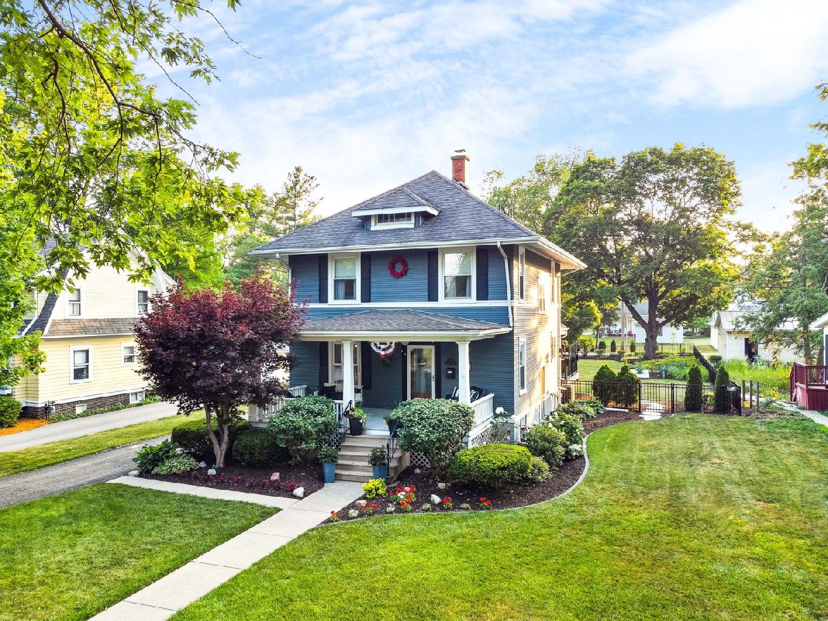 Have you ever strolled down historic tree-lined School Street and dreamt of lounging with a lemonade on the front porch of one of these grand estates? Don't miss this rare opportunity to own one these stunners that has been meticulously maintained for decades... You'll find character & charm around every corner of this foursquare beauty and a blend of classic touches with modern amenities. Freshly painted paneling, walls and trim, with light and bright updated windows and 9.5' ceilings this home feels as light and airy as it looks! Original newly refinished hardwoods greet you in the foyer and guide you to the turned handrail with open staircase. Front sitting room offers newer carpeting for comfort and ease of care. Formal dining with built-in bench seating and paneling offers a cozy nook plus plenty of room for an oversized table, hutch or additional seating. Hardwoods continue into the updated kitchen with gorgeous quartz counters, custom tile backsplash, floating island with additional seating and stainless appliances. Convenient and updated half bath plus pantry offers functionality and convenience on the main level. Hardwoods continue into the smartly designed sunroom addition just off the kitchen with vaulted ceiling and an updated slider for easy access to the newly constructed raised Trex deck overlooking your very own private backyard oasis! Just step outside to enjoy School Street's signature (and best!) characteristic in your oversized deep lot with over 200' of breathing room! Meticulously cared for, newly fenced lot with mature trees, fresh landscaping, garden, greenspace and plenty of shade and sun perfect for a pool, pets and entertaining. Detached 2-Car Garage is just as beautifully cared for as the home and conveniently offset for easy private back access. Upstairs you'll discover your very own primary suite with new carpet, tons of natural light, and a recently renovated enormous walk-in closet with smart barn-style doors and LVP floors. Beautifully appointed full bathroom features tub/shower combo with custom tile and modern sliding door plus storage and ceramic tile. Two additional large bedrooms with newer plush carpeting, ceiling fans and ample closets offers space for office, hobbies and guests. Downstairs, the clean and fresh full basement has whitewashed walls and cool gray enamel flooring includes a tidy laundry area with plenty of space for hanging storage and clothes plus brand new washer/dryer combo. Storage, space and style abound in this amazing century-old stunner... Come see all this home has to offer!
