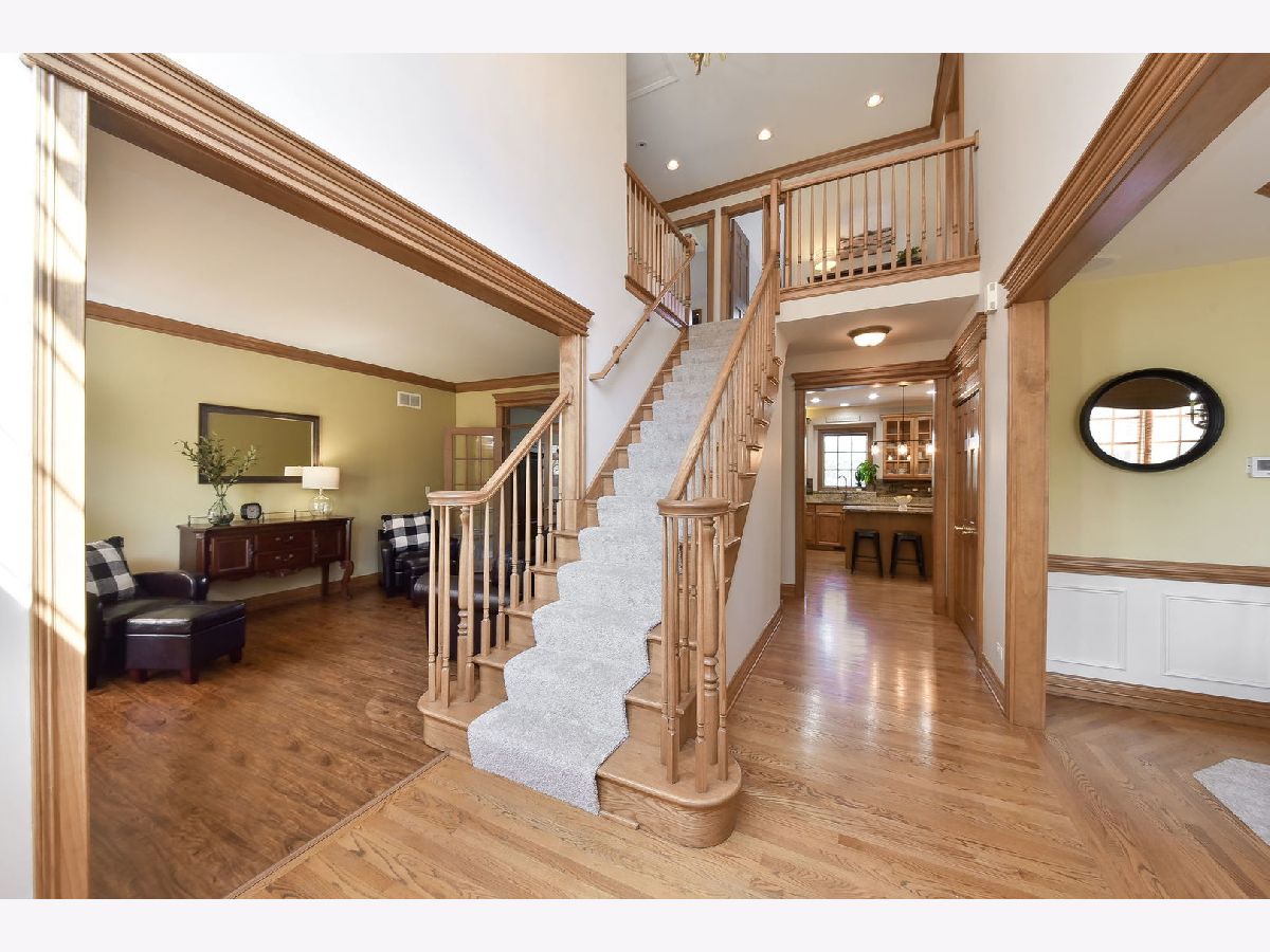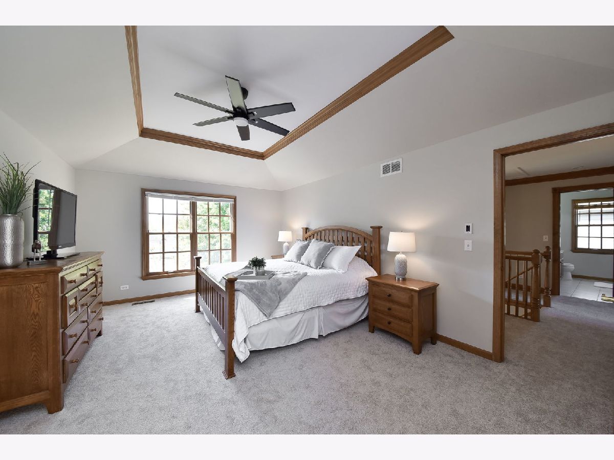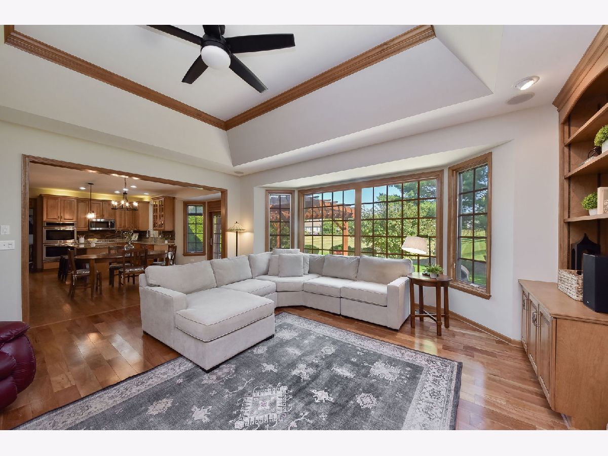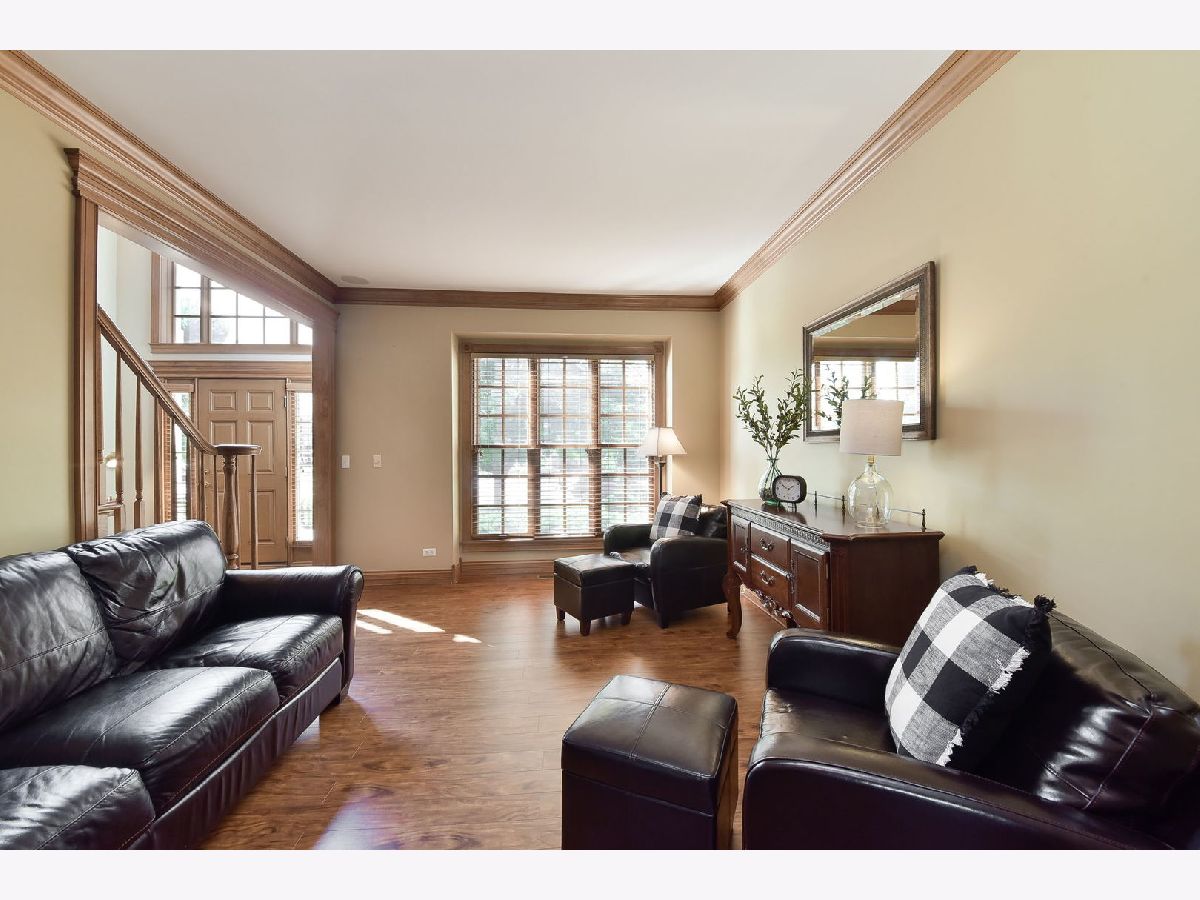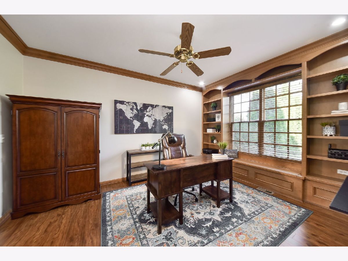 Welcome to your new home in the highly sought after Hartfield Estates subdivision! Over 2,700 square feet of impeccably finished space is offered including custom built ins, vaulted ceilings, tray ceilings, wainscoting & so much more! Updated kitchen with granite counters, 42" cabinetry, SS appliances and an island with seating. Featured is a 5 burner Bosch stove, Kenmore double oven, GE microwave & Maytag dishwasher Eating area with access to your serene backyard. Airy & bright family room with brick surround fireplace flanked by custom built ins. Formal living room with crown molding & dining room with crown molding, wainscoting, wall sconces & tray ceiling. An executive office with French doors, crown molding & custom built ins with stunning views of your backyard. Expansive primary suite with a vaulted ceiling, oversized walk in closet with shelving & a serene like en suite bath with double sinks. Additional bedrooms & hall bath complete your second level. Mudroom with bead-board wall & closet. Main floor laundry with sink & cabinetry & Maytag washer & dryer. Expansive unfinished basement offering endless potential. Enjoy a cool fall night around your firepit & enjoy the views from your patio with a pergola. Mature trees surround this stunning home on an oversized lot surrounded by mature trees backing to open space! Incredible location with easy access to I-88. Welcome home.