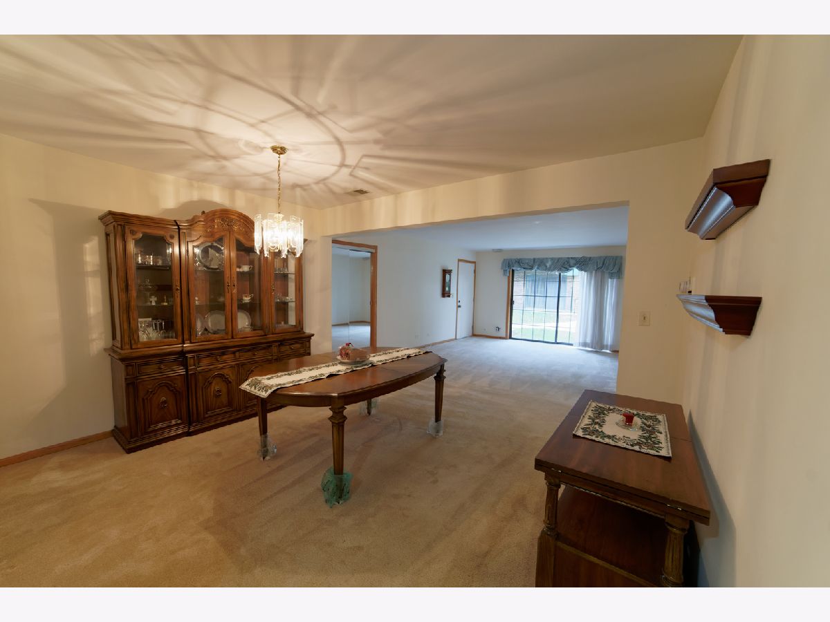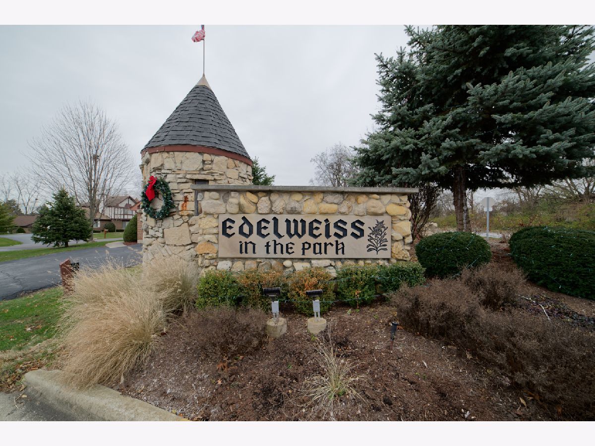 Highly sought after Edelweiss in the Park 1st floor, 2 bed 2 full bath condo! This one level living home is a front-facing end unit and features a spacious kitchen with plenty of cabinets & a breakfast area that looks out to a concrete patio. Entertain with the separate dining room (comes fully furnished!) and a large living room which overlooks a second patio. Main bedroom includes 2 closets (1 walk-in) and a private full bath. In-unit laundry room with large storage area. Direct access to the attached 2-car garage. Close to shops, hospital, Metra and access to hiking and bike trails through the forest preserves. Don't miss this opportunity!