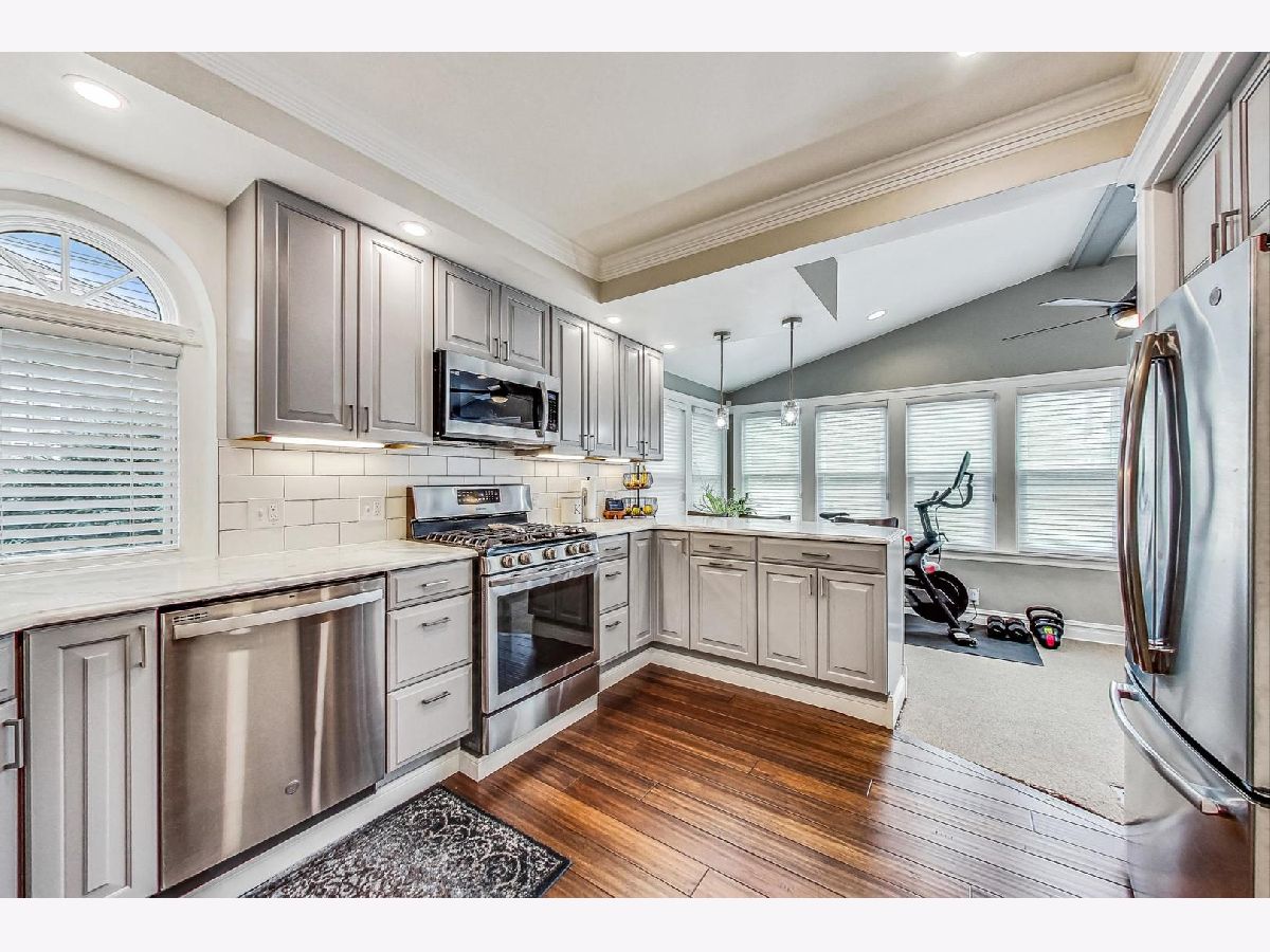 Gorgeous, completely updated 3 bedroom, 2 bathroom Oak Park stunner! Located on a quiet, tree-line street in the Arts District, this meticulously maintained home features recently updated kitchen & bathrooms, spacious living & dining, vaulted ceiling sunroom, finished basement and a 3 car garage! Enjoy grilling or quiet evenings outdoors on the new deck space located just off of the sunroom. Finished basement is perfect for a movie room & home office, and has plenty of storage space. Along with the updates, this home has new appliances, newer mechanicals & windows, and a newer 30-year glass shingle roof. Easy access to the expressway, restaurants, shops and all Oak Park has to offer. Nothing to do but move in. WELCOME HOME!