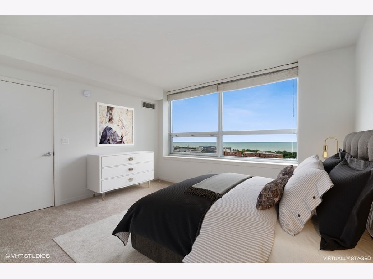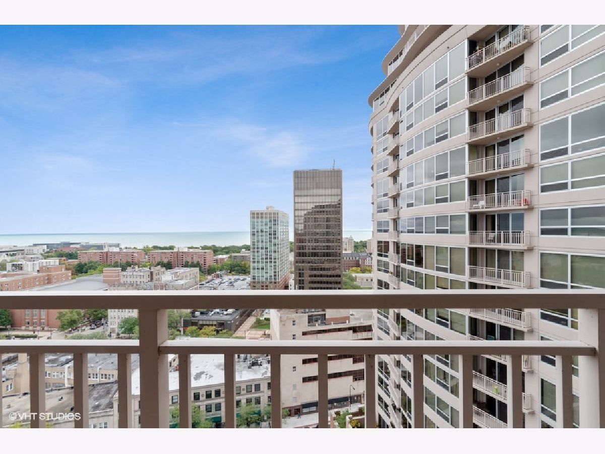 Welcome home! Experience the beautiful Lake views from your move-in ready 1 Bedroom PLUS DEN condo at desirable Sherman Plaza. This eastern facing condo offers an open floor plan with a combined Living/Dining area plus a large Breakfast bar. The Kitchen is finished in wood cabinets, granite counter tops, and stainless steel appliances. The Master Bedroom can house a King sized bed, and has a huge walk-in closet. The Den can flex as a guest bedroom with it's double doors for privacy. The large bathroom has a tub/shower combo. The stackable in-unit washer-dryer complete the package. 1 garage parking space and an on-site storage unit are also included. Come home to the Premier Condo Residence in downtown Evanston! Full amenity building, 24-hour doorperson, expert, on-site Property Manager, Engineer & Maintenance staff. Fitness Room, Hospitality Room and Landscaped Terrace are all on the 3rd floor and are part of the lifestyle here. Interior access to Target is a bonus!