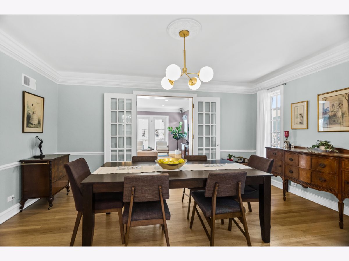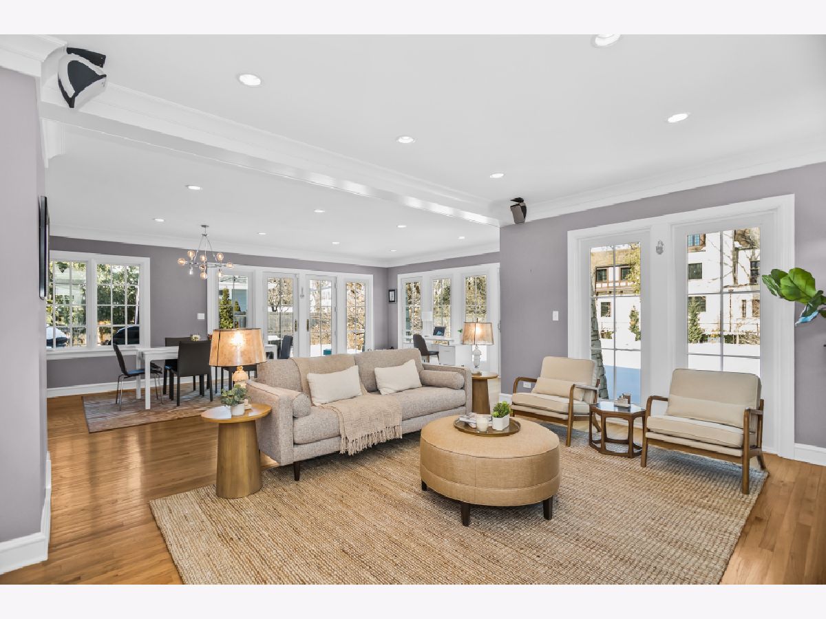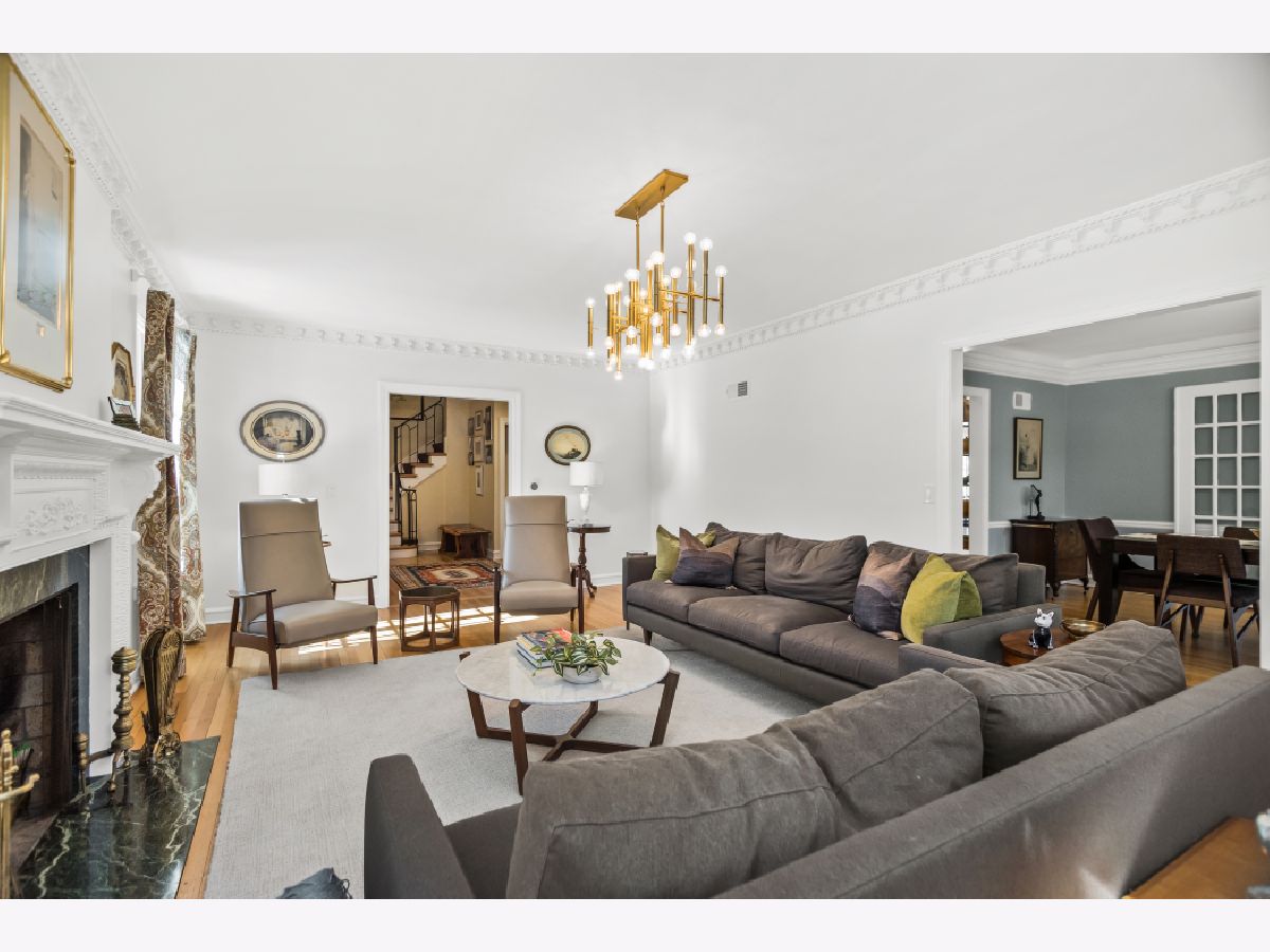 Enjoy lake breezes from this beautiful and meticulously updated home, situated on Roslyn Terrace, just a few homes west of the lake. Boasting 6 bedrooms and 4.2 baths, this residence seamlessly blends timeless charm with modern luxury amenities. The grand foyer, featuring intricate marble inlays, sets the tone for a gracious entry. The expansive living room, with original trim, stunning plaster crown molding, and a stately wood-burning fireplace, flows seamlessly into the formal dining room, creating a perfect space for gatherings. The recently renovated Chef's kitchen by DeGiulio Design is a dream come true, with custom walnut cabinetry, high-end appliances including a 48" Viking range with two ovens, Sub-Zero refrigerator, two additional Sub-Zero refrigerator drawers, Bosch dishwasher, a large island with seating for four, and a second prep island. The large and sun-filled adjoining family room overlooks the beautifully landscaped grounds, making it perfect for hosting friends and family. A charming, updated powder room, along with access to the attached garage, completes the main level. Upstairs, the primary suite offers sweeping views of the property and features a spa-like bath with dual sinks, a soaking tub, and a separate shower. The walk-in closet is fully built out with customized shelving. Five spacious additional bedrooms and three well-appointed baths complete the second floor, along with a laundry closet featuring commercial-grade Speed Queen machines. The lower level is complete with an inviting rec room showcasing beautifully restored original wood beams, a gas fireplace, a wet bar area, and a large gaming area -- a dream for relaxing or entertaining. Don't miss the gorgeous half bath, complete with a fun dog spa. Outside, the oversized patio is ideal for grilling and dining al fresco, surrounded by beautifully landscaped lush greenery. In addition to its proximity to Lake Michigan, the home offers easy access to Metra and Purple Line. The house is graced with a gorgeous DaVinci roof, boasts a state-of-the-art flood control system, and has many additional updates. This is a must see home in one of NE Evanston's most sought-after locations, east of Sheridan Road.
