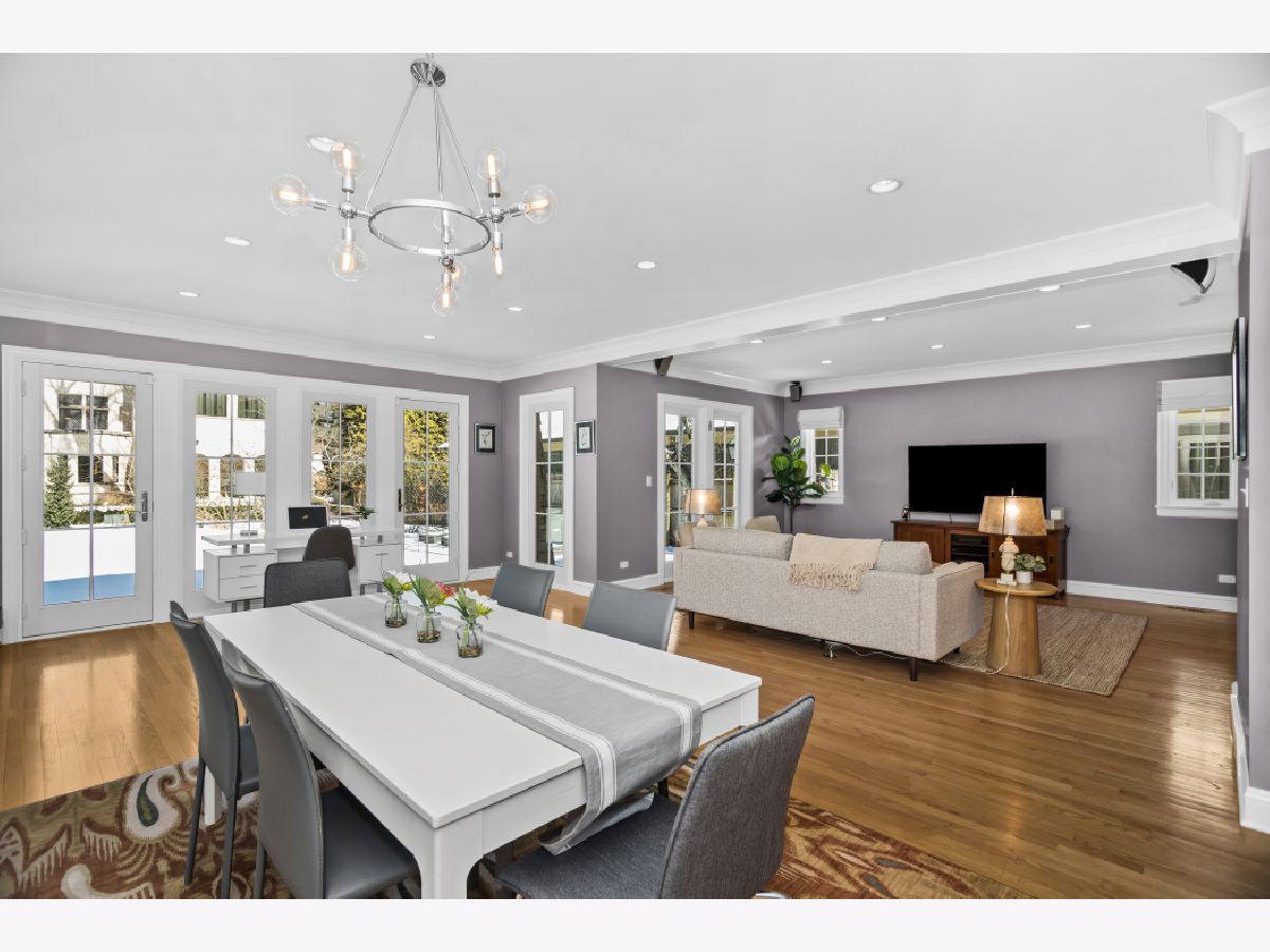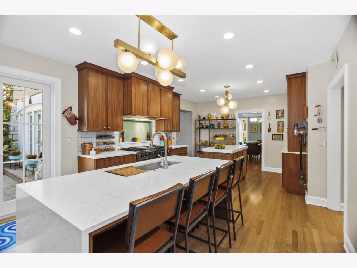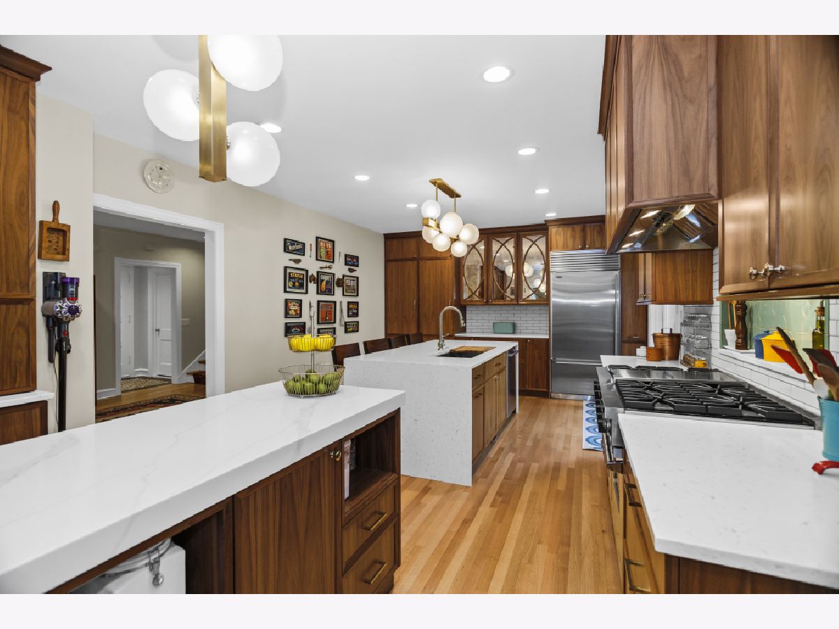 Enjoy lake breezes from this beautiful and meticulously updated home, situated on Roslyn Terrace, just a few homes west of the lake. Boasting 6 bedrooms and 4.2 baths, this residence seamlessly blends timeless charm with modern luxury amenities. The grand foyer, featuring intricate marble inlays, sets the tone for a gracious entry. The expansive living room, with original trim, stunning plaster crown molding, and a stately wood-burning fireplace, flows seamlessly into the formal dining room, creating a perfect space for gatherings. The recently renovated Chef's kitchen by DeGiulio Design is a dream come true, with custom walnut cabinetry, high-end appliances including a 48" Viking range with two ovens, Sub-Zero refrigerator, two additional Sub-Zero refrigerator drawers, Bosch dishwasher, a large island with seating for four, and a second prep island. The large and sun-filled adjoining family room overlooks the beautifully landscaped grounds, making it perfect for hosting friends and family. A charming, updated powder room, along with access to the attached garage, completes the main level. Upstairs, the primary suite offers sweeping views of the property and features a spa-like bath with dual sinks, a soaking tub, and a separate shower. The walk-in closet is fully built out with customized shelving. Five spacious additional bedrooms and three well-appointed baths complete the second floor, along with a laundry closet featuring commercial-grade Speed Queen machines. The lower level is complete with an inviting rec room showcasing beautifully restored original wood beams, a gas fireplace, a wet bar area, and a large gaming area -- a dream for relaxing or entertaining. Don't miss the gorgeous half bath, complete with a fun dog spa. Outside, the oversized patio is ideal for grilling and dining al fresco, surrounded by beautifully landscaped lush greenery. In addition to its proximity to Lake Michigan, the home offers easy access to Metra and Purple Line. The house is graced with a gorgeous DaVinci roof, boasts a state-of-the-art flood control system, and has many additional updates. This is a must see home in one of NE Evanston's most sought-after locations, east of Sheridan Road.