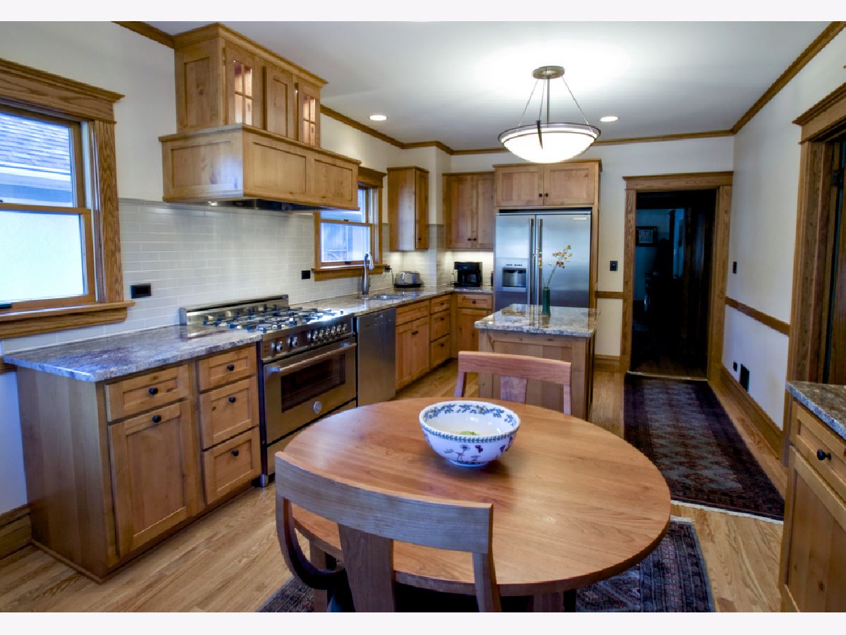 Come visit this charming 1913 craftsman bungalow with classic details and a beautifully updated kitchen--the perfect combination! Wonderful natural light enhances this home's interior featuring unpainted woodwork, art glass, hardwood floors, and a chef's kitchen built by Oak Park's Von Dreele-Freeksen Construction. The eat-in kitchen's maple cabinets and granite countertops exude warmth and character, and the high-end appliances, including Bertazzoni 5-burner range, Electrolux refrigerator, and Miele dishwasher, call to the avid cook. All of the finished living spaces are on the main floor, but the high and dry unfinished basement offers huge potential for expansion. Outside you will find a front porch with room to enjoy a beverage and greet neighbors as they pass. Many lovely plantings and a paver patio fill the back yard. The one car garage is aging, but there is a convenient spot to add a parking pad if needed. This cozy home is minutes from the Blue line, I-294, parks, schools, and the Harrison Arts District. The home is well-cared for, but is being sold AS IS. Don't miss this opportunity!