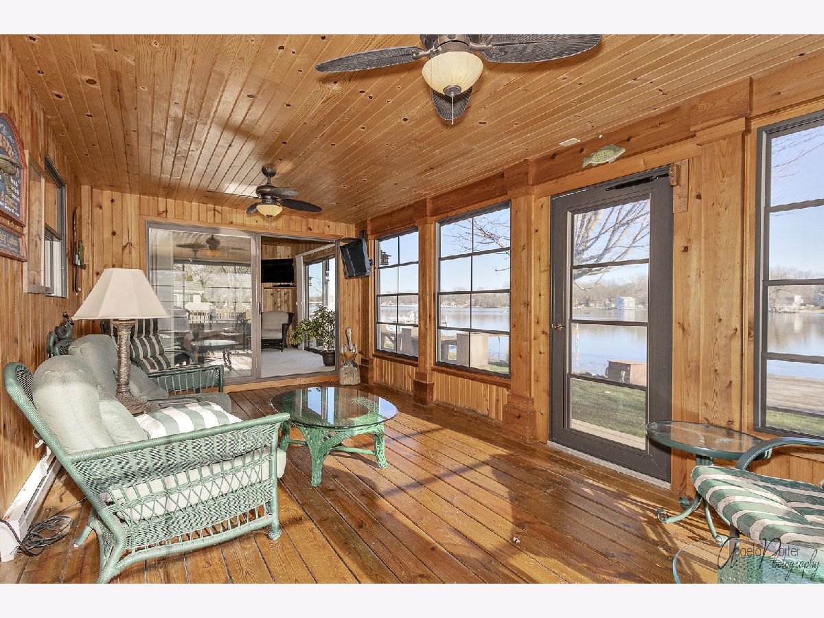 One of the best locations on the Fox River. Stunning waterfront home in great condition with 60 ft of water frontage including sand beach & pier. NOT in floodplain. Nice quite neighborhood with waterfront park close by. Amazing views from most rooms. Relaxing sun room featuring vaulted ceilings, knotty pine paneling & recessed lighting opening to 3 season room and deck. Inviting foyer opens into dining area. The custom kitchen featuring 42" cabinets, Corian counters & new stainless appliances is perfectly located allowing this home a great floor plan perfect for day to day living and entertaining. Spacious family room with cozy fireplace opening to sun room. First floor also features a full bath. Wow, amazing 23x 19 master bedroom with walk-in closet and sliders to large balcony overlooking the river. There are three additional spacious bedroom and 2 full baths upstairs too! 4th bedroom currently used as office. Many upgrades and updates throughout. New roof. New furnace and A/C unit. Oak trim pkg throughout. This spectacular waterfront home has been well maintained and is ready for you to start waterfront living on the Chain O' Lakes!