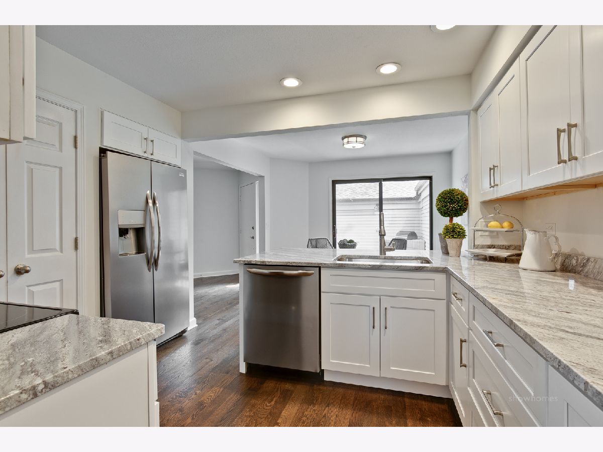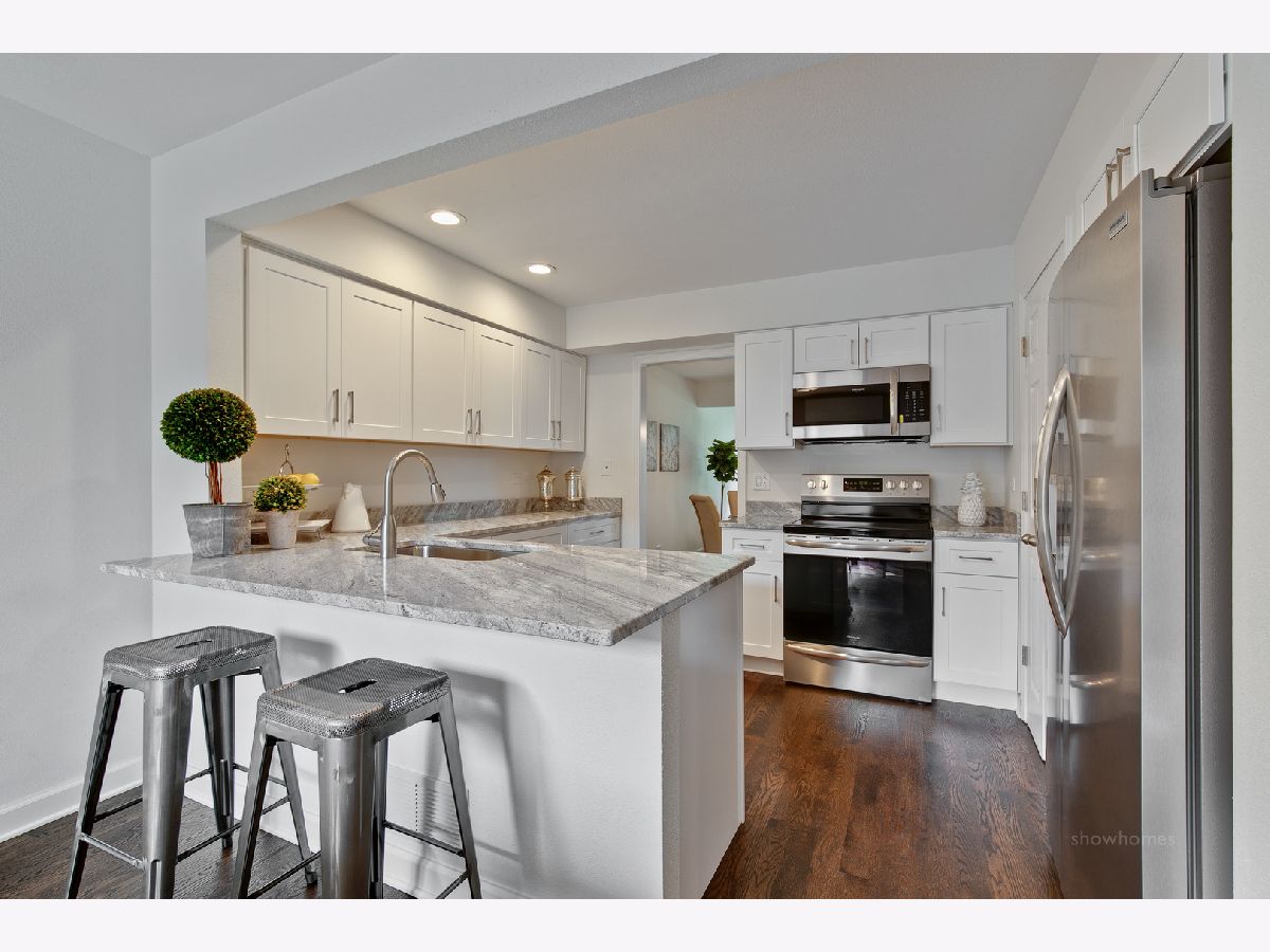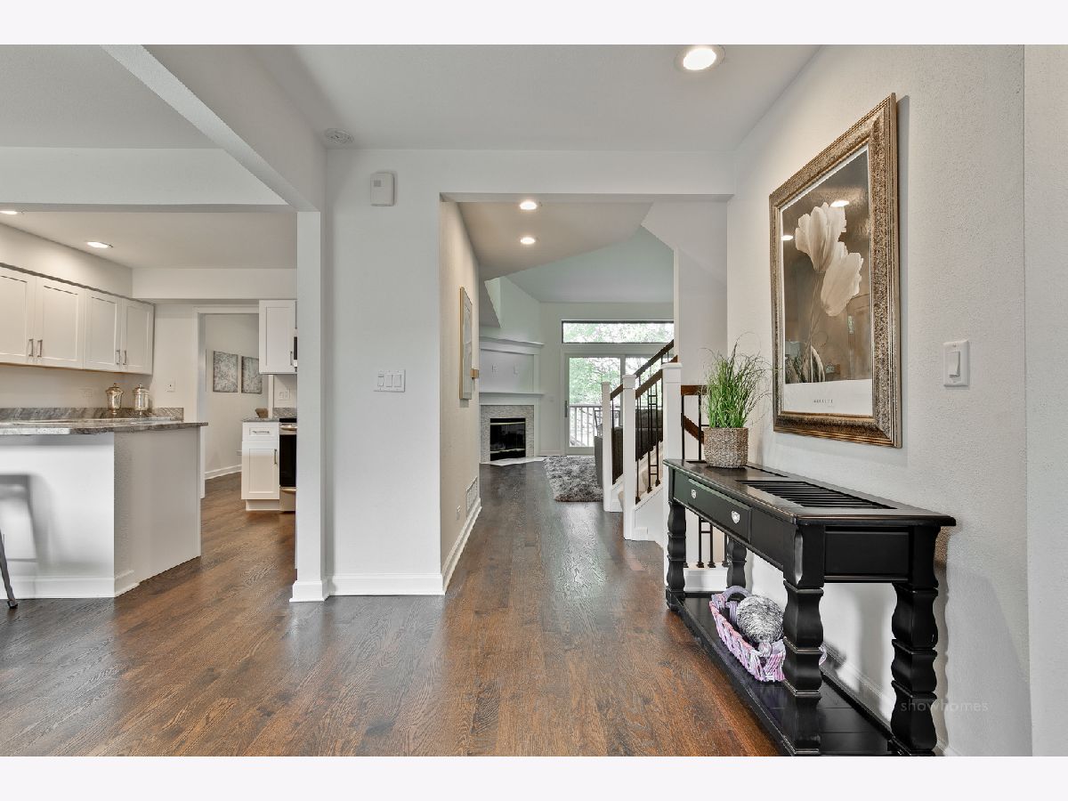 Sophistication, style & class...this completely renovated townhome will be YOUR destination! Gorgeous dark hardwood floors, art deco lighting, gorgeous stone counters and tile, brushed nickel hardware, white Shaker cabinets, wood & iron prairie-style staircase...it's all here. Private brick courtyard entry with grilling station and planter. Huge eat-in kitchen features white Shaker cabinets, double door pantry, oversized sink with gooseneck spray faucet, stainless appliances, exotic granite counters, recessed lights and glass doors to courtyard. Spacious main level offers study/den, dining room, two-story great room AND sunroom with 5 windows overlooking course. Stacked stone fireplace with flush stone hearth, mantel and millwork surround. Glass doors to elevated deck and stairs to yard with lush plantings and mature trees. Skylight in second floor hallway. Opulent master suite with white Shaker double vanity with polished stone top, framed mirrors, art deco lighting, horizontal marble floor tile, oversized shower with marble herringbone base and subway tile surround plus big walk-in closet. Generous bedrooms with double door closets. Rustic horizontal stone tile floor and tub surround, halogen lighting and granite vanity top in snazzy hall bath. Up-to-the-minute English lower level with stacked stone and vertical barn board surround fireplace, high quality wood plank-look flooring, cool bar with corrugated steel face, fridge & microwave, cove lighting in coffered ceilings, half bath with marble flooring, guest suite with jetted tub and retro faucet and well-lit laundry with huge closet. Two-car garage with private entry. Lake Barrington Shores offers lake access, walking paths, tennis courts, platform tennis, new rec center, indoor and outdoor pools, exercise facilities, activities for all and membership opportunities for golf. Buyer pays application fee and three months' surcharge. Electric (ComEd) is approximately $175/month.