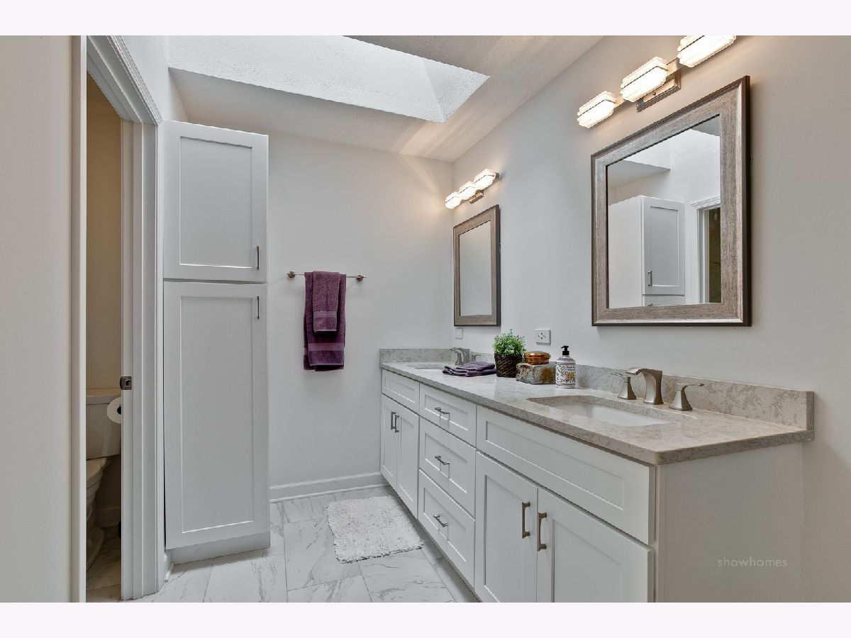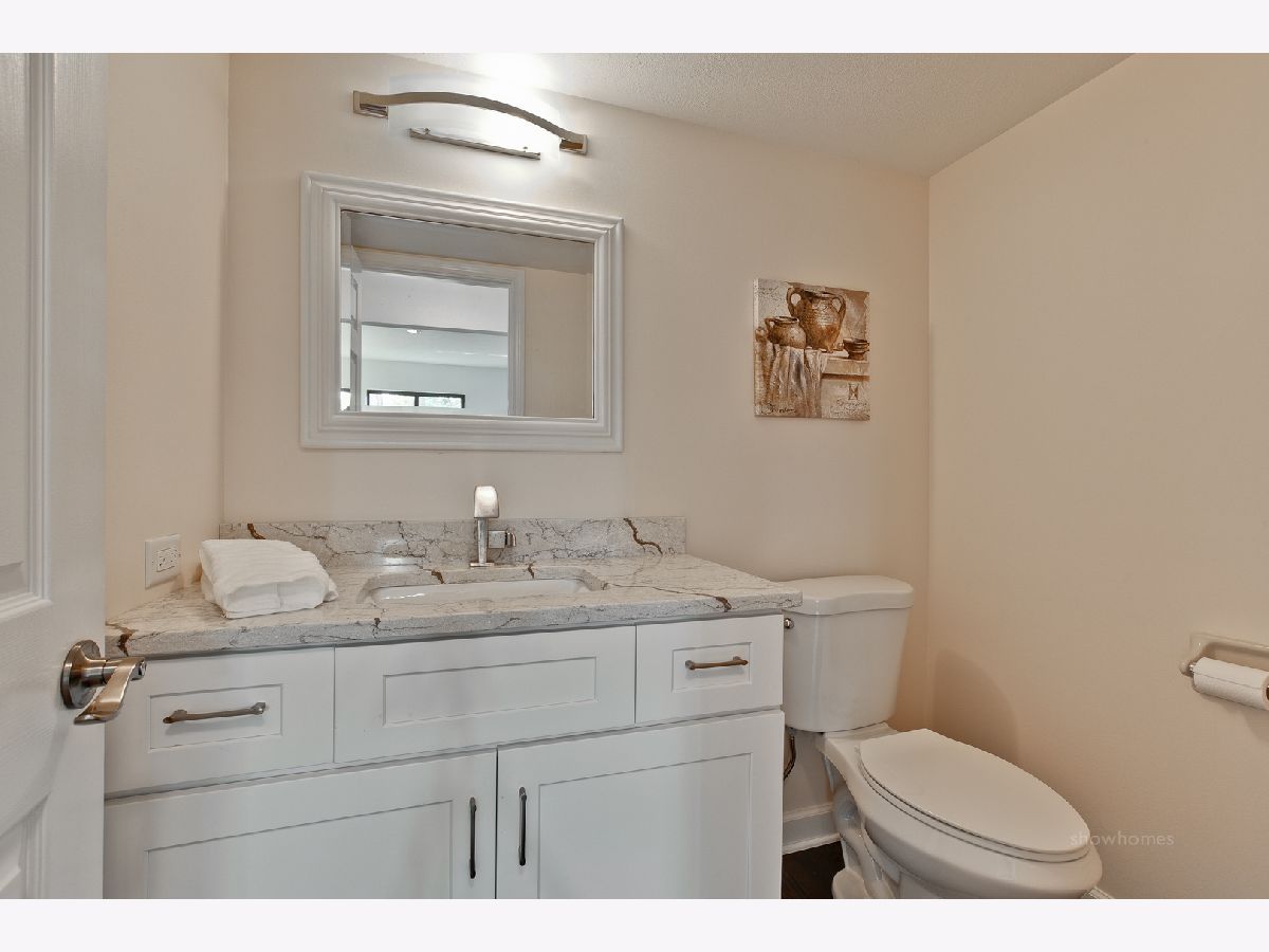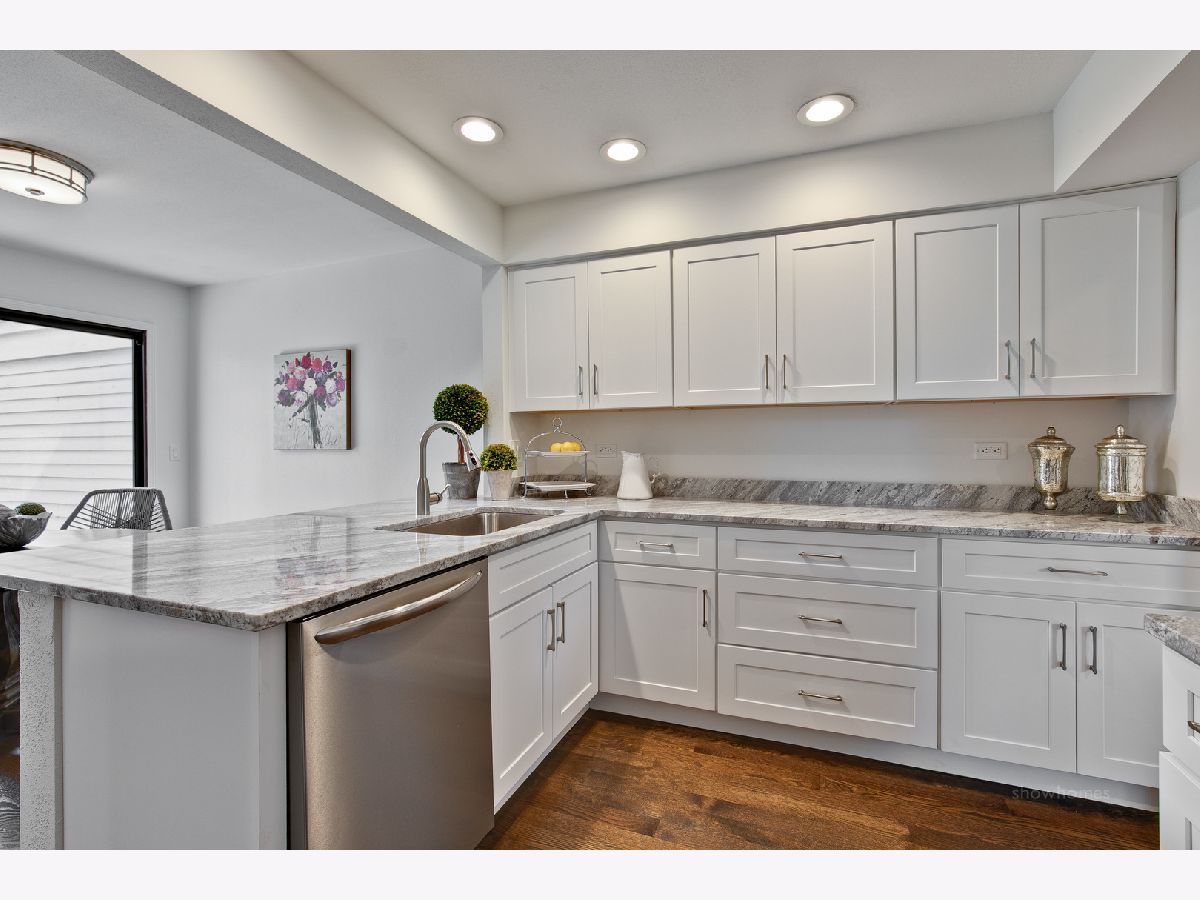 Sophistication, style & class...this completely renovated townhome will be YOUR destination! Gorgeous dark hardwood floors, art deco lighting, gorgeous stone counters and tile, brushed nickel hardware, white Shaker cabinets, wood & iron prairie-style staircase...it's all here. Private brick courtyard entry with grilling station and planter. Huge eat-in kitchen features white Shaker cabinets, double door pantry, oversized sink with gooseneck spray faucet, stainless appliances, exotic granite counters, recessed lights and glass doors to courtyard. Spacious main level offers study/den, dining room, two-story great room AND sunroom with 5 windows overlooking course. Stacked stone fireplace with flush stone hearth, mantel and millwork surround. Glass doors to elevated deck and stairs to yard with lush plantings and mature trees. Skylight in second floor hallway. Opulent master suite with white Shaker double vanity with polished stone top, framed mirrors, art deco lighting, horizontal marble floor tile, oversized shower with marble herringbone base and subway tile surround plus big walk-in closet. Generous bedrooms with double door closets. Rustic horizontal stone tile floor and tub surround, halogen lighting and granite vanity top in snazzy hall bath. Up-to-the-minute English lower level with stacked stone and vertical barn board surround fireplace, high quality wood plank-look flooring, cool bar with corrugated steel face, fridge & microwave, cove lighting in coffered ceilings, half bath with marble flooring, guest suite with jetted tub and retro faucet and well-lit laundry with huge closet. Two-car garage with private entry. Lake Barrington Shores offers lake access, walking paths, tennis courts, platform tennis, new rec center, indoor and outdoor pools, exercise facilities, activities for all and membership opportunities for golf. Buyer pays application fee and three months' surcharge. Electric (ComEd) is approximately $175/month.