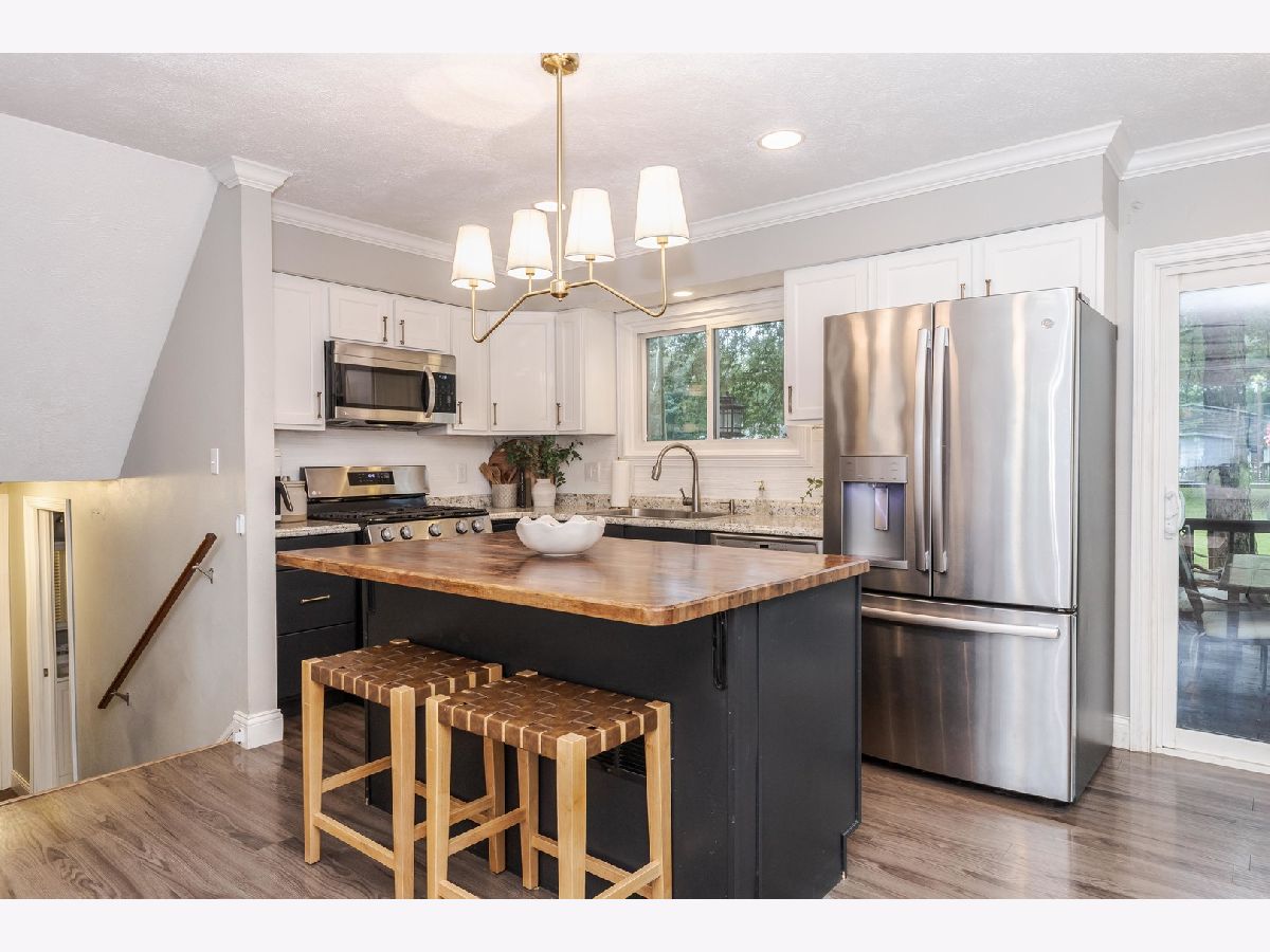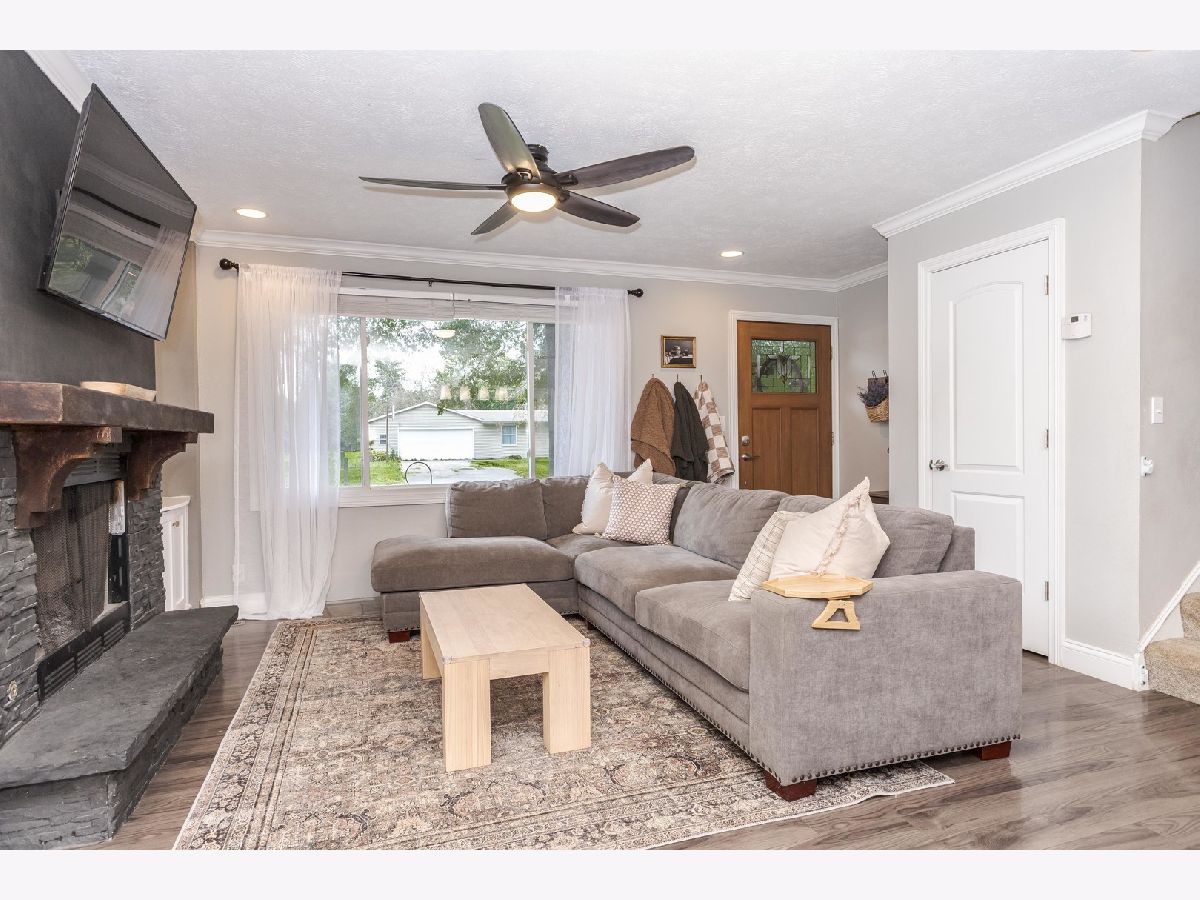 Beautifully updated tri level home on roughly a 1/2 acre wooded lot in the award wining Tri-Valley school district. Open and functional floor plan. Spacious white kitchen with stainless steel appliances, butcher block island with seating, and dining area. Open family room with beautiful stone fireplace and custom built in cabinet surround. Laminate wood flooring and crown molding throughout the main level. Three bedrooms up with one full bathroom. Large family room in the lower level with tile flooring and tons of natural light, second full bathroom and large laundry/mud room. Private oversized fenced in back yard with large deck and patio area. Oversized 2 car heated garage and storage shed with additional loft storage. Conveniently located on a private dead end street and just 6 miles outside of Bloomington Normal. Recent updates include but not limited to: Updated light fixtures throughout the home 2024, Oven and microwave 2024, white cabinets, fireplace built in surround 2024, tile flooring 2022, heated garage, ceiling fans added in all rooms, fire pit 2024, sump pump and sewer ejection pumps 2019, furnace 2011. *Information deemed reliable but not guaranteed.* Some dates were taken from previous listing and believe to be accurate but not guaranteed.