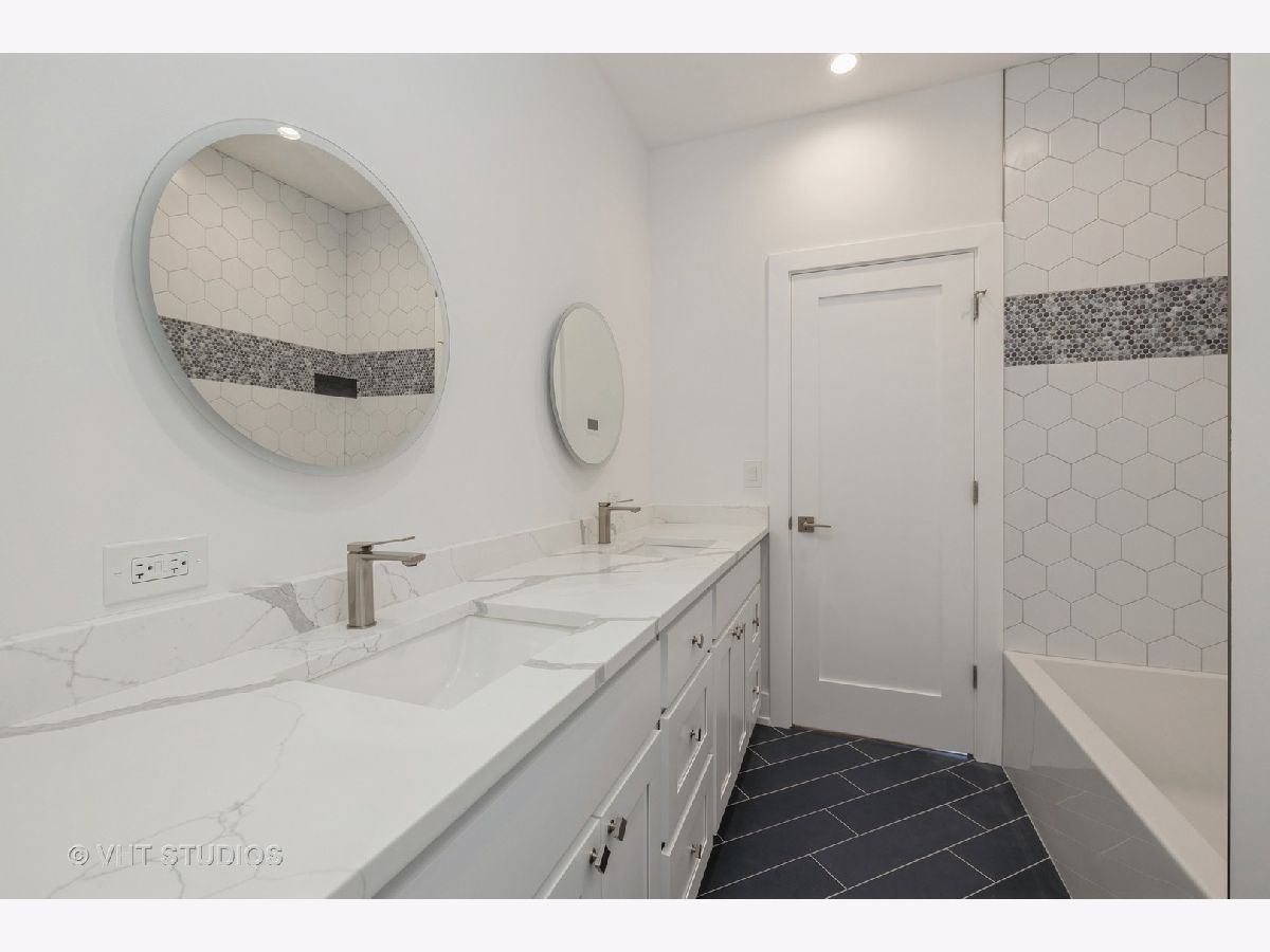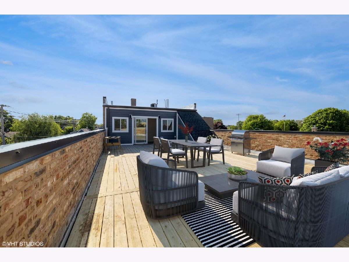 Welcome to Forest Park living, where the best of city vibes meets the cozy suburbs. You're about to discover the talk of the town - a four-level corner home that's been given a total makeover, filled with top-notch finishes that are absolutely gorgeous. This place is like no other in Forest Park. Picture a thoughtfully designed floor plan featuring 3 to 4 bedrooms, 3.5 bathrooms, and... hold onto your hats... a whopping 500+ square foot rooftop deck with a direct view of the Chicago skyline! And the location? It's spot on - right next to the park, pool, tennis courts, and a health club. Plus, it's an easy stroll to the train, award-winning restaurants, and shopping galore. You're looking at a home that's got space for days and is absolutely perfect for throwing awesome get-togethers. LEVEL 1 welcomes you with an open concept setup that includes a living room, dining room, a sleek and modern kitchen, and beautiful hardwood floors. The living room sets the scene with big windows that flood the place with natural light. The dining room? It's ready for your big gatherings. The kitchen? It's a chef's dream with a massive island, top-notch stainless steel appliances, stylish cabinets with loads of storage, and designer touches. There's even a pantry closet, a front hall closet, and a handy half bath. LEVEL 2 is where you'll find the three main bedrooms and two bathrooms. The primary bedroom can easily fit a king-size bed and boasts an ensuite bathroom with a giant shower, tub, a double sink vanity, and fancy designer finishes. The other two bedrooms have spacious closets and share a full bathroom with a tub and shower. Hardwood floors throughout, and don't forget to check out those elegant 8-foot doors! LEVEL 3 is where the magic happens. The top level of this home is an enclosed entertainment room with huge windows. It's your spot to kick back with a book, catch up on TV, or sip cocktails. There's even a kitchenette/bar area with a beverage fridge, sink, and plenty of storage, so you don't have to run downstairs for anything. And from this room, step out onto your very own PRIVATE ROOFTOP PATIO (over 500 square feet) with incredible views of downtown Chicago. Picture yourself enjoying warm summer nights or taking in the fall colors among the treetops. It's like a year-round vacation! GROUND LEVEL is a multi-purpose space (with heated floors) that can be a family room, a bedroom, a full bathroom with a walk-in shower, a laundry room, and a roomy storage closet. It's perfect for a home office, a guest room, an in-law suite, or a teenager's hangout. You've got two parking spaces (one enclosed, one exterior) and a fenced patio area. Other cool features include high-end appliances, efficient HVAC systems, a tankless hot water system, a mudroom, and more. Get ready for the ultimate Forest Park experience - this is suburban living with a city flair!