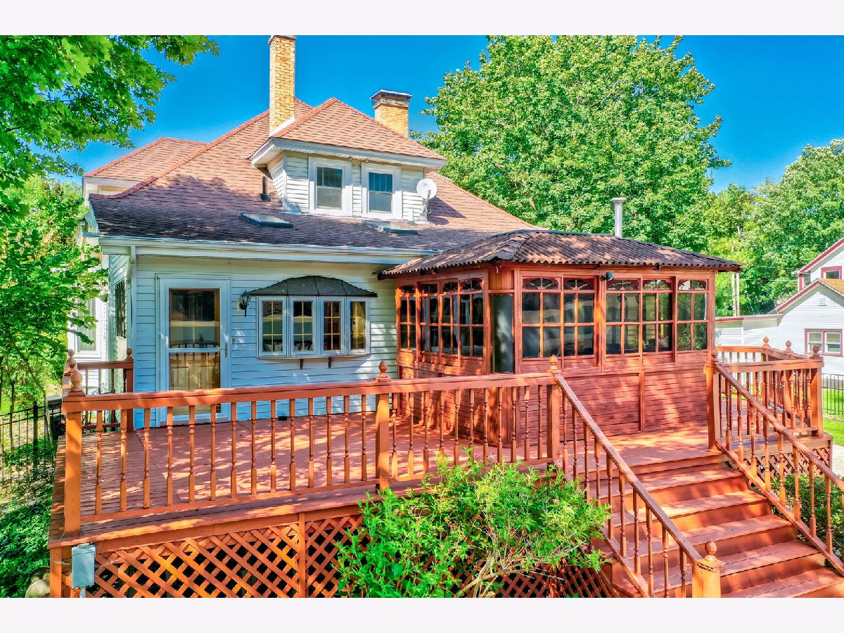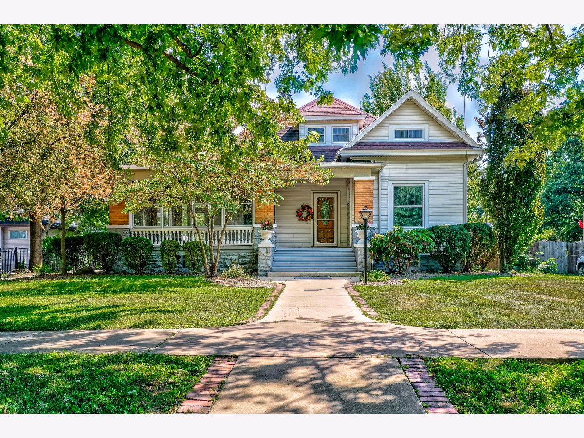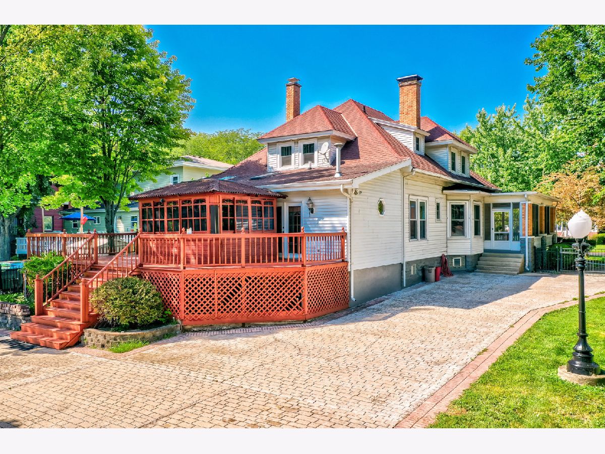 Nestled just blocks away from Ottawa's vibrant downtown and a stone's throw from the Illinois River, this enchanting residence captures the essence of turn-of-the-century charm. Featuring 4 bedrooms and 3.5 bathrooms, this home welcomes you with its front porch and wraparound screened-in porch, extending a warm greeting to residents and visitors alike. Step inside to discover an inviting open foyer adorned with exquisite wood trim and elegant hardwood flooring, leading to a versatile music room or home office space. The formal living room, opposite the foyer, beckons you further into the home and transitions seamlessly into the sophisticated family room, complete with a wood-burning fireplace. The formal dining room is a visual delight, featuring hand-painted murals and a coffered ceiling with rustic beams. The updated and well-appointed kitchen showcases maple cabinetry, Corian countertops, an island, built-in buffet, pantry, along with eating space with access to a secluded wooden deck. A main area bathroom is perfect for guests and entertaining and rounds out the main level. Throughout the home, the timeless appeal of natural woodwork harmonizes with leaded glass and built-in features. The main floor primary suite offers a tranquil escape, featuring a gas fireplace and glass doors leading to a private gazebo and deck with a hot tub. The suite further indulges with an oversized double shower, skylight, and classic clawfoot soaking bathtub. Upstairs, three additional bedrooms and a full guest bathroom provide ample space for family and guests. Two bonus spaces offer storage or potential walk-in closets, complemented by a second stairway. The lower level accommodates practical spaces including a laundry room, spacious recreation or family room, bonus/craft room, second kitchen, and additional bathroom. Situated on two lots, the property boasts a remarkable 5-car detached garage with loft storage, accessed via a stamped concrete driveway and fenced in yard with a remote controlled gate. This exceptional home combines historic charm with modern comforts, offering a truly unique living experience.