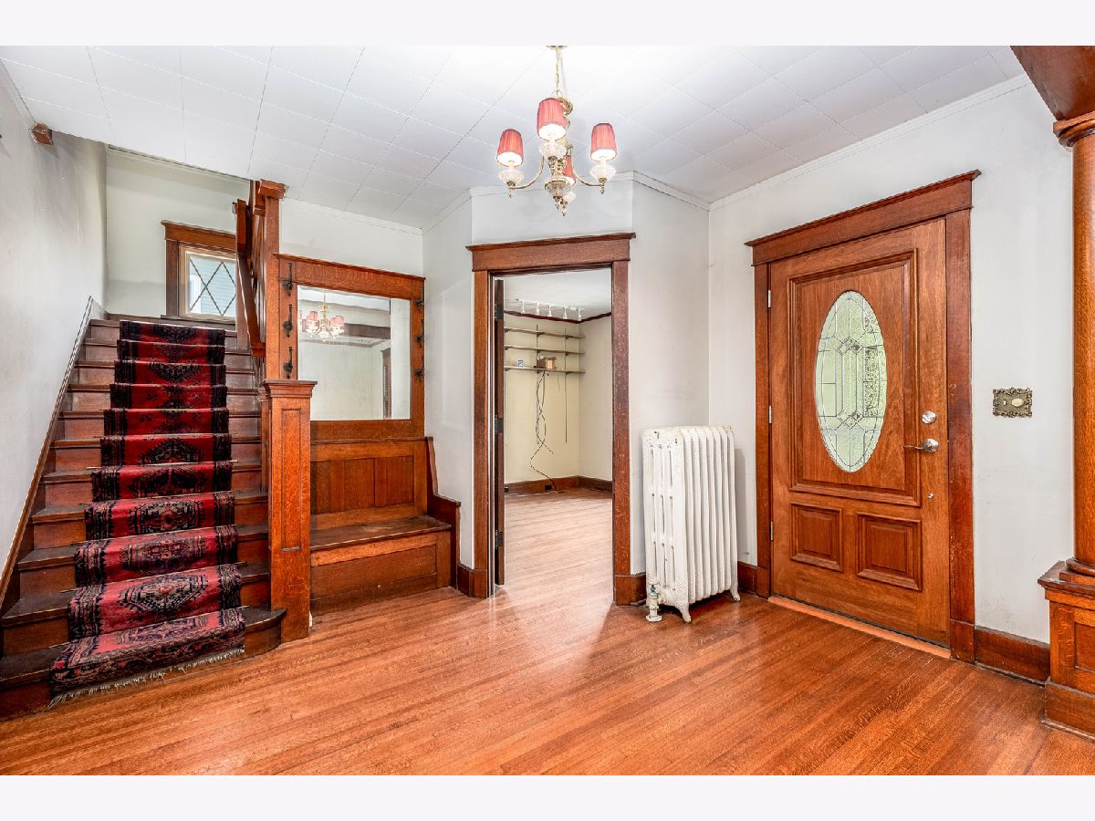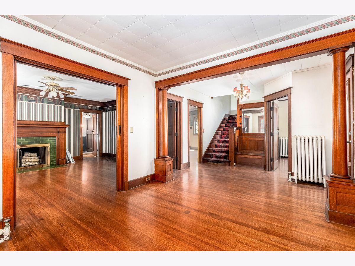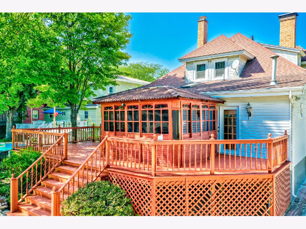Nestled just blocks away from Ottawa's vibrant downtown and a stone's throw from the Illinois River, this enchanting residence captures the essence of turn-of-the-century charm. Featuring 4 bedrooms and 3.5 bathrooms, this home welcomes you with its front porch and wraparound screened-in porch, extending a warm greeting to residents and visitors alike. Step inside to discover an inviting open foyer adorned with exquisite wood trim and elegant hardwood flooring, leading to a versatile music room or home office space. The formal living room, opposite the foyer, beckons you further into the home and transitions seamlessly into the sophisticated family room, complete with a wood-burning fireplace. The formal dining room is a visual delight, featuring hand-painted murals and a coffered ceiling with rustic beams. The updated and well-appointed kitchen showcases maple cabinetry, Corian countertops, an island, built-in buffet, pantry, along with eating space with access to a secluded wooden deck. A main area bathroom is perfect for guests and entertaining and rounds out the main level. Throughout the home, the timeless appeal of natural woodwork harmonizes with leaded glass and built-in features. The main floor primary suite offers a tranquil escape, featuring a gas fireplace and glass doors leading to a private gazebo and deck with a hot tub. The suite further indulges with an oversized double shower, skylight, and classic clawfoot soaking bathtub. Upstairs, three additional bedrooms and a full guest bathroom provide ample space for family and guests. Two bonus spaces offer storage or potential walk-in closets, complemented by a second stairway. The lower level accommodates practical spaces including a laundry room, spacious recreation or family room, bonus/craft room, second kitchen, and additional bathroom. Situated on two lots, the property boasts a remarkable 5-car detached garage with loft storage, accessed via a stamped concrete driveway and fenced in yard with a remote controlled gate. This exceptional home combines historic charm with modern comforts, offering a truly unique living experience.