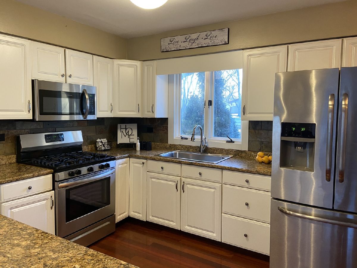 2,300 +sq.ft. Ranch on a half acre corner lot in Sleepy Hollow. New 50 year roof in 2020 w/ a 10 -year transferable warranty. A 2 car attached garage with new springs. 3-bedrooms, 2.5-bathrooms and a double sided, wood burning fireplace to enjoy in the living room and the kitchen. There's a Large family room with a full wet bar and another gas burning fireplace. Large dining room , with new contemporary light fixture. White kitchen cabinets with newer SS appliances, granite counters and a beautiful backsplash. Brazilian Cherry Hardwood Floors. New light fixtures and paint throughout main level. Property is heated using hot water baseboard heat. Also there is a 2nd hot water heater used for floor radiant heat in master bedroom. The master bedroom has vaulted ceilings, skylights and features a master bathroom with a jacuzzi and rain shower head, also a half bath. There is a home warranty that is transferable and good until July.
