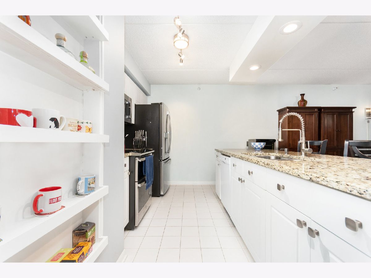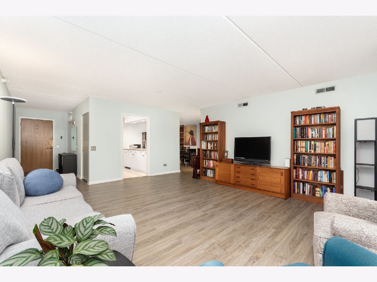 Welcome home! Light and bright 6th floor unit with updates throughout. Unit features include all white kitchen with stainless steel appliances, open concept layout and large living spaces. The unit features 2 bedrooms and 2 bathrooms. Large living room, updated bathrooms, dining room with fireplace and custom built ins. Radiant heating keeps utility bills low and floors warm! The primary bedroom has an en-suite bathroom with plenty of closet space with room for a desk. Enjoy a private balcony with views of both lake and town. This unit comes with one heated parking space and a huge storage space! Convenient to Lake Michigan, the Main Street Metra Line to downtown and unlimited dining options in Evanston! Secure building and incredible location!