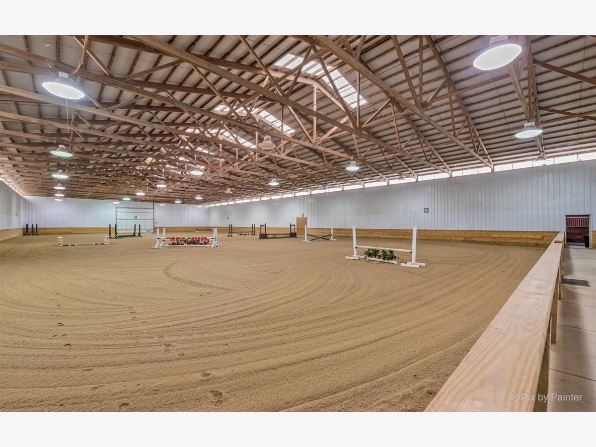 Exceptional 40ac Horse Farm in Beecher, IL--Ideal for Training or Boarding Facility. Renovated in 2017, it is almost like new again. BARN- 1999 FBI-built insulated stable has 40 (12x12) matted stalls & East aisle has water hydrants to each stall. 80x160 Indoor arena has 18' clearance, new footing & base, lights & ridge cap. 4 tack rooms with 36 private lockers, 3 grooming stalls, 1 private tack room, H/C wash rack, 2 feed rooms, 6 hydrants within barn. Fabulous viewing room with bar, 2 half-baths, heat/smoke detectors, 2 office areas. Laundry room has Washer/Dryer/sink. Generac back-up generator, 3 ton grain bin & outdoor wash rack. Outdoor arena is 180x280, 5 limestone dry lots (32x80), 12 grass paddocks (50x115), 100x200 pasture w/hotwire, 4 ac fenced w/run-in for pasture board. 25ac in hayfield--12 ac grass/alfalfa mix & 13 ac grass field. Hay barn for storage holds 3000 bales. HOME--4 bedrooms, 2 baths, 2 car garage & updated throughout. Former Farrier shop is 3121sf, 6" floor & has 2 storage rooms. This property would work for any discipline of riding. This property is income-producing and the home is now M2M, Horse facility is leased until 5/2026 and the barn lease can be renegotiated with the new buyer. Current trainer would like to stay & continue training/lesson program. Zoned Ag. Property is not available to lease at this time. Showings are by appointment only--qualified buyers please.
