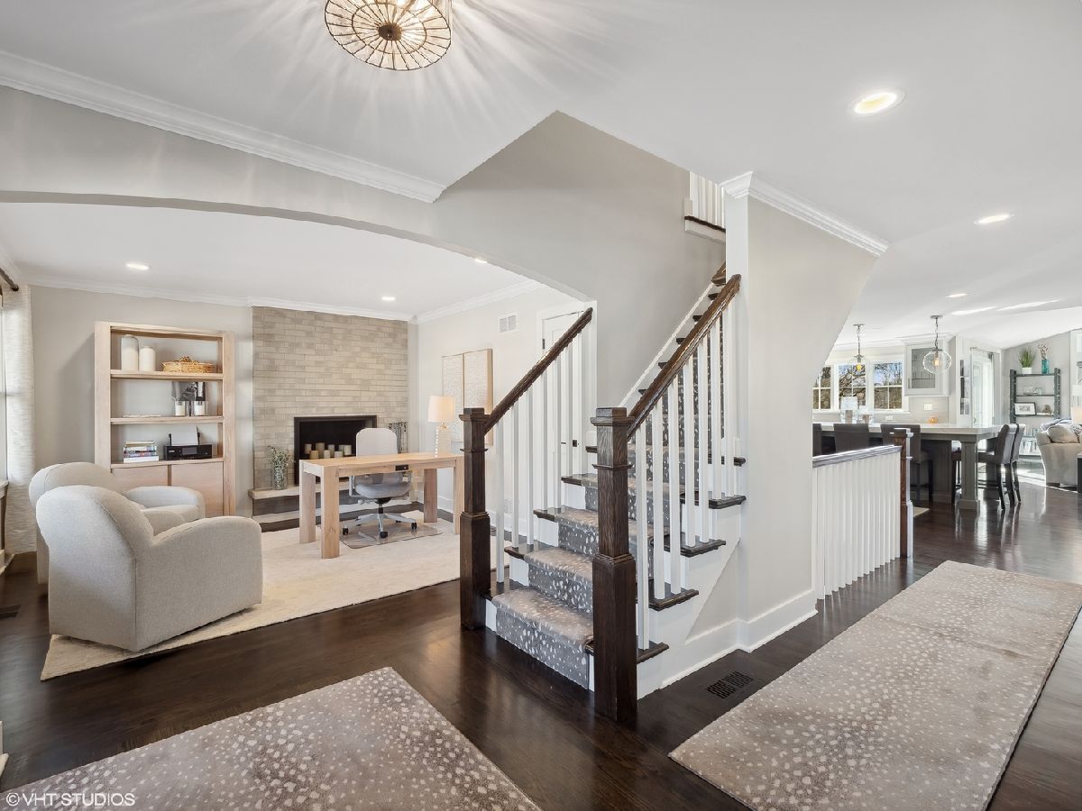 Welcome to this exquisitely designed 4-bedroom, 3.5 bath home nestled in one of the most desirable neighborhoods in Arlington Heights. A short walk to Pioneer Park, sought after schools and a few blocks from the community's vibrant downtown -this central location is simply ideal. This stunning home flows effortlessly from one space to the next. Each room has been thoughtfully constructed to blend form with function and features high-end finishings throughout. 811 George is simply the most tastefully designed and beautifully built home on the market! Approaching the home, visitors are greeted by beautifully designed hardscape and stone work that adorns the front entrance. A sprawling open-concept layout seamlessly connects the massive chef's kitchen to the rest of the main level, making it truly the center of the home. This is what dreams are made of. The enormous island is capped with thick white quartz and offers ample seating for several guests or extensive meal prep. Top of the line appliances, custom cabinetry and beautiful fixtures are accentuated by abundant natural light that floods in from all directions. The butler's pantry blends luxury and convenience, offering ample storage and serving space while also providing a trophy case of select spirits. The adjoining family room boasts vaulted ceilings, massive windows and a gorgeous fireplace to create the perfect option for Super Bowl parties or cozy family movie nights. Working from home is an appealing option with the first-floor office, complete with its own fireplace. A gorgeous three-season room, located just off the kitchen offers a third fireplace experience. With voluminous ceilings and spectacular wood decor, this beautifully designed sunroom provides a tranquil retreat to unwind and enjoy panoramic views of the yard. Last but not least, the main level includes a generously sized mudroom with large custom cubbies for coats, shoes, and outdoor gear. Journey upstairs and enjoy two master suites, each meticulously designed to provide the ultimate in comfort and privacy. The primary ensuite includes heated floors, a double vanity, and spacious shower creating a true spa-experience. The third upstairs full bathroom is not only beautiful but practical as a Jack and Jill option. The convenient and spacious upstairs laundry is ideal and adds thoughtful functionality, making chores a breeze. The property's exterior is meticulously designed and boasts a beautiful back patio overlooking a parklike setting. Summer vibes are enhanced by a professionally landscaped yard complete with a built-in sprinkler system, ensuring that your outdoor space remains lush and vibrant year-round. Don't miss the opportunity to make this beautiful Arlington Heights residence your own. Welcome Home!