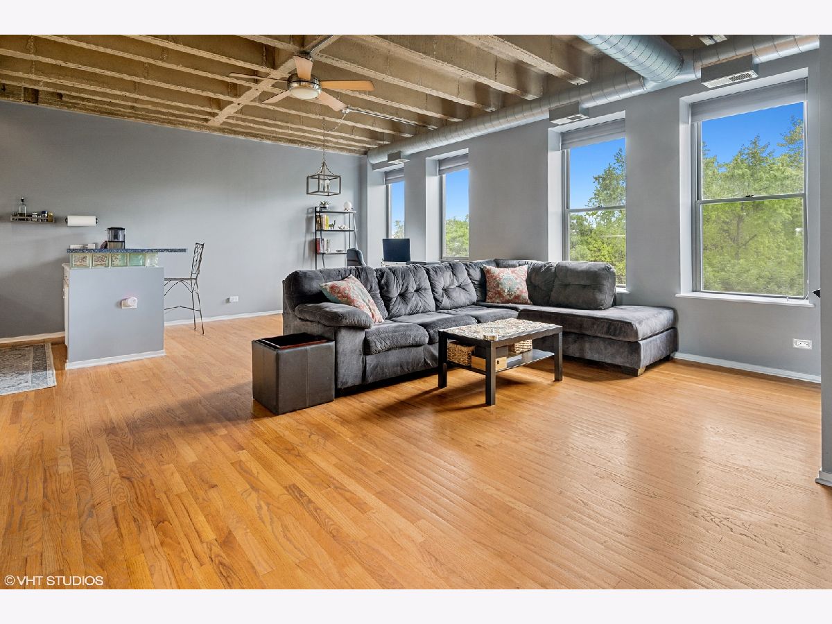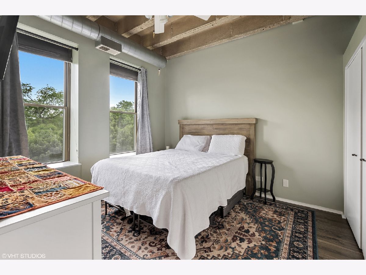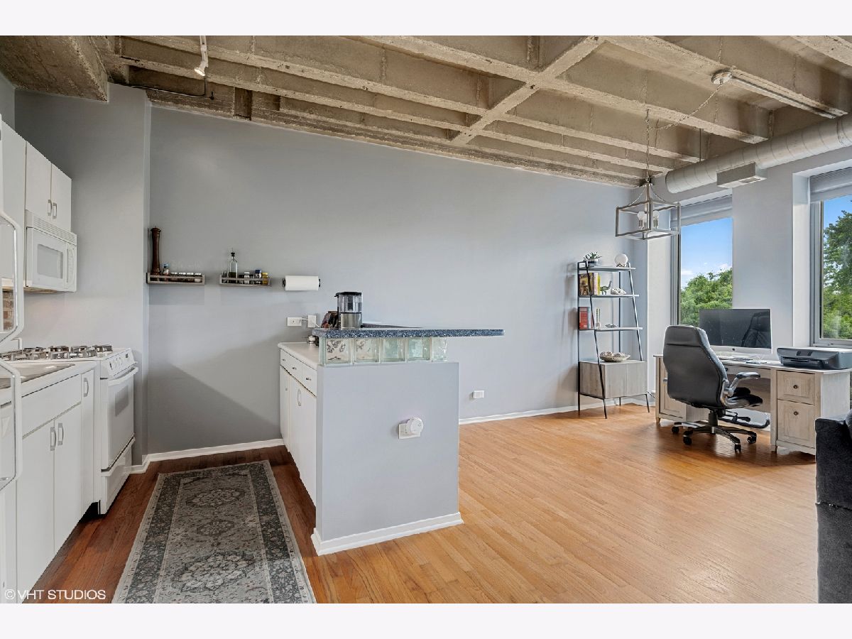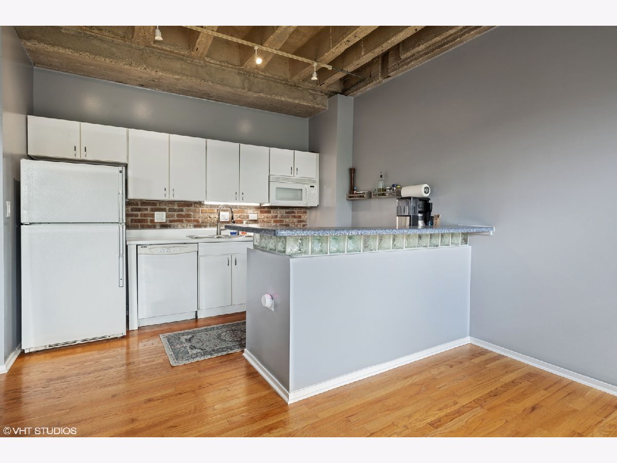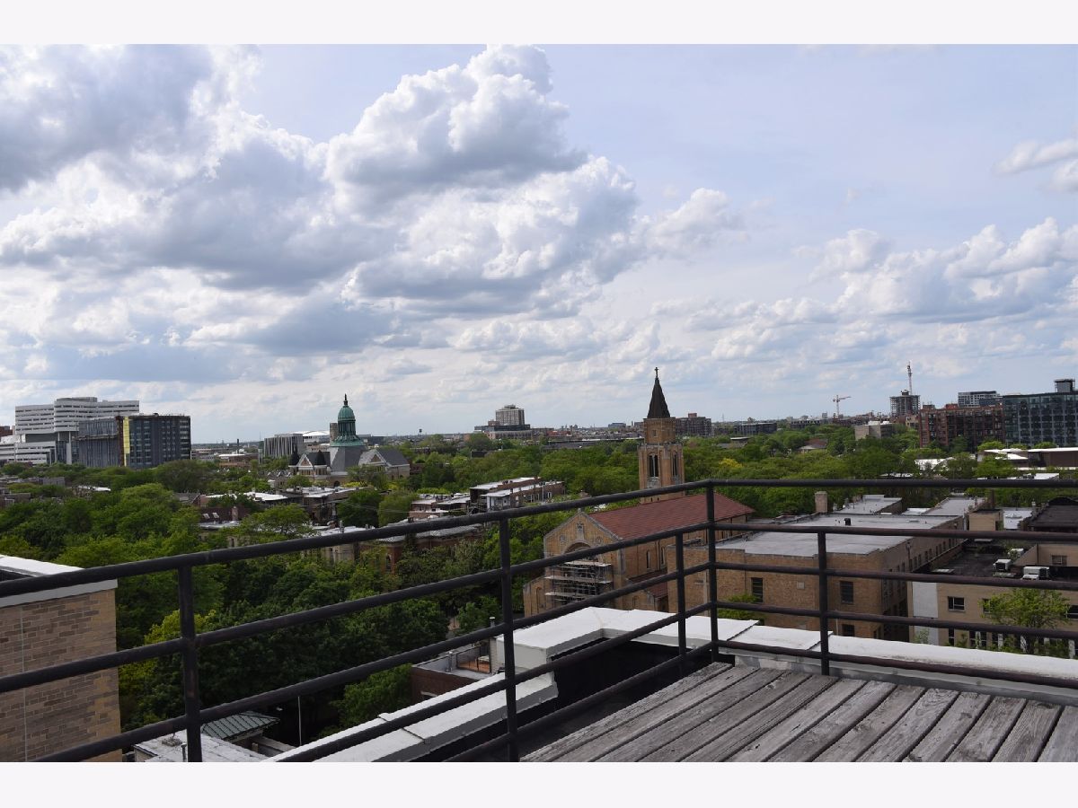 Lofted ceilings, freshly painted throughout and new window treatments (2021)! BEAUTIFUL Bathroom gutted and rehabbed in 2019 - includes granite countertops on double vanity, recessed lighting in shower, with gorgeous custom tile inset storage and heated flooring! Hardwood floors in the kitchen, living room, and dining room. Bedroom flooring replaced in 2021 with gorgeous vinyl plank flooring. Open concept white kitchen with new garbage disposal (2019) & backsplash (2021). Kitchen opens to Living room with fireplace with tree-lined views overlooking the park. In-unit Washer/Dryer (2017). Amazing views of the Chicago skyline from the common area rooftop deck, storage locker, and exercise room. Assessment includes Cable TV & Internet Service, trash, & water. Professional management company, friendly doorman and on-site maintenance staff. Exterior, gated, deeded parking space #94. Convenient to parks, Blue & Pink EL line, Between UIC east & west campuses, IL Medical Center, Greek Town/Little Italy's Taylor St.