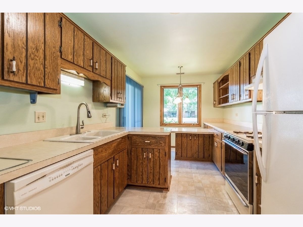 Great 1st floor condo in New Lenox is new to the market. This 1367 Sq. Ft. 2 bedrooms, 2 full bathrooms, 1 car garage with concrete patio will sell fast. There are 2 sliding glass doors that lead to the backyard concrete patio that overlooks a large open green space. The master suite bedroom has a nice walk-in closet and full bath with a walk-in shower. There is a really good sized living room, and with the combo dining room, it makes a fantastic gathering area. The galley kitchen has tons of cabinets/storage and could be opened up to the living/dining area for an awesome open concept space. The in unit laundry/mechanical room is separated for quiet use. The living room and kitchen sliding doors lead to the patio that has mature trees and a beautiful large grass area. Being sold "as is".