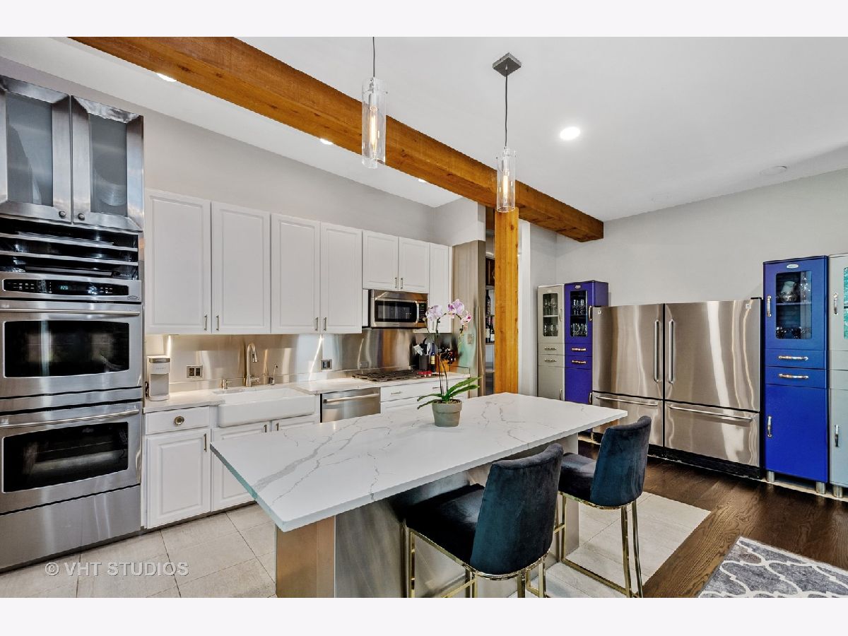 Incredible duplex up penthouse in Lincoln Park Landmark building! Largest unit in building with perfect floorpan for entertaining and four outdoor spaces. Beautiful living room with woodburning fireplace and southern exposure. Spacious eat-in kitchen has breakfast bar/island, pantry, double oven, Wolf gas cook top & double refrigerator. Great space for a large dining table or seating area off kitchen. Good sized bedrooms upstairs including primary bedroom retreat which feels like a 5 star hotel with separate shower and tub, double sinks and water closet. Step out to private rooftop terrace from primary bedroom. Second and third bedrooms are light filled with southern exposure, perfect for guests or work from home. Four outdoor spaces - 2 private and 2 common. Gorgeous hardwood floors throughout, in-unit washer/dryer, high ceilings, updated bathrooms, exposed brick, garage parking. Don't miss this special property that checks all of your boxes! Perfect walkable location near- Oz Park, restaurants, shops, train, grocery, etc.