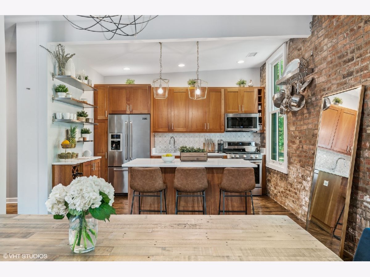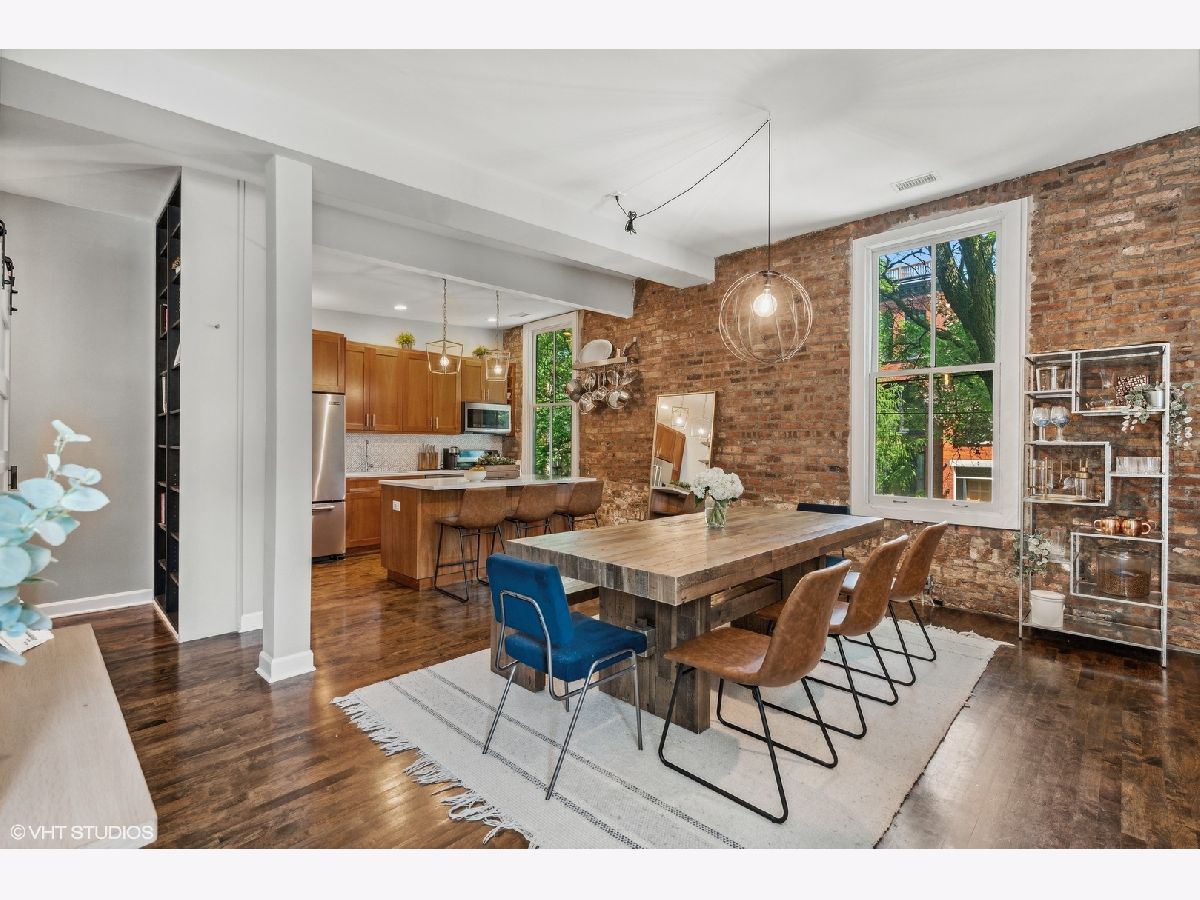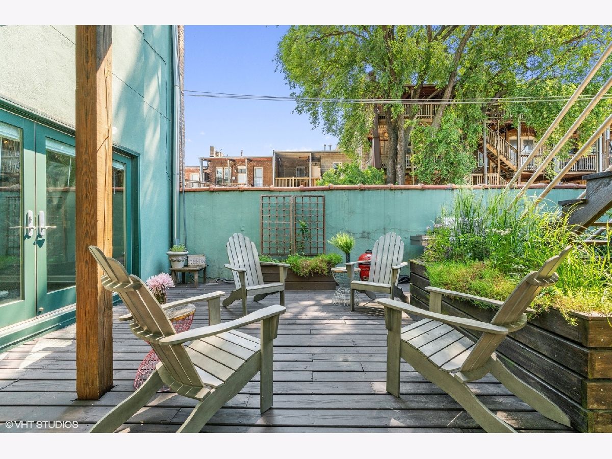 Welcome to this charming urban oasis nestled in the heart of Lincoln Park, right next to Oz Park! This beautifully appointed 2-bed/2.5-bath duplex-up offers a unique blend of modern elegance and classic architectural details, providing the perfect backdrop for a comfortable and sophisticated lifestyle. Upon entering the unit through your private entrance, you'll be greeted by a bright and open living room complete with a gas fireplace and large windows/doors that open out onto a cozy deck. The space flows into the updated kitchen featuring sleek quartz countertops, stainless steel appliances, a large island, chic backsplash, and a dining area for all your culinary needs. Exposed brick walls and hardwood flooring throughout add to the warmth and charm. Make your way upstairs to two spacious bedrooms with beautifully updated bathrooms. The primary is a tranquil retreat, complete with a private outdoor terrace, generous closet space, a renovated gas fireplace, and an updated bath tastefully designed with contemporary fixtures, a spa-like rain shower, dual sink vanity, and a soaking tub. Within walking distance, you'll find a diverse selection of trendy shops, upscale restaurants, and vibrant entertainment venues along Halsted and Armitage Ave. Enjoy a leisurely stroll through nearby Lincoln Park or take advantage of the proximity to the lakefront for outdoor activities. Garage parking included. PLUS 3 TERRACES AND ROOF RIGHTS! Furnace replaced in 2022.