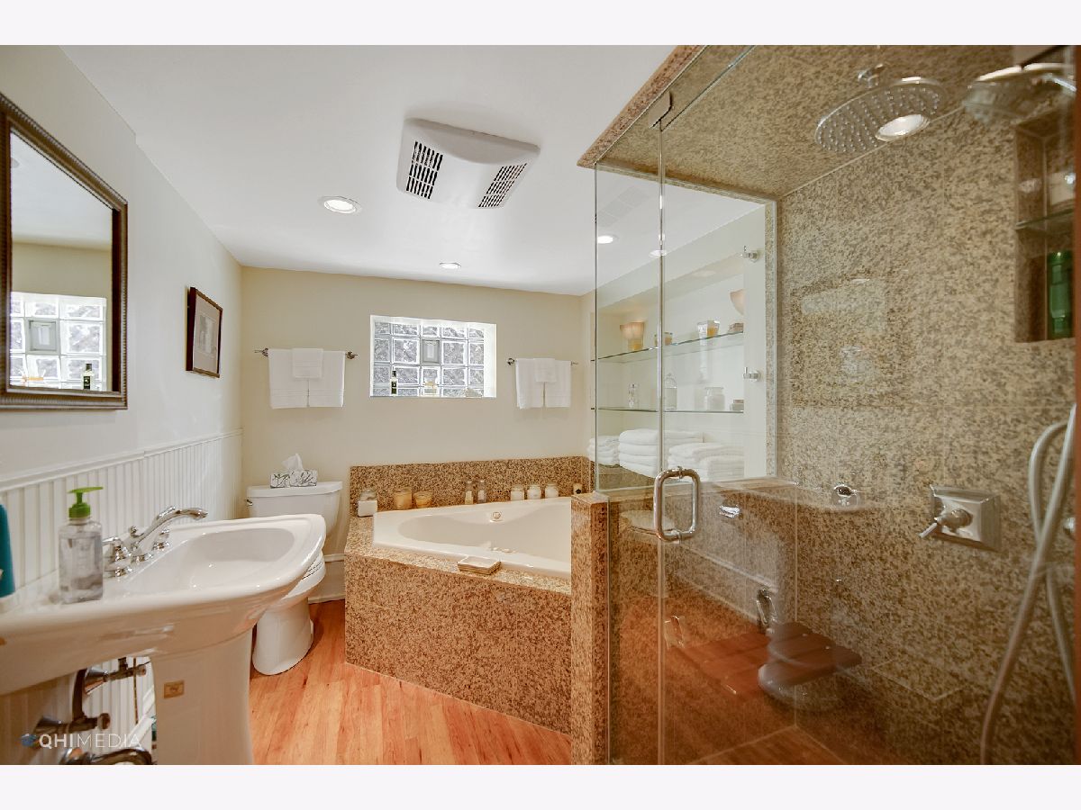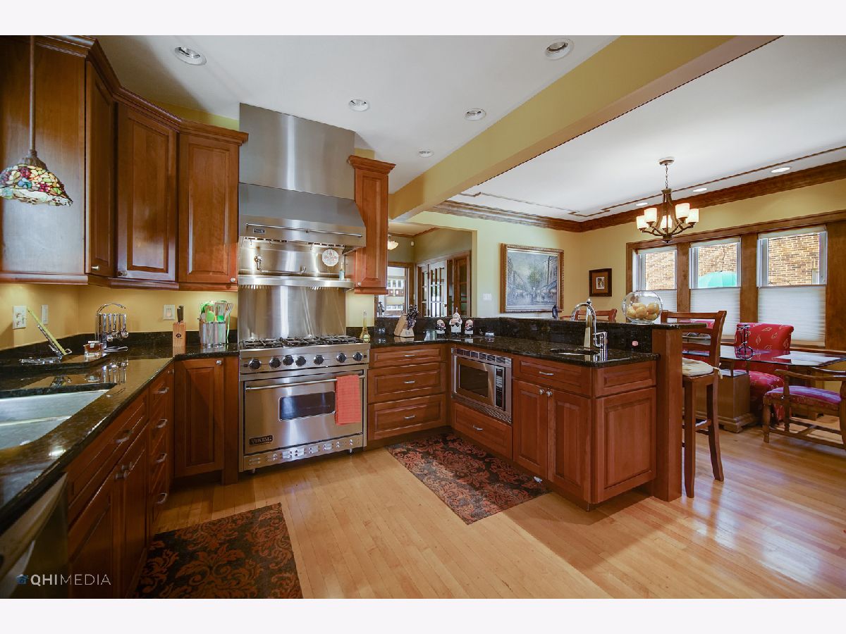 A gem in the Chatham Community, this 1922 over sized Georgian offers a side entrance with a beautiful foyer and theater style stair lights. The home has front and rear upper decks off the master and guest bedrooms. All woodwork is original with a mix of oak and maple floors, birch doors and moldings. The chief's kitchen includes: 42 inch cherry cabinets, granite counter tops, Viking stove and refrigerator, Fisher/Paykel double drawer dish washer, Prep sink, pot filler, floor level built in microwave and under cabinet lighting. The mud room is located off the kitchen. The home has 2 Jacuzzi tubs. The lower level bath is a spa complete with a granite surround two seat Jacuzzi tub and walk in steam shower. The two and half car garage offers surplus storage space. Professional landscaping/lighting. This Georgian won the Chicago Association of Realtors "Good Neighbor Award" and was featured on an episode of HGTV's Generation Renovation.