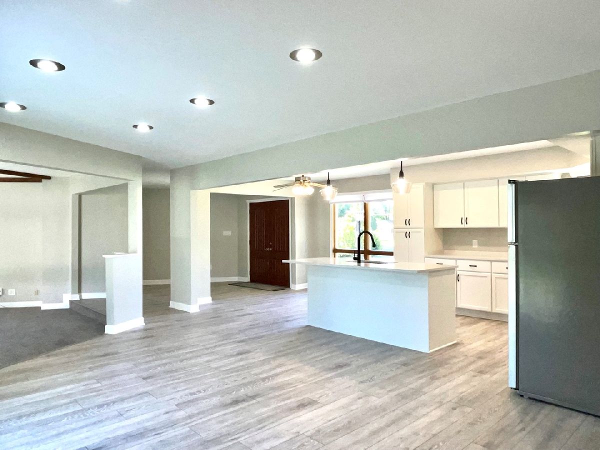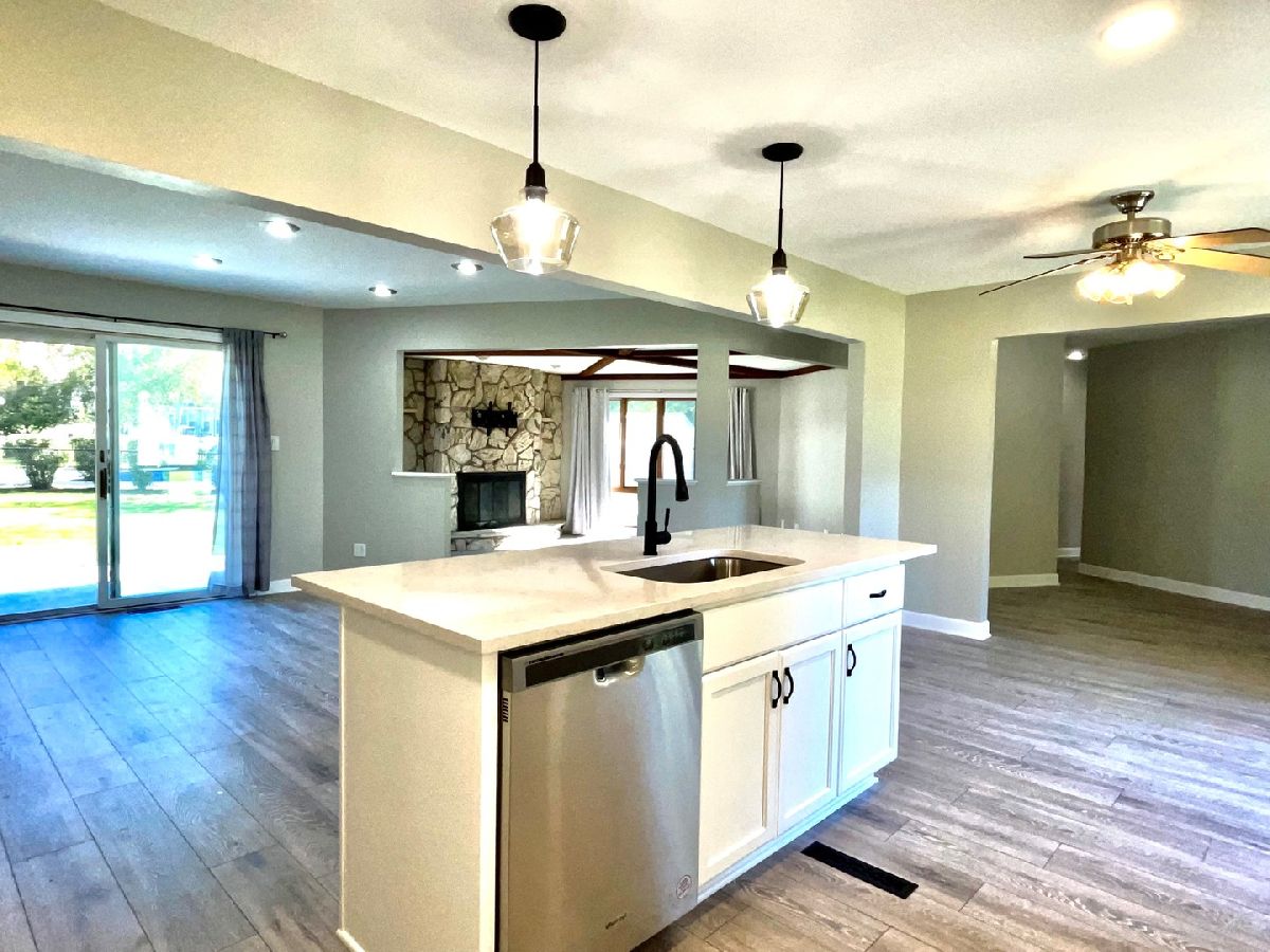 Live the downtown lifestyle here! Amazing location on Green Street and close proximity to EVERYTHING! Schools, restaurants, bars, movie theater, golf course, McHenry Riverwalk, and more. Open floor plan with remodeled kitchen with solid wood cabinets, quartz countertops, new appliances... 2 fully remodeled bathrooms with wood look tile and matte black finishings. New carpet & flooring in family, living & kitchen/dining areas. New 6 panel doors throughout. Upgraded/new electrical panel, main level laundry. Fully fenced yard, new concrete patio in back and front steps & walkway in front. Welcome to your dream home!