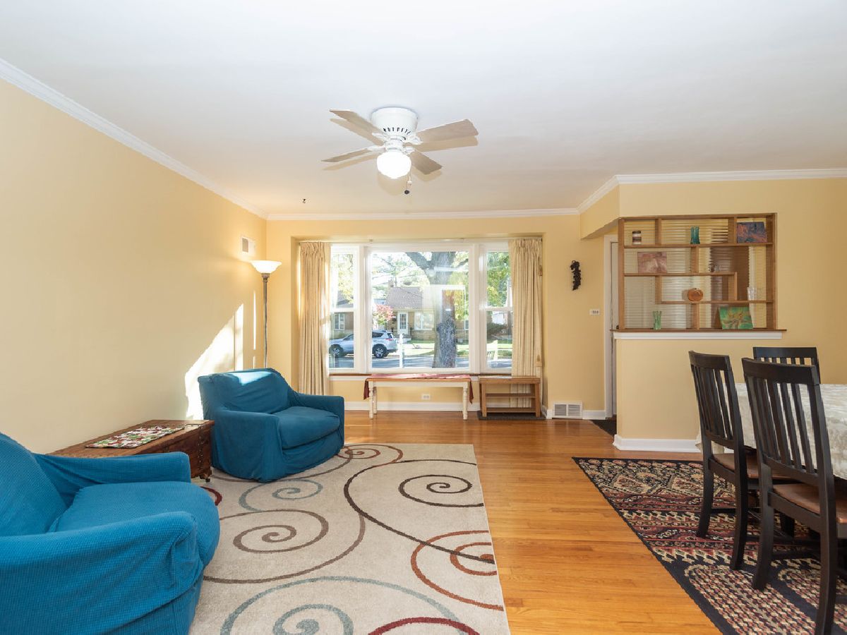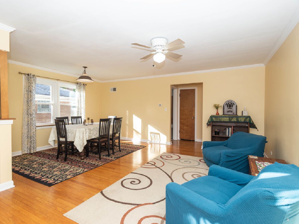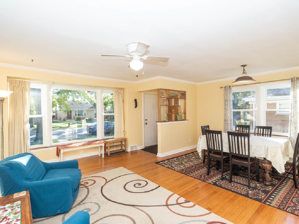 Bright and sunny ranch home in a great location close to Skokie Swift and downtown Skokie. Perfect starter or empty nester home with an open living dining room, large picture window, hardwood floors, spacious yard and a garage. Enclosed porch with new ceramic tile floor overlooking the backyard. The finished basement features a family room/office area and two extra rooms that can be used as bedrooms, offices or storage. There is a separate shower as well as a half bath in the basement. Newer roof and windows. Portable air-conditioner included. Excellent school system.