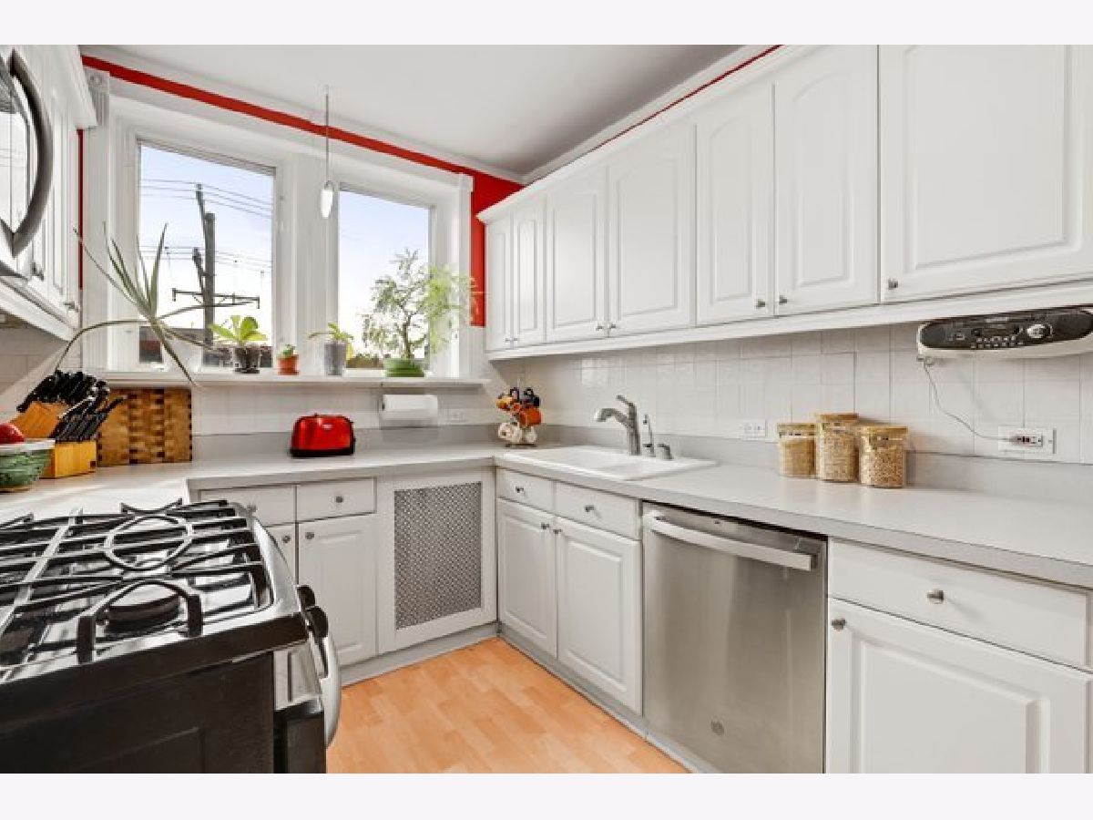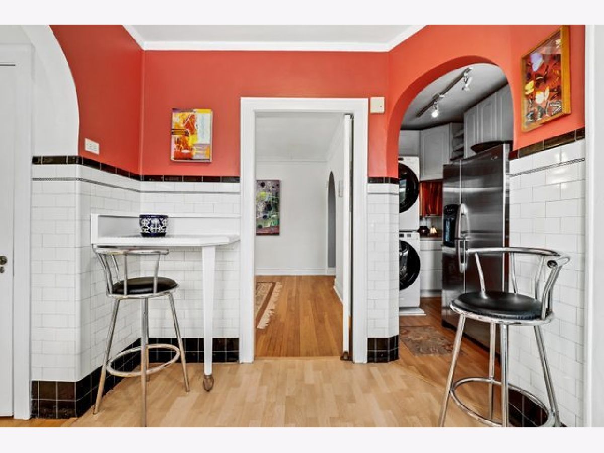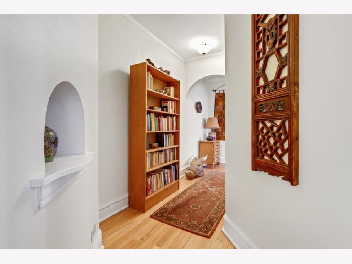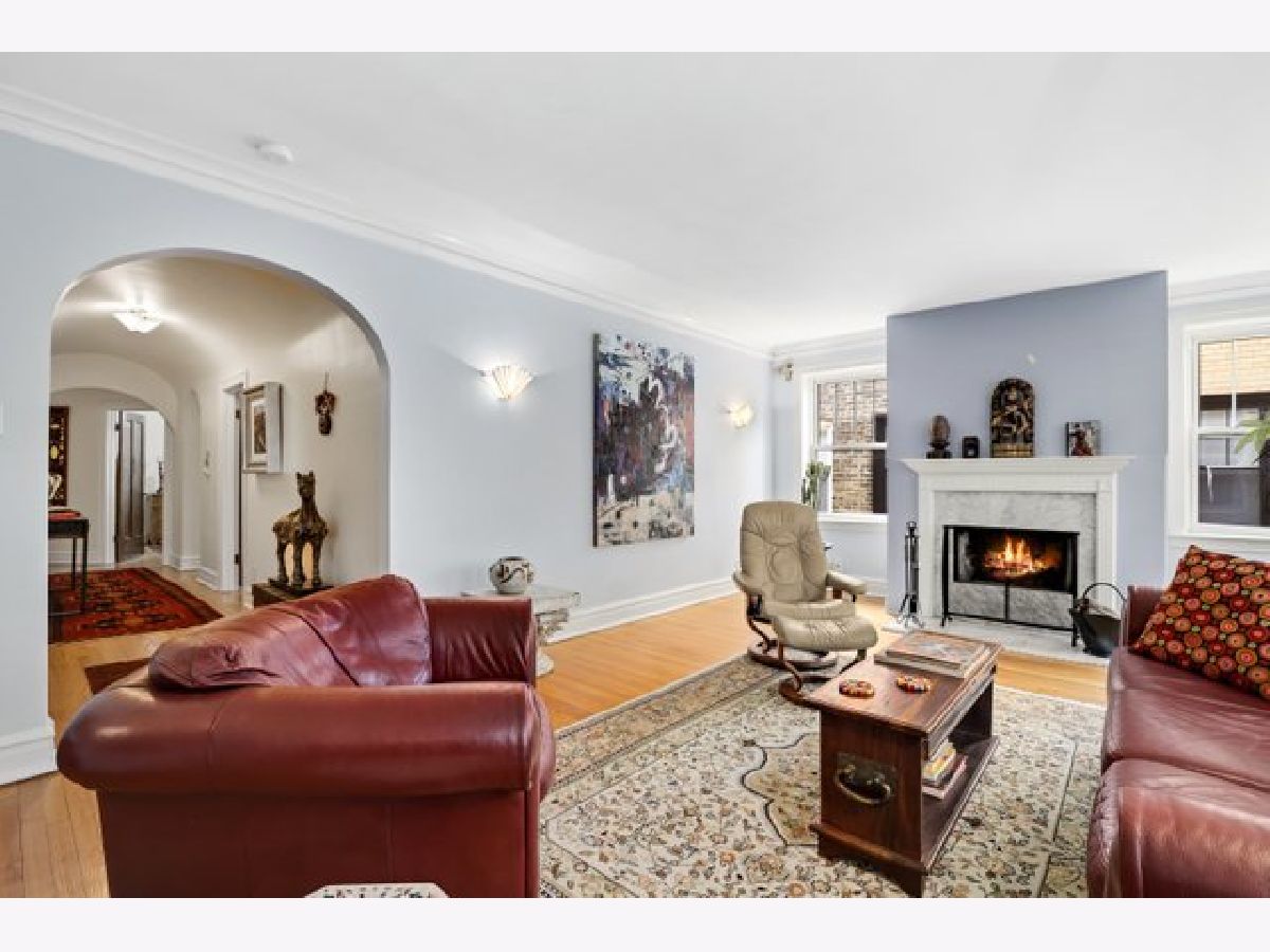 Top-floor privacy in this light-filled, spacious 3-bedroom, 2-bath Casa Elegante condominium. Vintage architectural features include high ceilings, crown moldings, arched hallways, cedar-lined linen closet, and formal dining room with chandelier. Large living room with wood-burning fireplace great for cozy winter nights. Red oak hardwood floors throughout. New dishwasher, washer and dryer, built-in kitchen air conditioner, all still under warranty. Additional 5' x 6' x 9' storage in basement, along with common bike room, project room and garden room. Garage space with space for a car and scooter, includes 60 amps electrical service. Walking distance to Dobson-Brummel Park, trendy eats, and the Howard Street Performing Arts Theatre. Only 1/2 mile to CTA to Chicago, 5 minutes to downtown Evanston and the lake. Quality schools, close-by medical services, Home Depot, auto shops, and multiple grocery stores only minutes away. Everything you want, and everything you need!