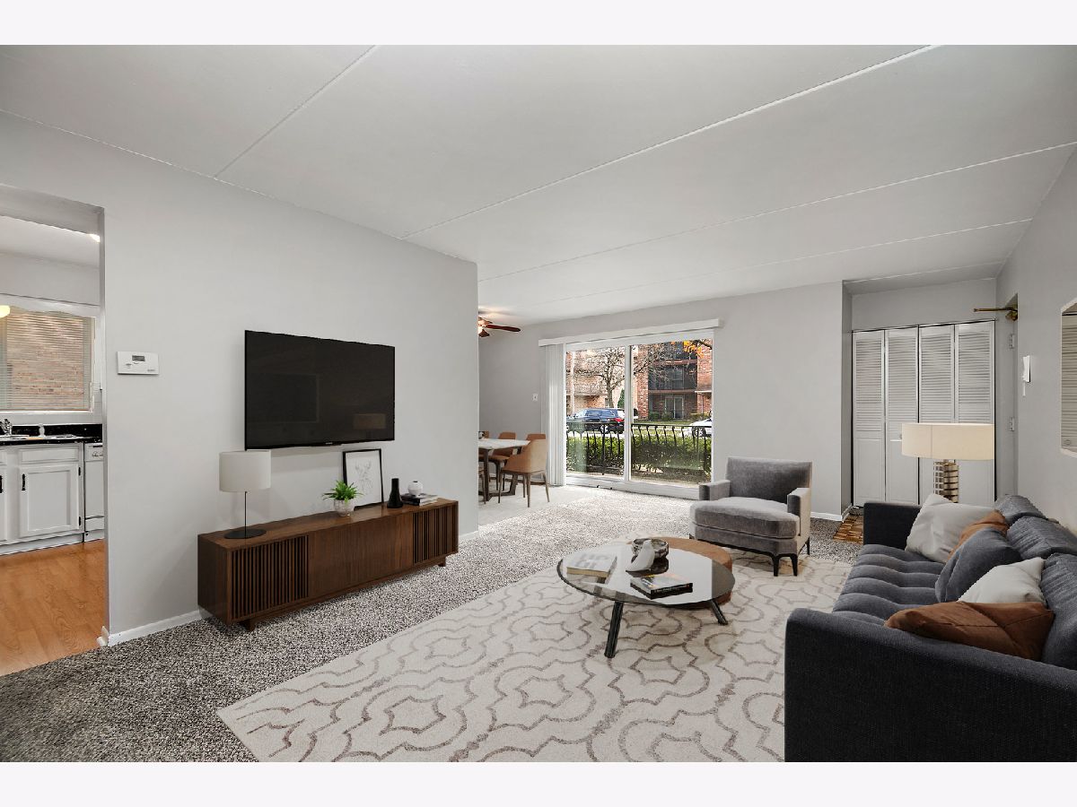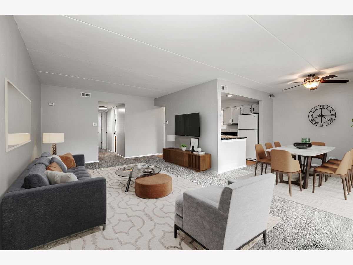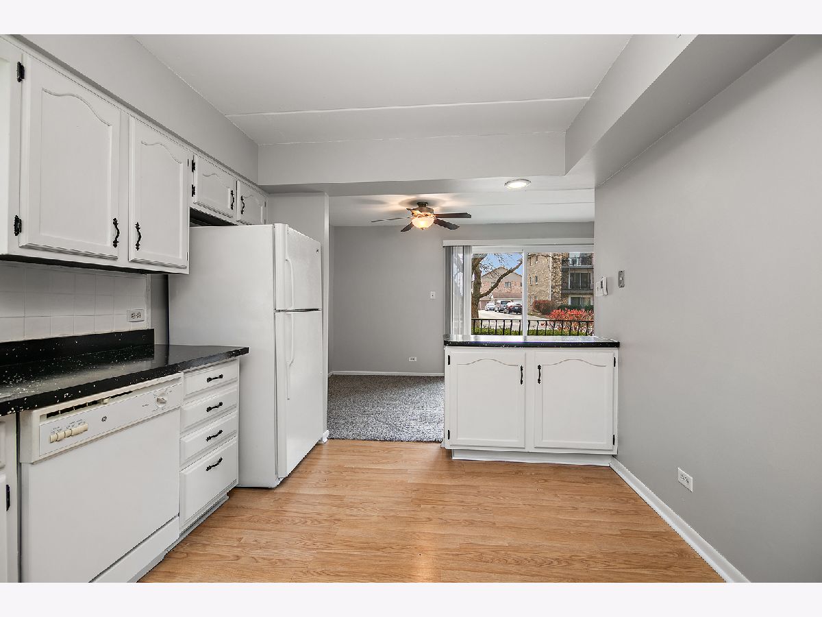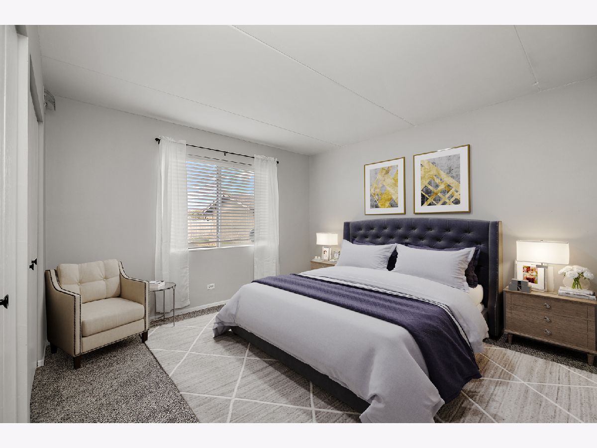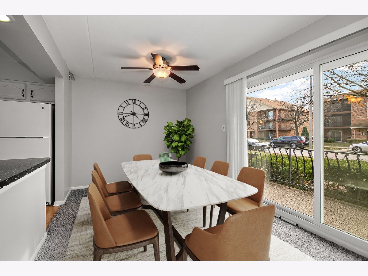 WELCOME HOME SWEET HOME to this TERRIFIC 2-BEDROOM / 2-BATH FIRST FLOOR CONDO in the highly desirable Victor J. Andrew High School District! With approximately 1,100 SF, this condo boasts many great features like FRESH PAINT & NEW CARPET THROUGHOUT ~ NICE ROOM SIZES ~ IN-UNIT LAUNDRY ~ A PRIVATE BALCONY ~ FLEXICORE BUILDING ~ DETACHED 1-CAR GARAGE! The L-SHAPED LIVING & DINING ROOM layout makes entertaining a breeze with plenty of room for everyone! The SPACIOUS KITCHEN features an abundance of white painted cabinets and great counterspace...set-up a cute bistro table for quick meals on the go! Just off the Dining Room is a PRIVATE BALCONY that could easily be screened-in for added enjoyment. Tucked nicely down the hall are 2 BIG BEDROOMS with GREAT CLOSET SPACE, including a PRIMARY SUITE with its own PRIVATE FULL BATH (yes!!), a FULL GUEST BATH, plus convenient IN-UNIT LAUNDRY (the Washer & Dryer stay)! The DEEP, DETACHED 1-CAR GARAGE is just steps from the Building and there is ample parking for guests on the street. *** EXCELLENT PROXIMITY TO ALL TINLEY PARK & NEIGHBORING COMMUNITIES HAVE TO OFFER including the Tinley Park Recreation Center, Metra commuter station, Tinley Park Library, local shopping, restaurants and schools, and expressways. *** UPDATES INCLUDE: Fresh Paint and New Carpet throughout in 2024 ~ a new Garage Door Opener in 2022 ~ a new 40-gallon Water Heater 3 or 4 years ago ~ a new Roof, new Windows, new Furnace, and new Laundry Appliances within the last 10 years or so ~ new Kitchen Appliances about 15 years ago and all in great condition. --- DON'T DELAY ~ TOUR THIS FANTASTIC CONDO TODAY!! (Some photos have been Virtually Staged to help you envision furnished spaces.)
