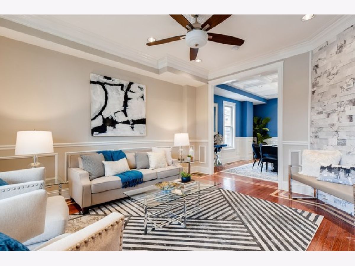 WOW!!! The magic word you will say as you walk into this fantastic, two story, 4 bedroom, 3 bathroom home. This home features great detail and craftsmanship throughout! The living room features a custom designed gray wall where you can mount your television on and hardwood floors. The dining room is spacious enough to fit a very large dining room set and is painted with in a stylish blue color! The kitchen has granite counter-tops with plenty of counter space to bake or cook on, stainless steel appliance 4 piece set. A full bath on every level with massage body sprayer showers and plenty of space! Spacious master bedroom and two other bedrooms is on the second level. Washer and dryer on the second level and another laundry room in the basement! Basement includes large family room to entertain, 4th bedroom and full bathroom with an extra large stand in shower with the body sprayer shower! Yard has a large deck and 2 car garage! Home includes a security camera system as well. This home is a short walk from the Metra, CTA Bus, restaurants, parks and schools. 15-20 mins from downtown and Lake Michigan. This home is absolutely a beauty and A MUST SEE TODAY!!!!