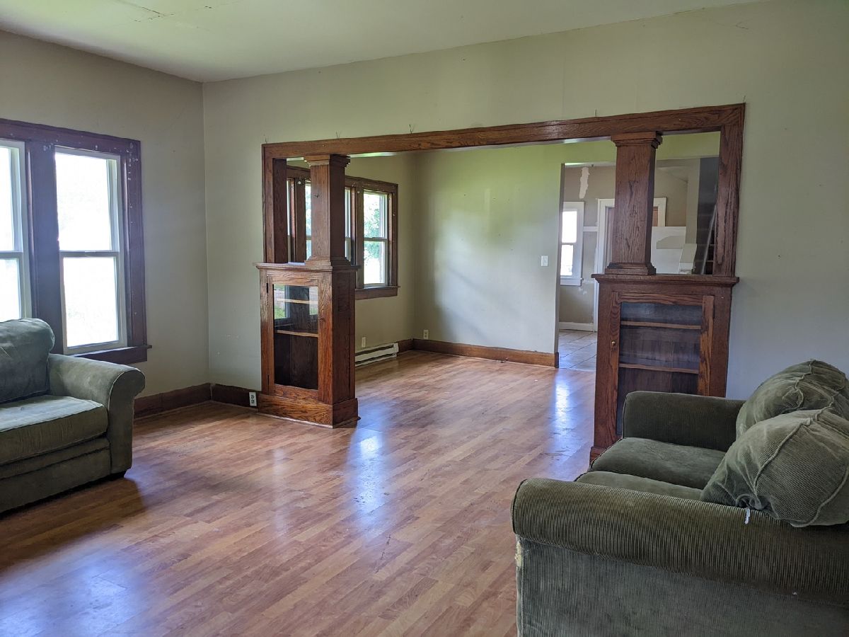 Look at the woodwork and the room sizes. Covered front porch brings you in to living room that is open to the dining room. Spacious kitchen with appliances. Main floor also offers two bedrooms, bonus room with washer/dryer hookup and a full bath. Upstairs has 3rd bedroom, half bath and loft area. Partially fenced back yard with a large shed. New house roof 2022. This entire home has potential throughout and rooms for everyone!