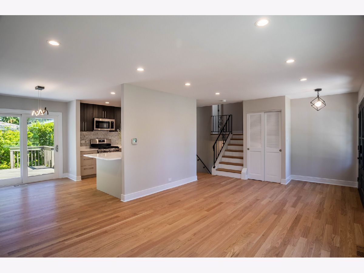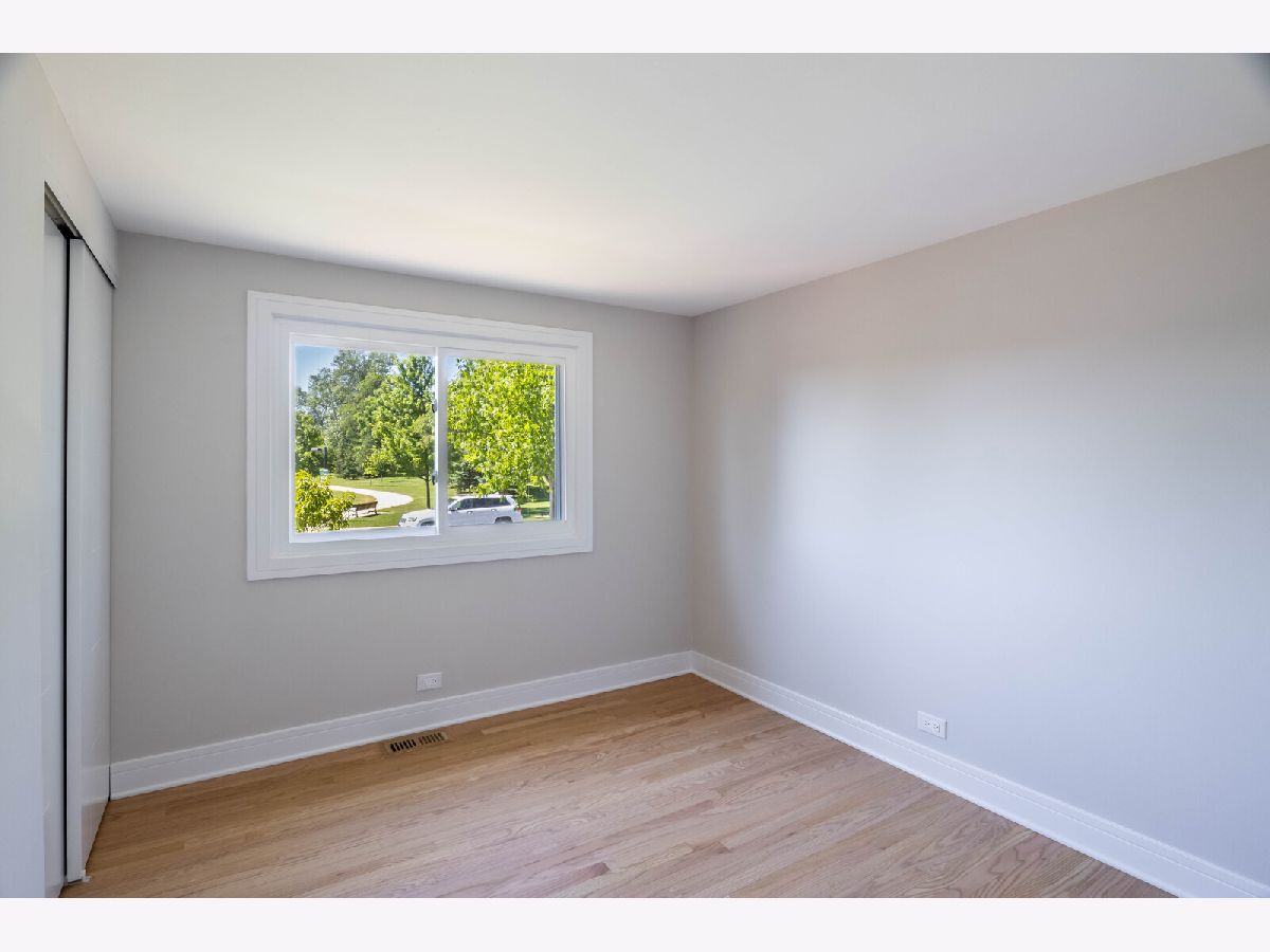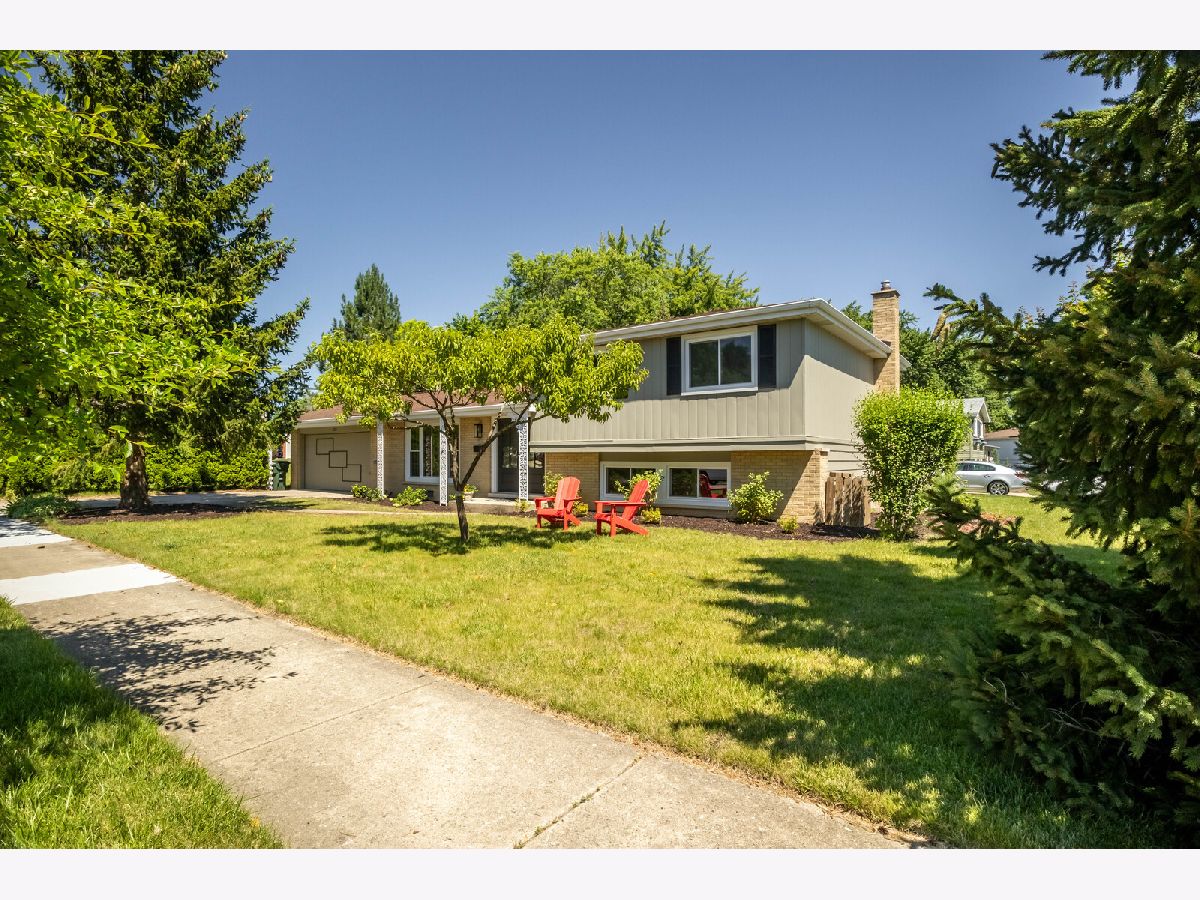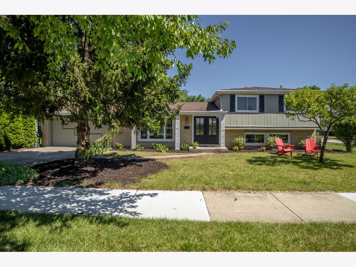 NEW - NEW - NEW This wonderful Greenbrier home is all dressed up and ready to go. Located directly across the street from Frontier Park, the location is a 10+. The home has been transformed. The list is long so here we go.... Custom double front doors, new hardwood floors installed in the LR/DR/Kit/Hall/Stairs. New plank flooring in lower level and bedroom hardwood has been refinished. All interior bedroom and bath doors are new featuring unique detailing. Kitchen is light and bright with a distinctive flair. Beautiful quarts counters and custom backsplash complete the package. Both bathrooms have been totally rejuvenated with new vanities, flooring, fixtures and tiling. New large front window, sliding patio door, bath windows and utility windows new in 2024. Balance of the windows done in past 4 years. Large deck leads to very private yard with unique plantings. Greenbrier neighborhood is sought after due to the award-winning schools (Dist 25 elementary and Dist 214 High School). With Frontier Park directly across the street you will enjoy greenspace galore. Arlington Heights Park District swimming and programing center, ballfields, gardens and more are at you steps out your front door. This home promises to not disappoint.