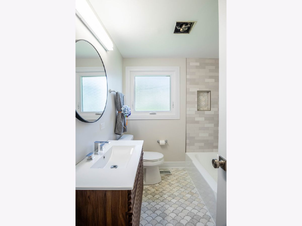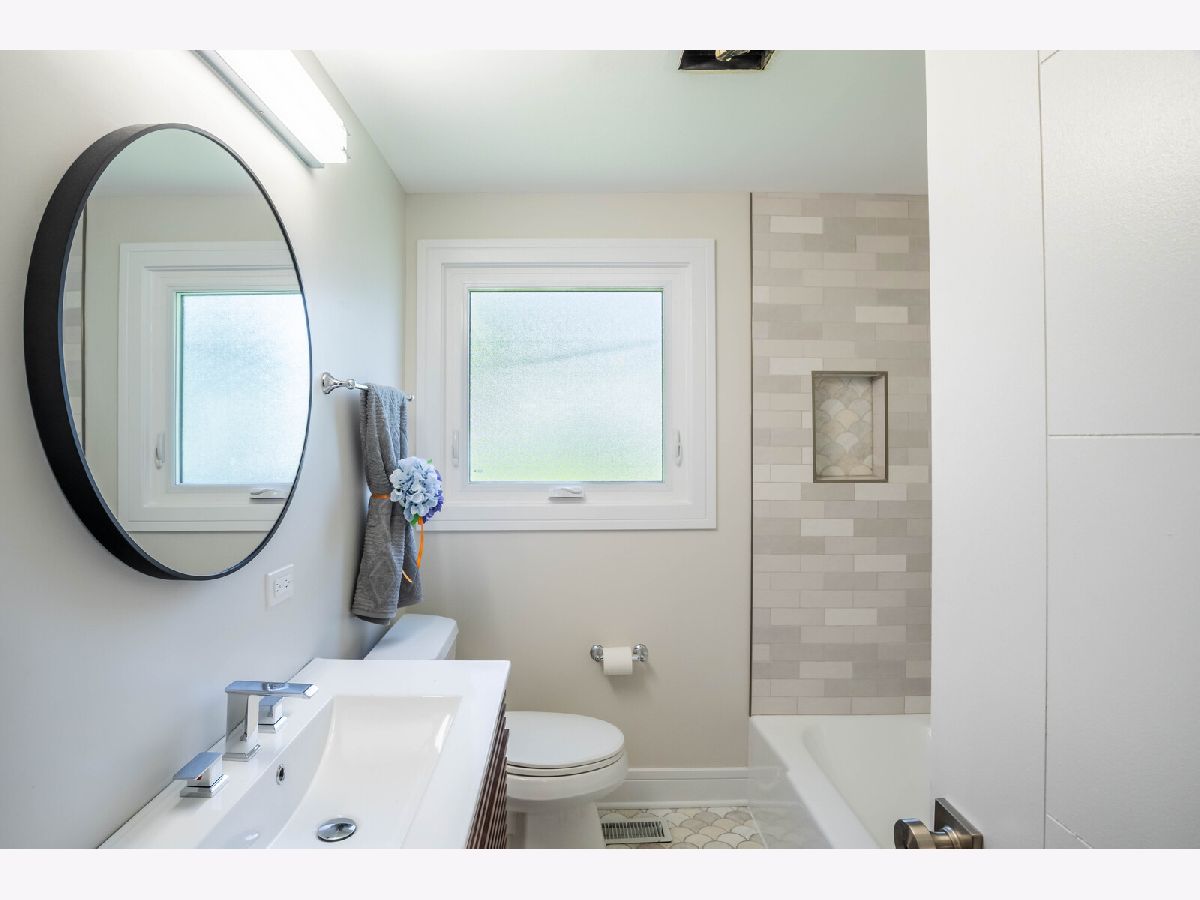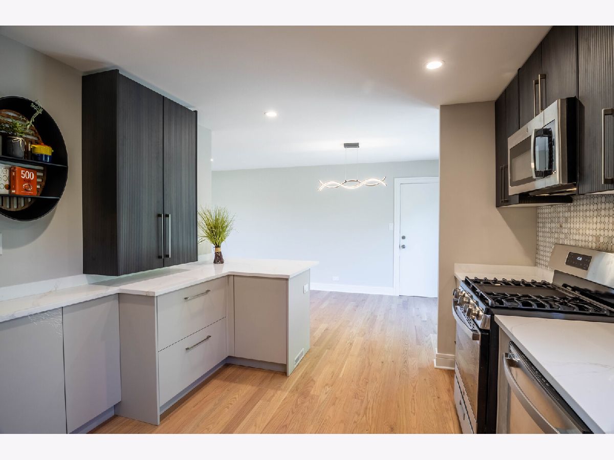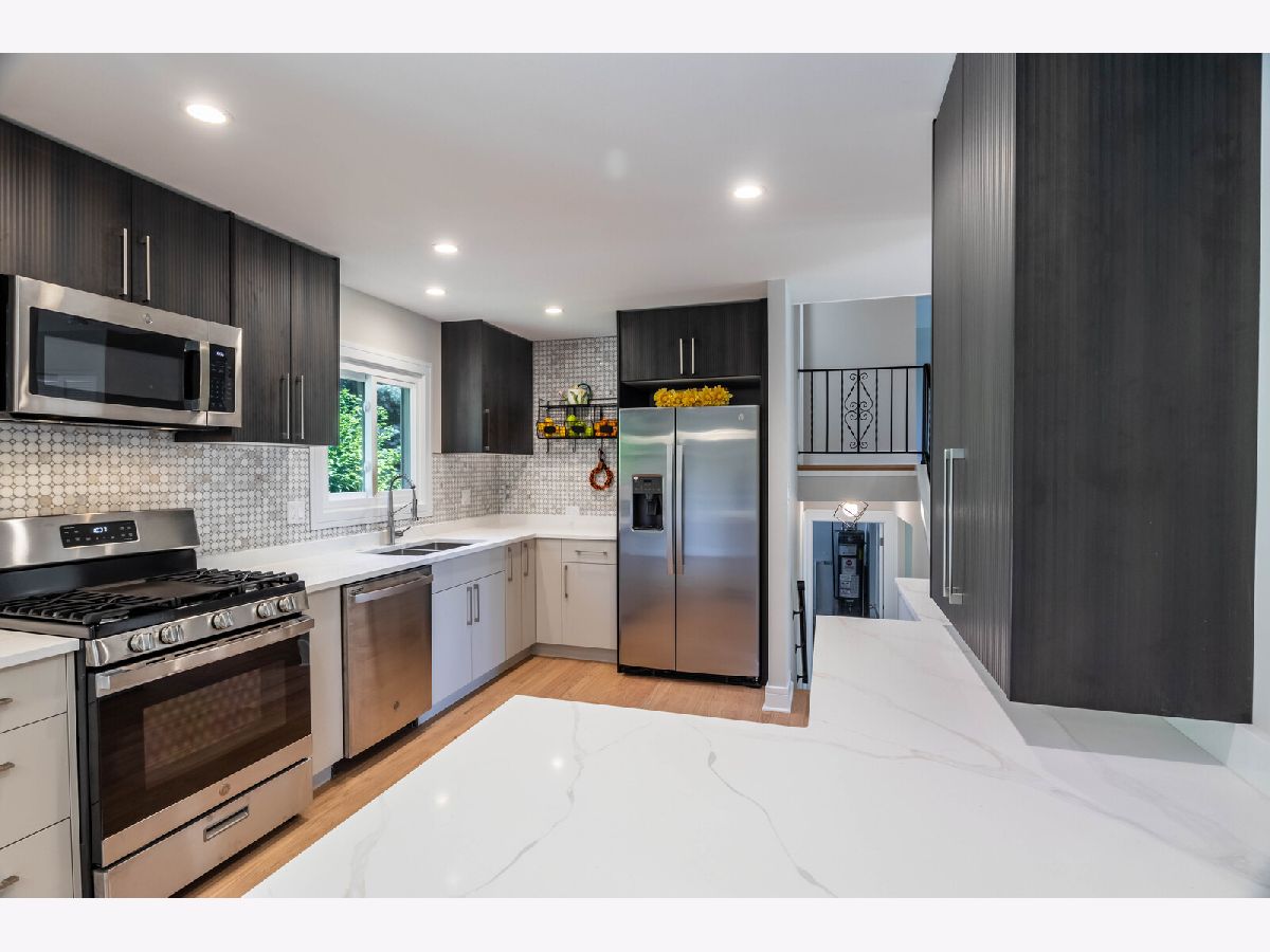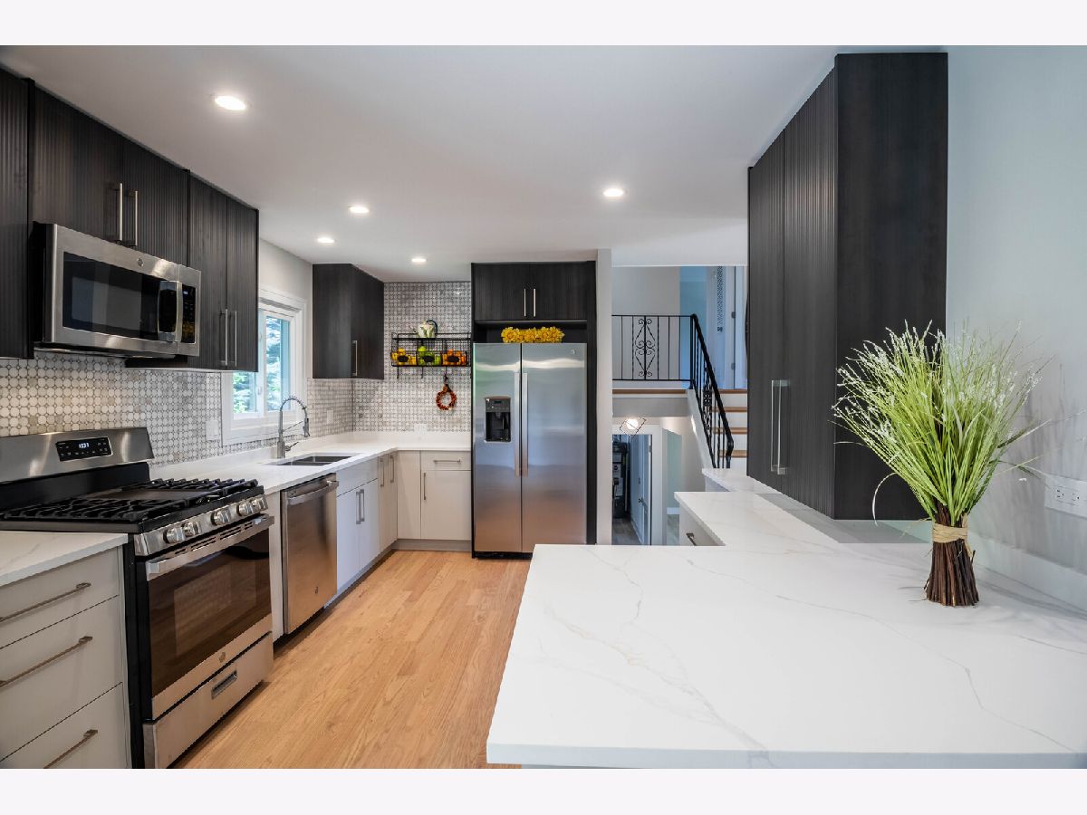 NEW - NEW - NEW This wonderful Greenbrier home is all dressed up and ready to go. Located directly across the street from Frontier Park, the location is a 10+. The home has been transformed. The list is long so here we go.... Custom double front doors, new hardwood floors installed in the LR/DR/Kit/Hall/Stairs. New plank flooring in lower level and bedroom hardwood has been refinished. All interior bedroom and bath doors are new featuring unique detailing. Kitchen is light and bright with a distinctive flair. Beautiful quarts counters and custom backsplash complete the package. Both bathrooms have been totally rejuvenated with new vanities, flooring, fixtures and tiling. New large front window, sliding patio door, bath windows and utility windows new in 2024. Balance of the windows done in past 4 years. Large deck leads to very private yard with unique plantings. Greenbrier neighborhood is sought after due to the award-winning schools (Dist 25 elementary and Dist 214 High School). With Frontier Park directly across the street you will enjoy greenspace galore. Arlington Heights Park District swimming and programing center, ballfields, gardens and more are at you steps out your front door. This home promises to not disappoint.