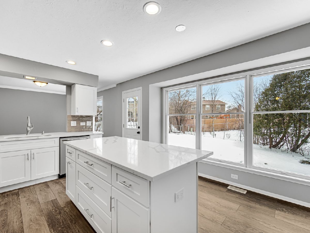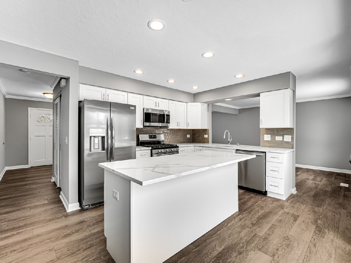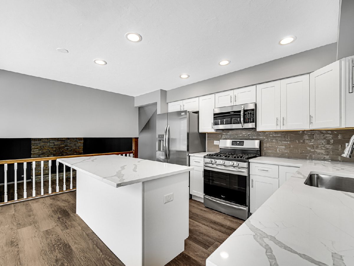So much Space- 5 levels of finished area-over 3,000 sq ft, in a perfect quiet cul de sac location! Just updated with new wood laminate flooring in all living areas and new carpeting in all bedrooms. New kitchen with white shaker cabinets,Quartz tops,island with breakfast bar,subway tile backsplash, stainless appliances and recess lights. Huge family room with stone fireplace. All three baths updated with new vanities,granite,flooring and lighting. Master bath has separate shower and whirlpool tub. Large laundry with new washer and dryer and plenty of storage. Freshly painted inside and out. Perfect location by shopping and restaurants. Award winning schools within walking distance. 15 Acre Lake Charles- exclusive to Oakwood residents-offers boating,fishing,walking trails and beach area.Three parks including 36 acre Ty Warner Park with ballfields playgrounds & splash pad. Come see why Oakwood is a great community to call home. Nothing to do but move in! Hurry this one is ready to go and won't last!!!